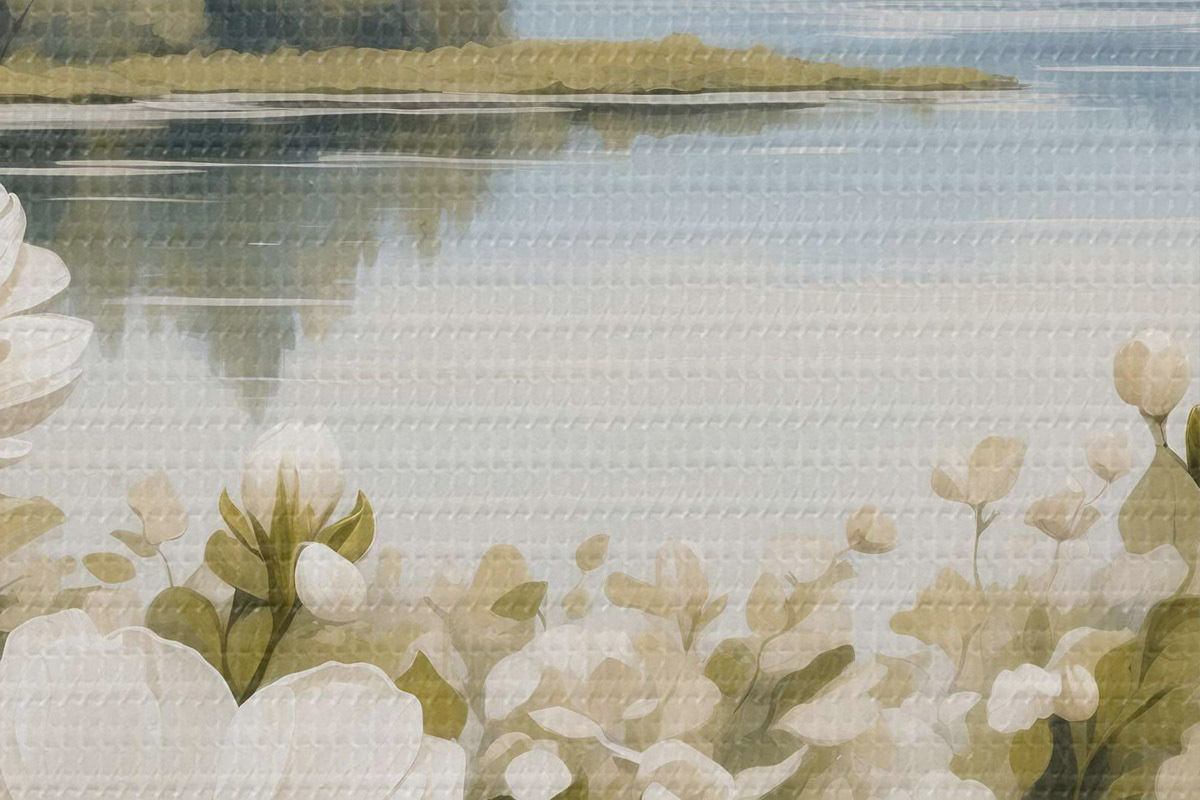 Nuotrauka Baltos gėlės upės fone Nr r40869