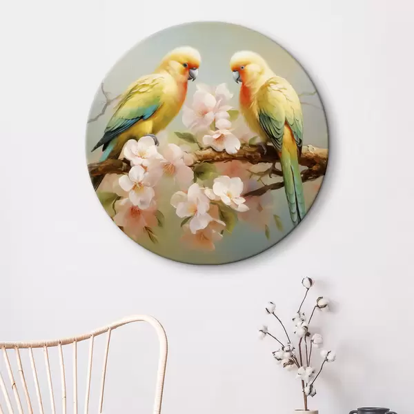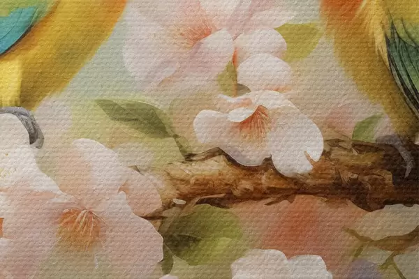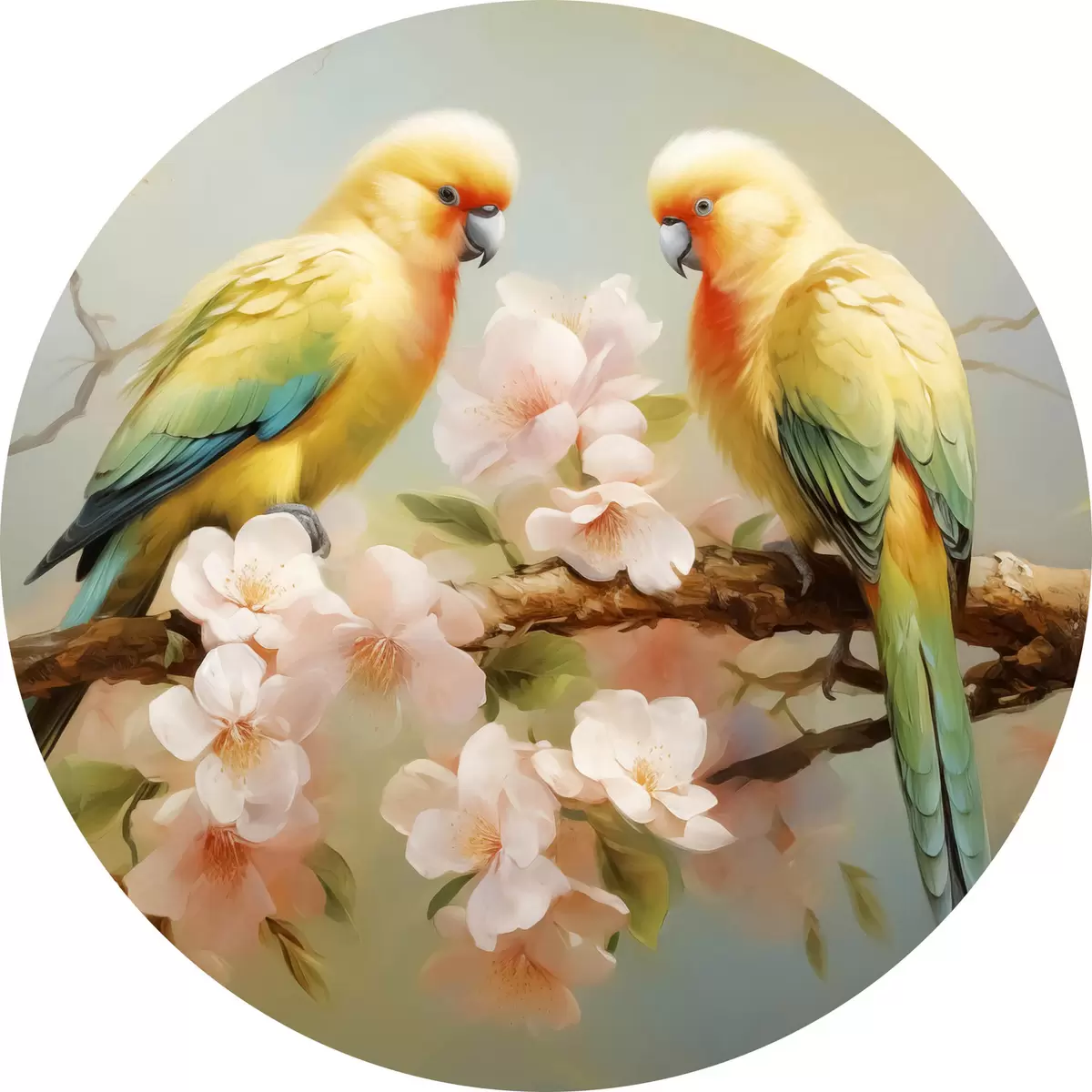 Nuotrauka Ant žydinčios šakos sėdinčios papūgos akvarelė Nr r40892