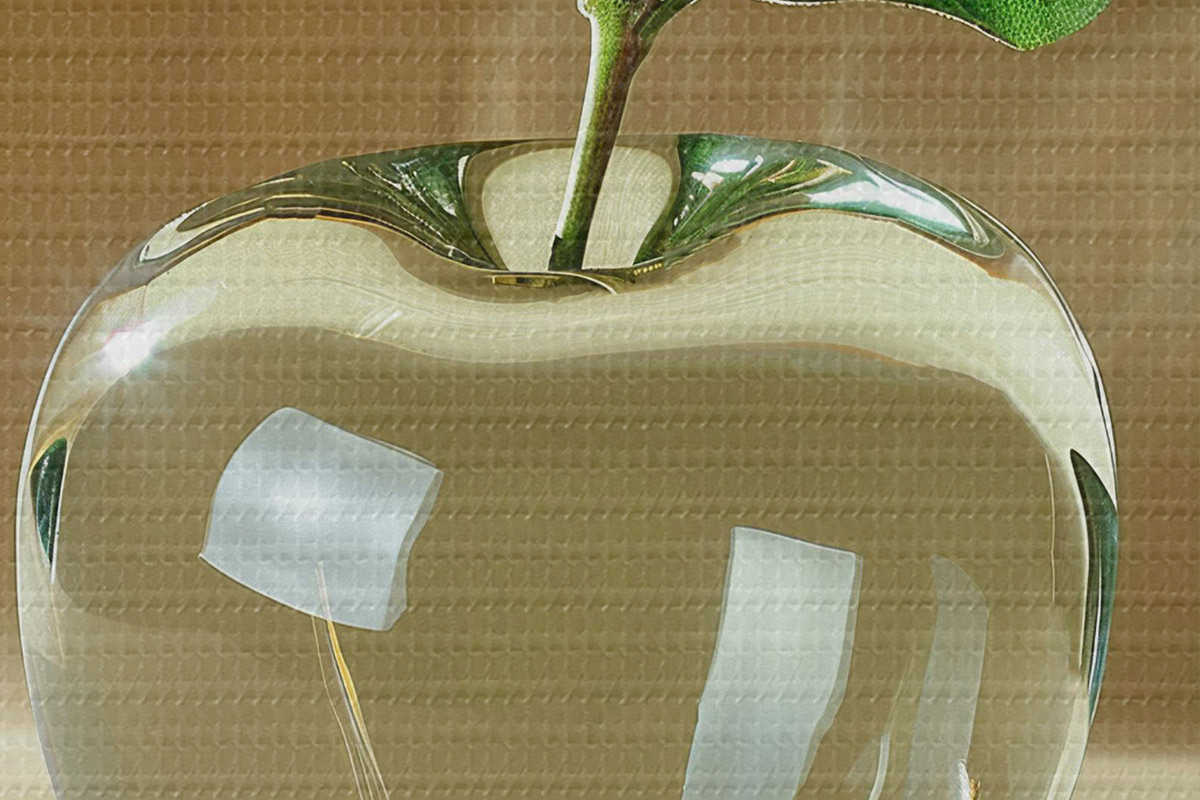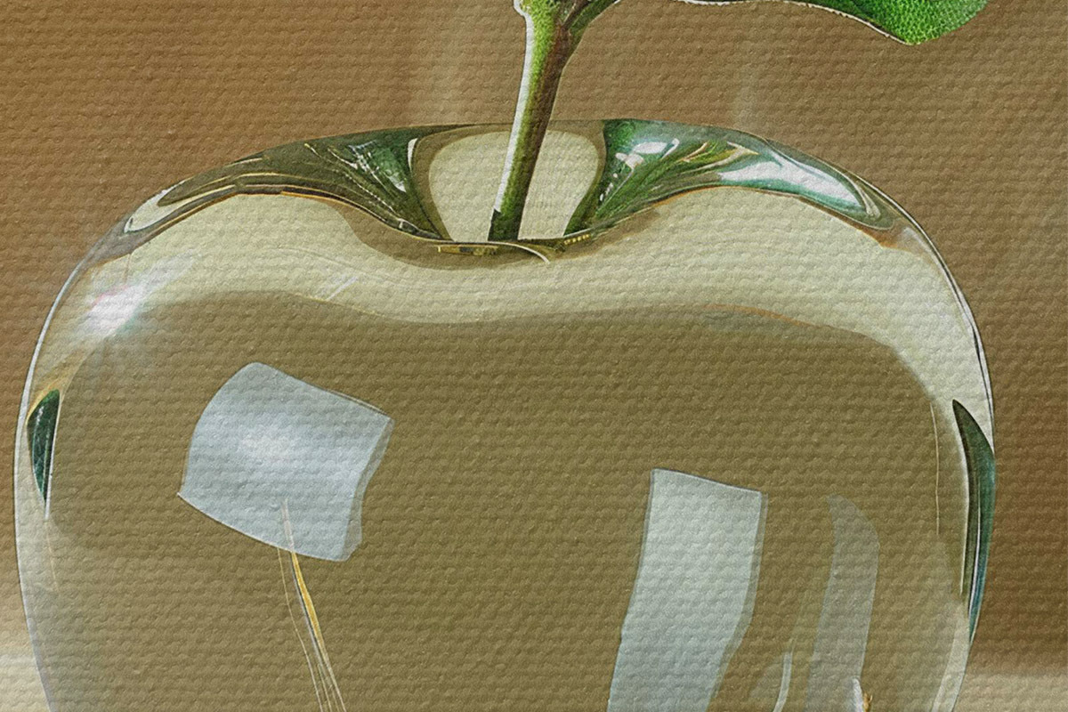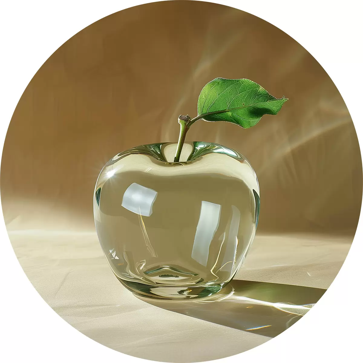 Nuotrauka Skaidrus stiklinis obuolys šviesiame fone Nr r40913