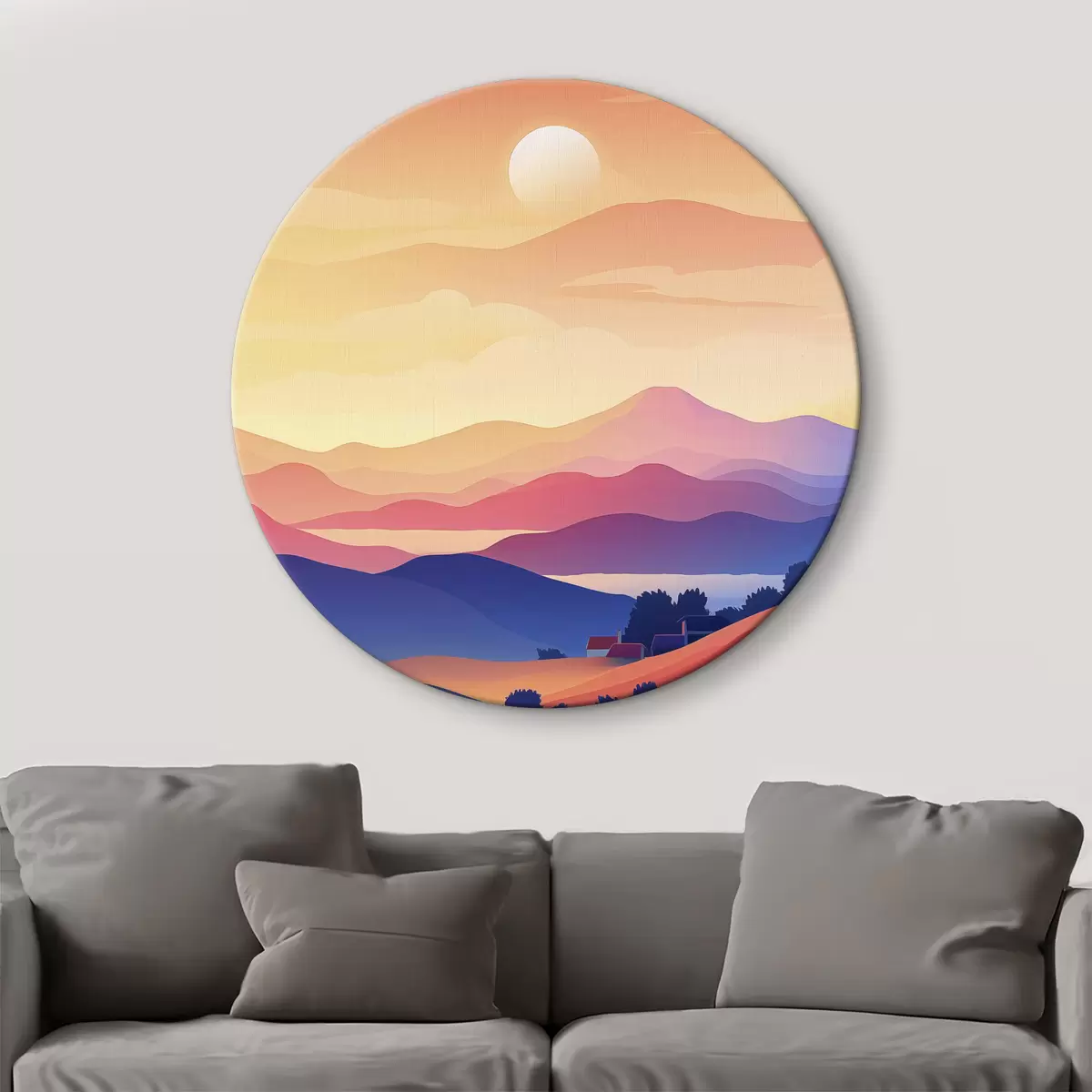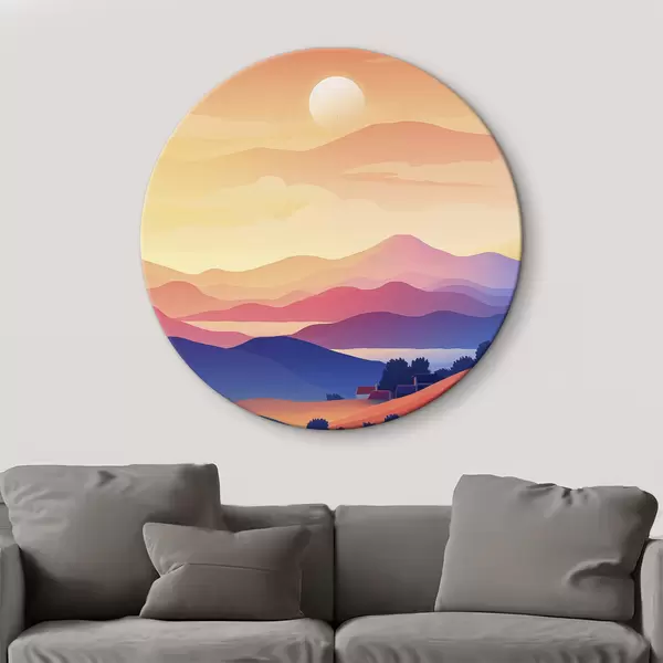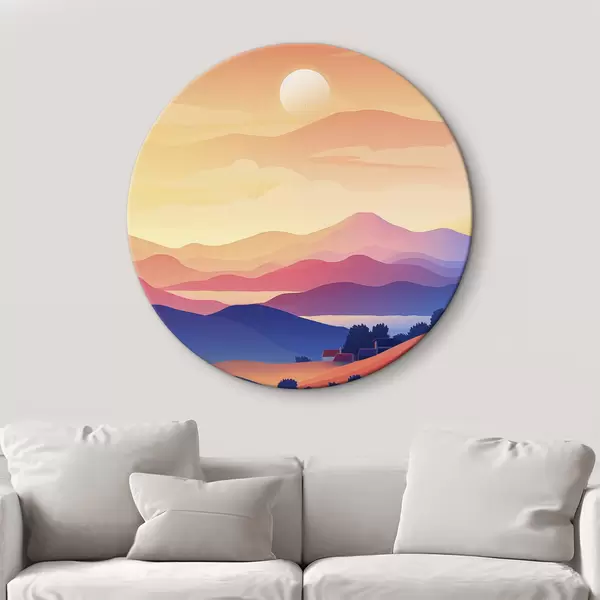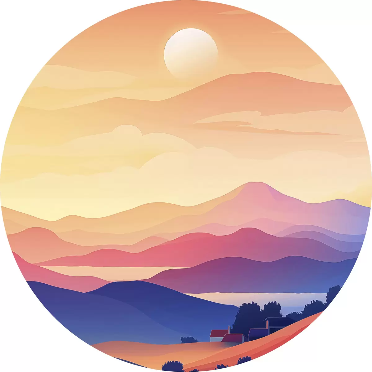 Nuotrauka Abstrakcija peizažai, kalnai, saulėlydis, namai Nr r40948
