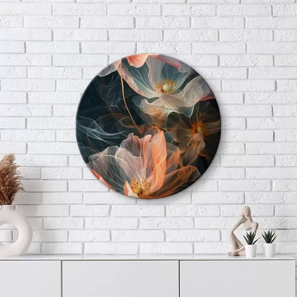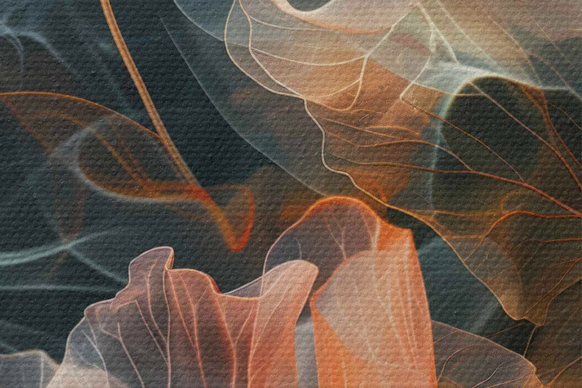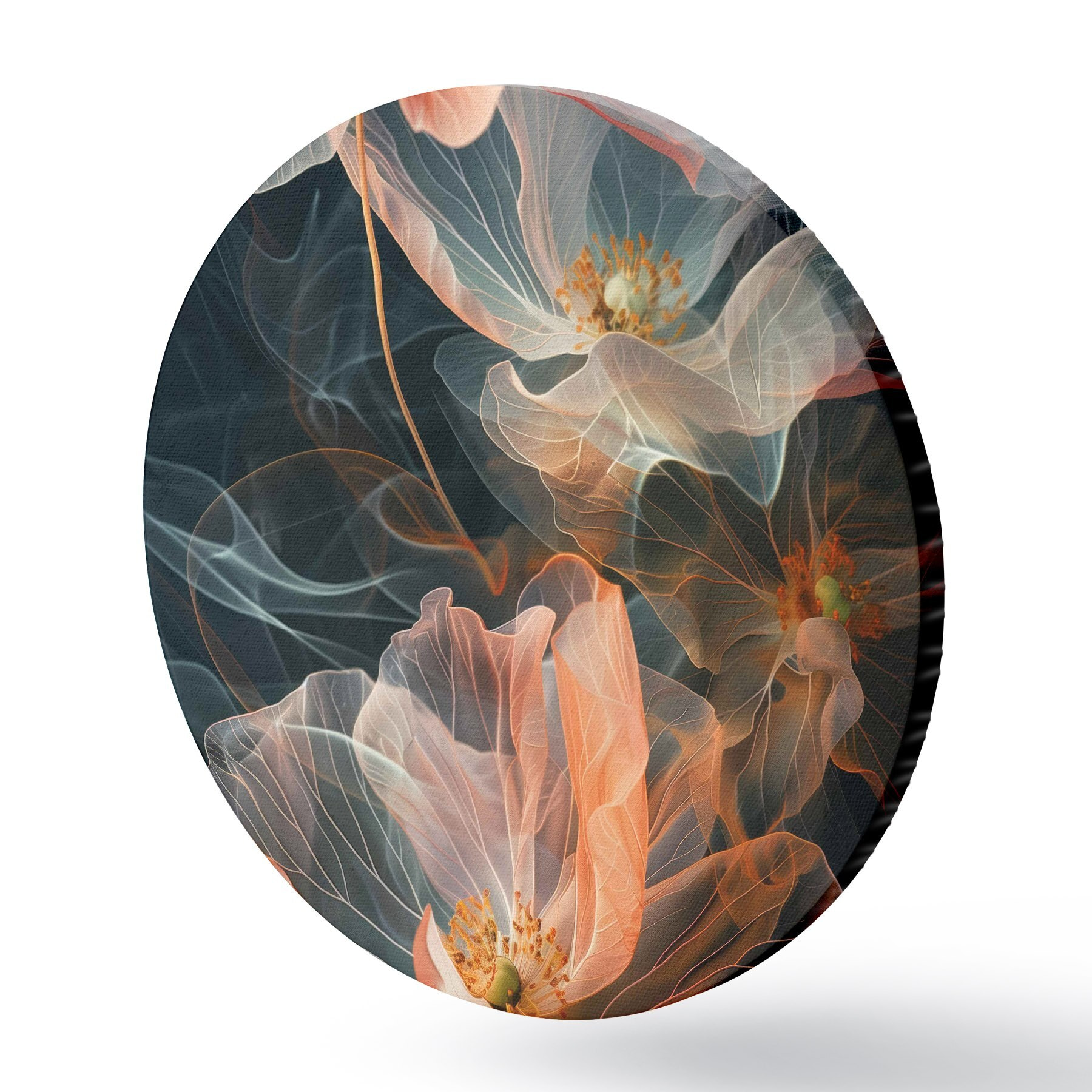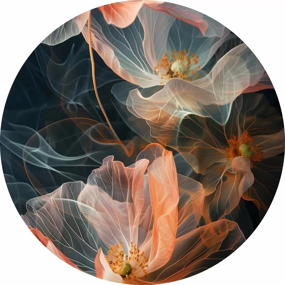 Nuotrauka Ryškios, permatomos gėlės tamsiame fone, apgaubtos dūmų Nr r40968