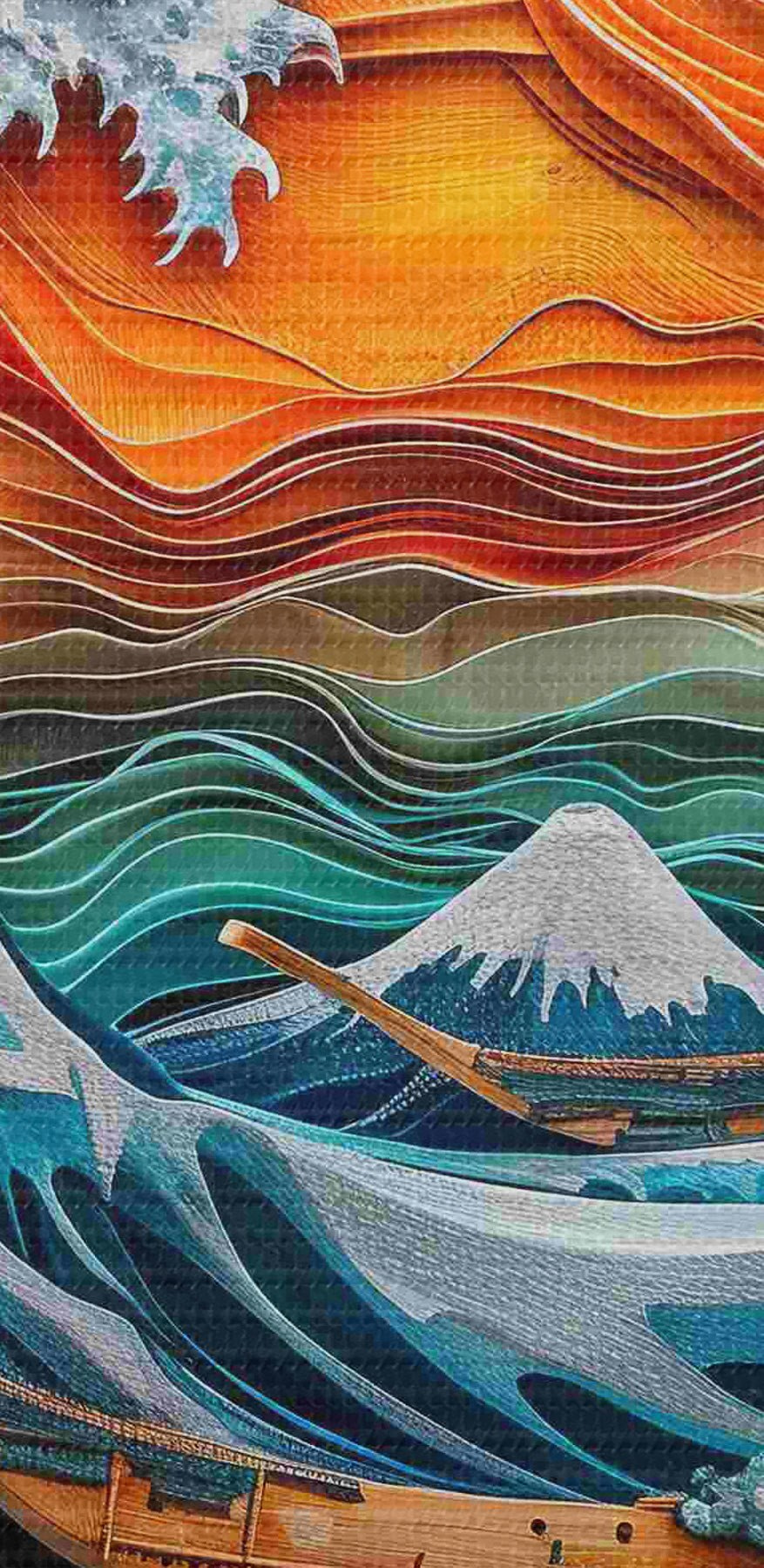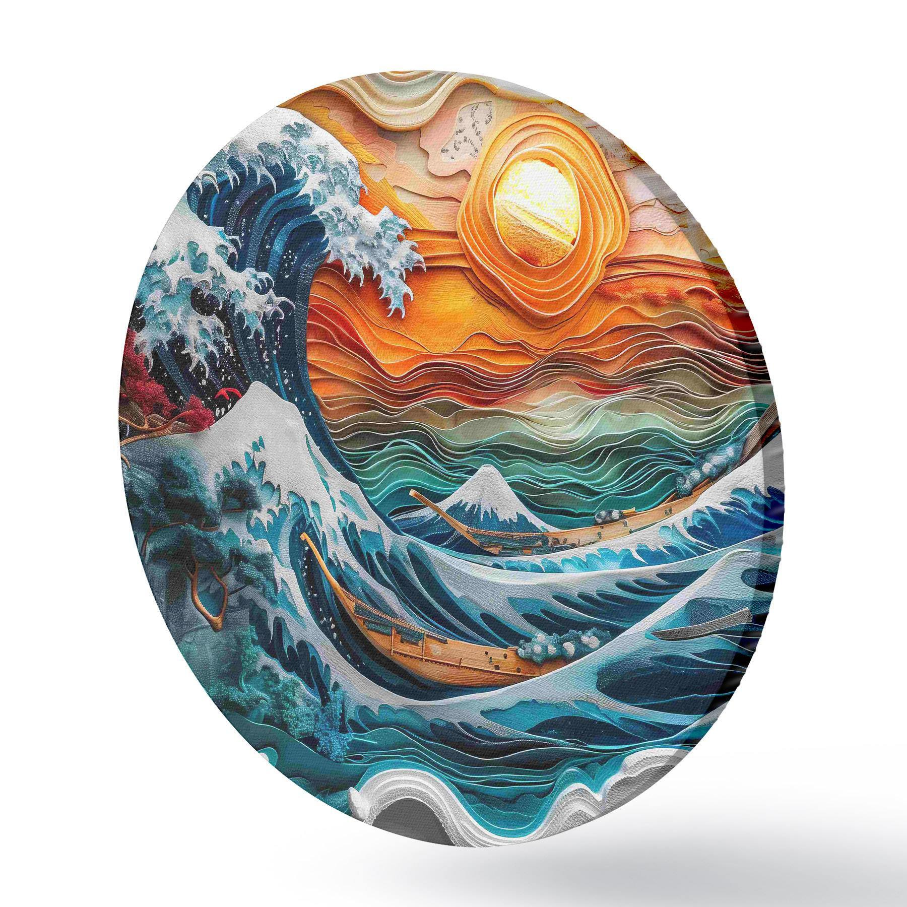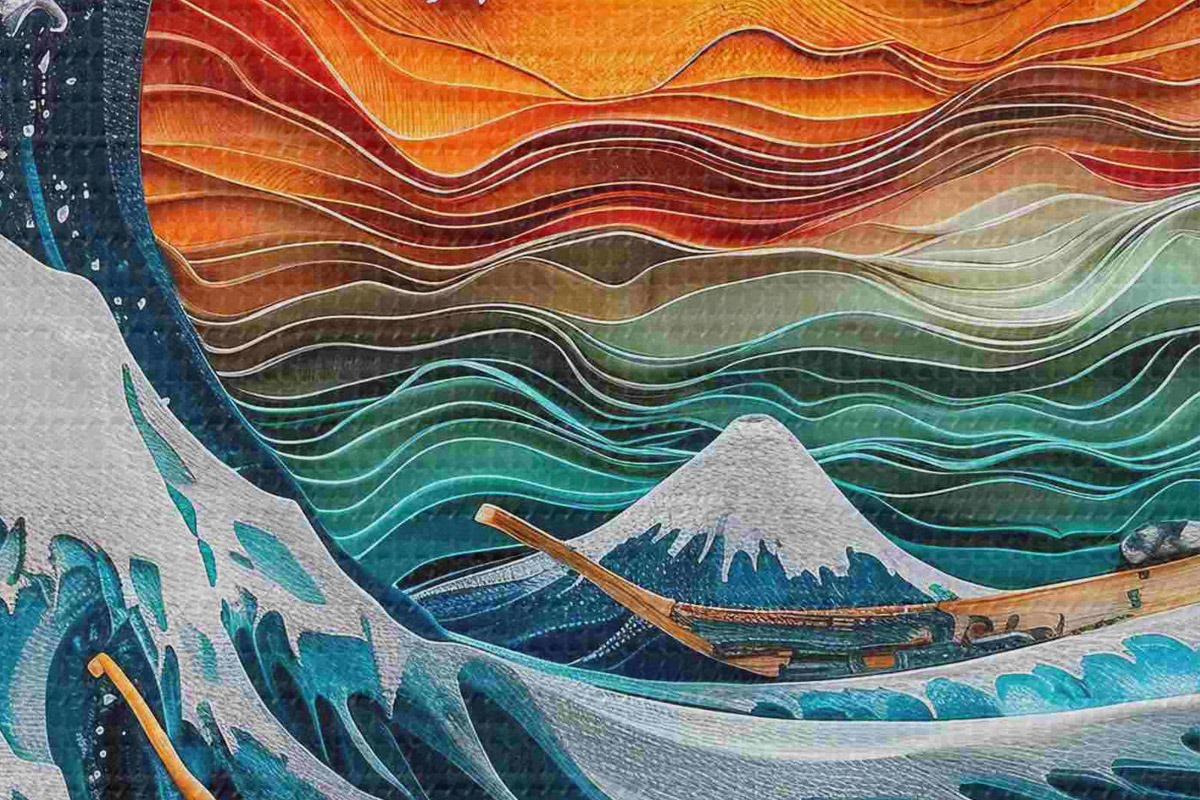 Nuotrauka Bareljefo imitacija: šėlstantis vandenynas su valtimis ir saule Nr r40976