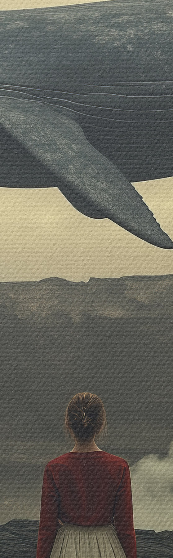 Nuotrauka Mergina ant lavos su dideliu skraidančiu banginiu danguje Nr r40986