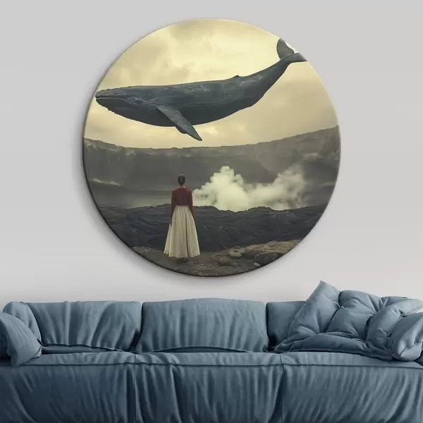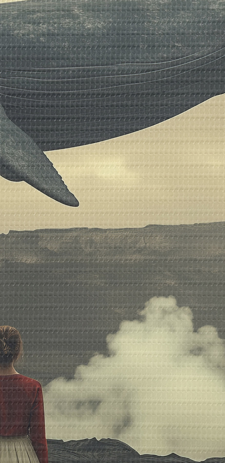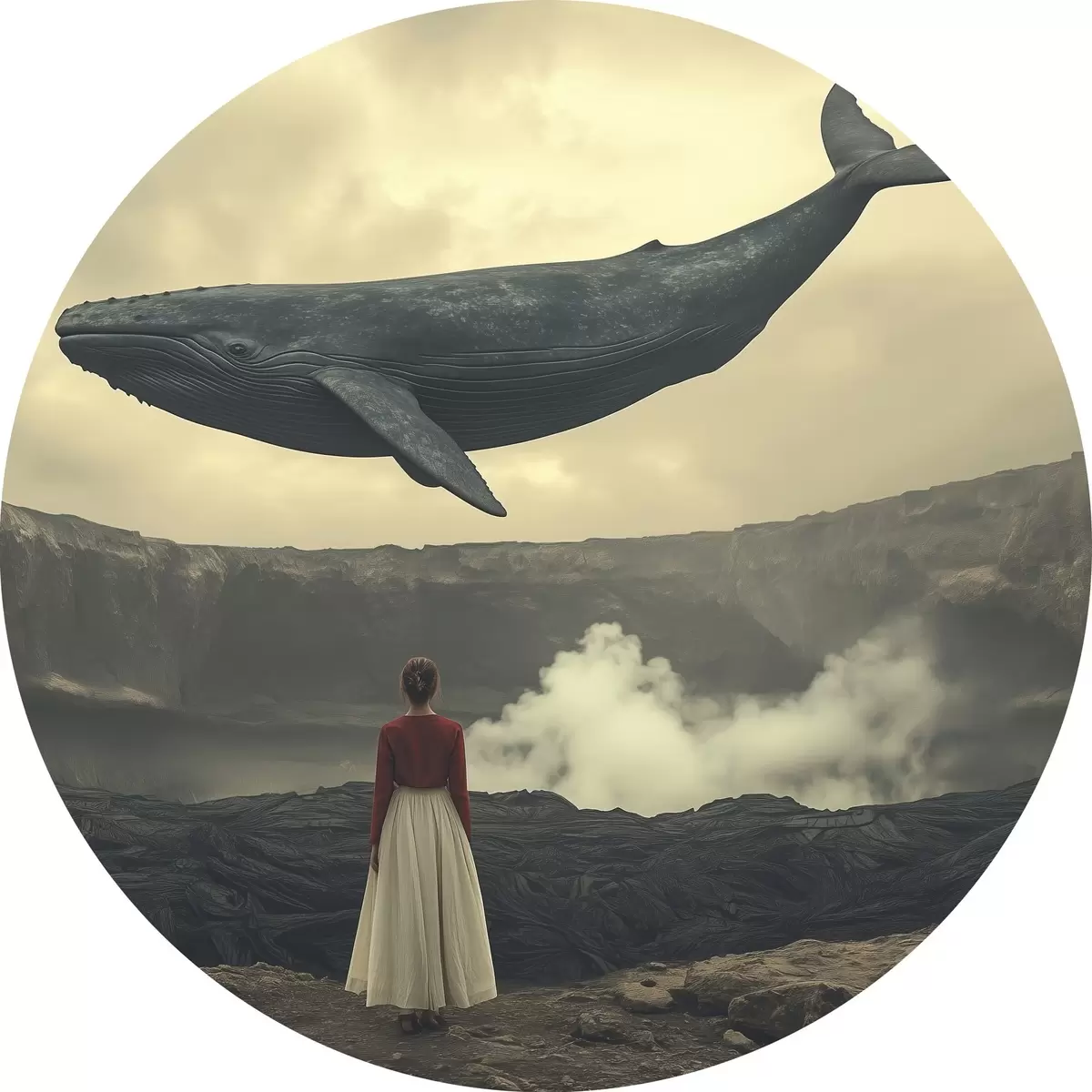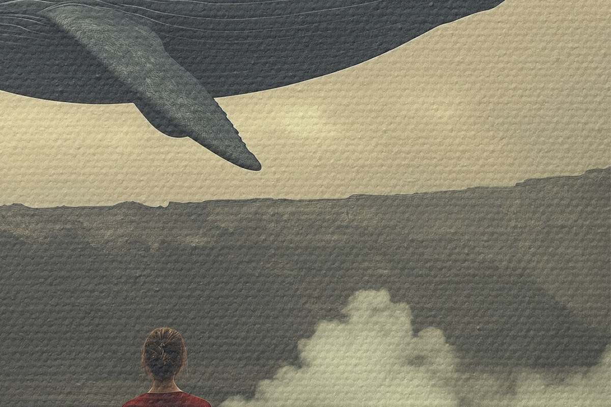Nuotrauka Mergina ant lavos su dideliu skraidančiu banginiu danguje Nr r40986