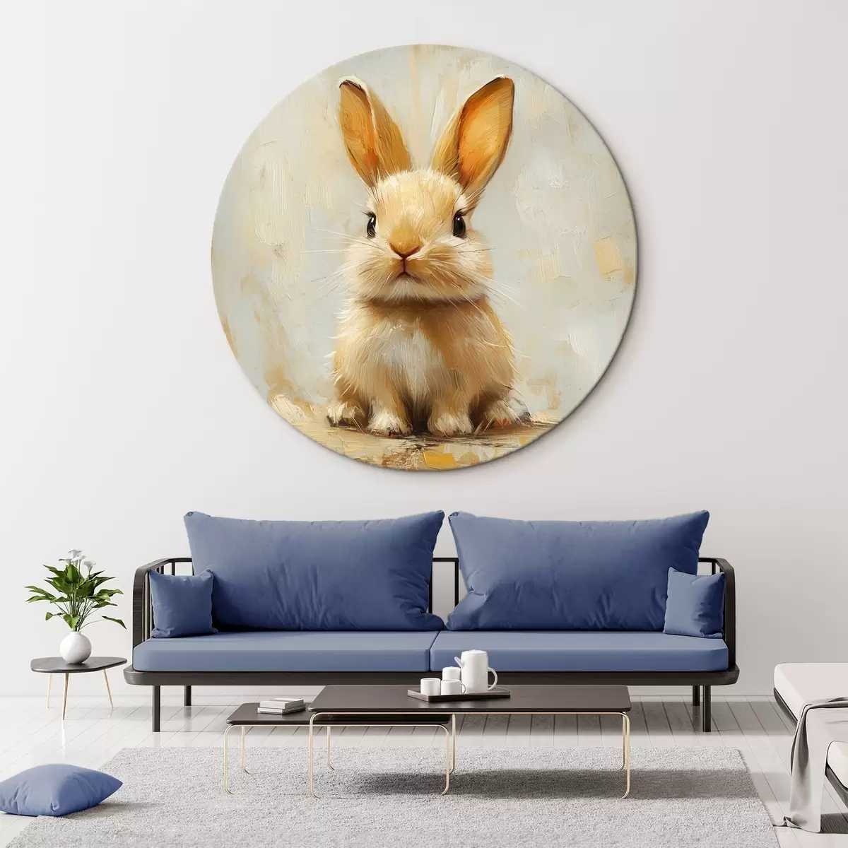 Nuotrauka Smėlio spalvos zuikis šviesiame fone su drąsiais teptuko potėpiais Nr r41000