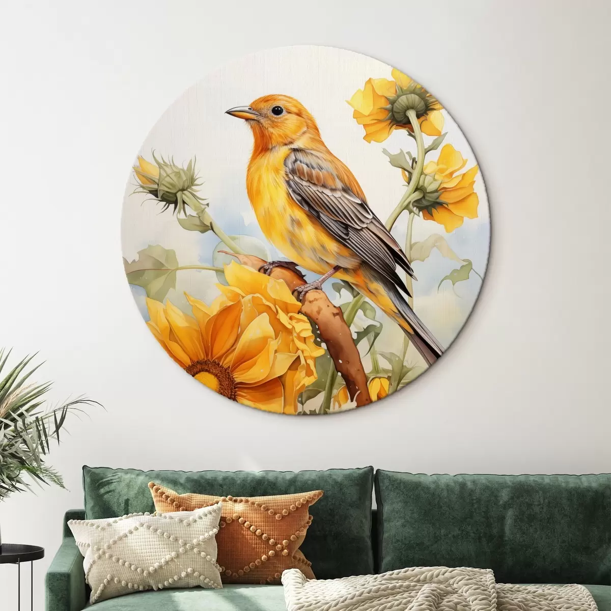 Nuotrauka Geltonas paukštis, sėdintis ant saulėgrąžos akvarelė Nr r41015