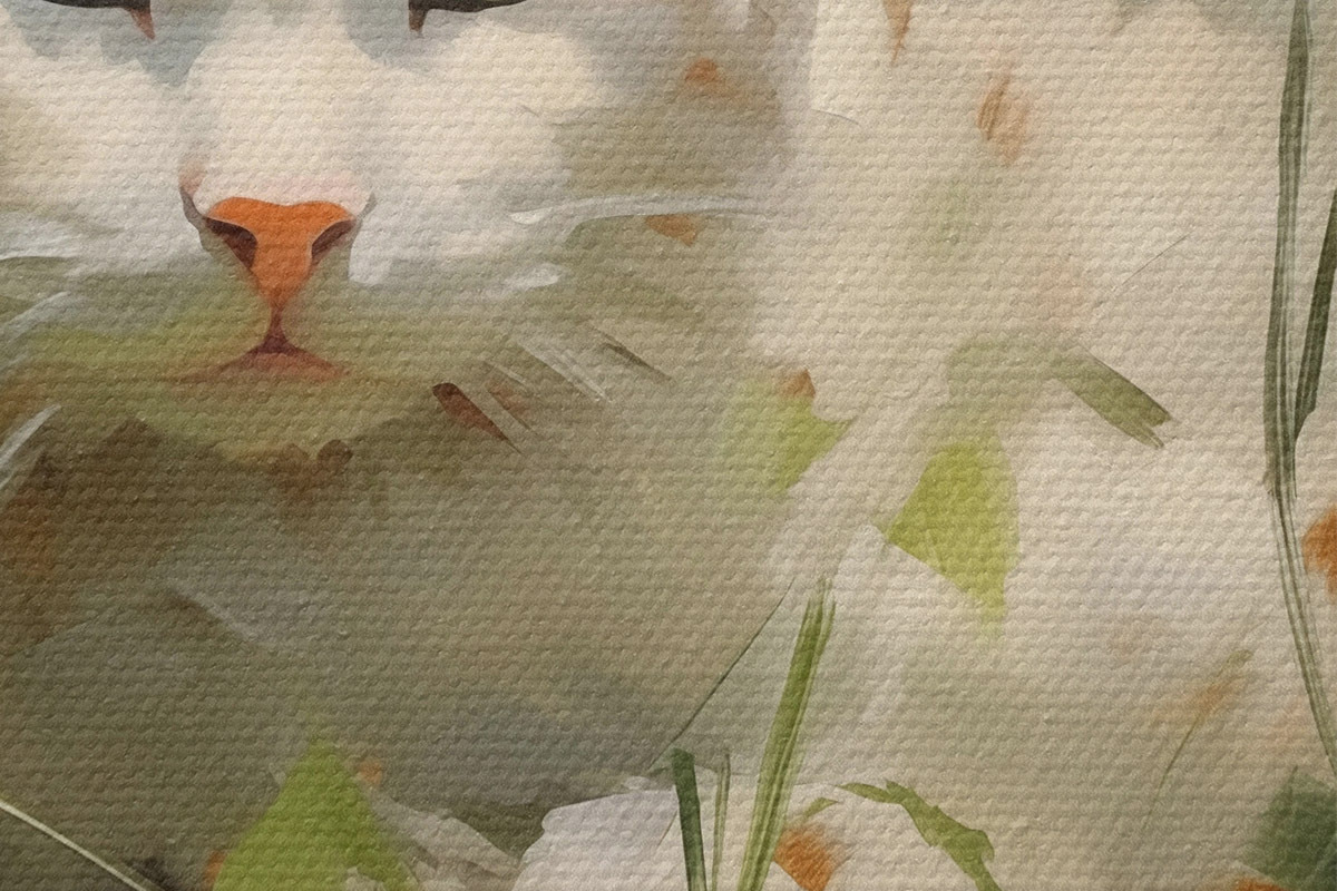 Nuotrauka Baltas katinas, gulintis žolėje, teptuko potėpių imitacija Nr r41017