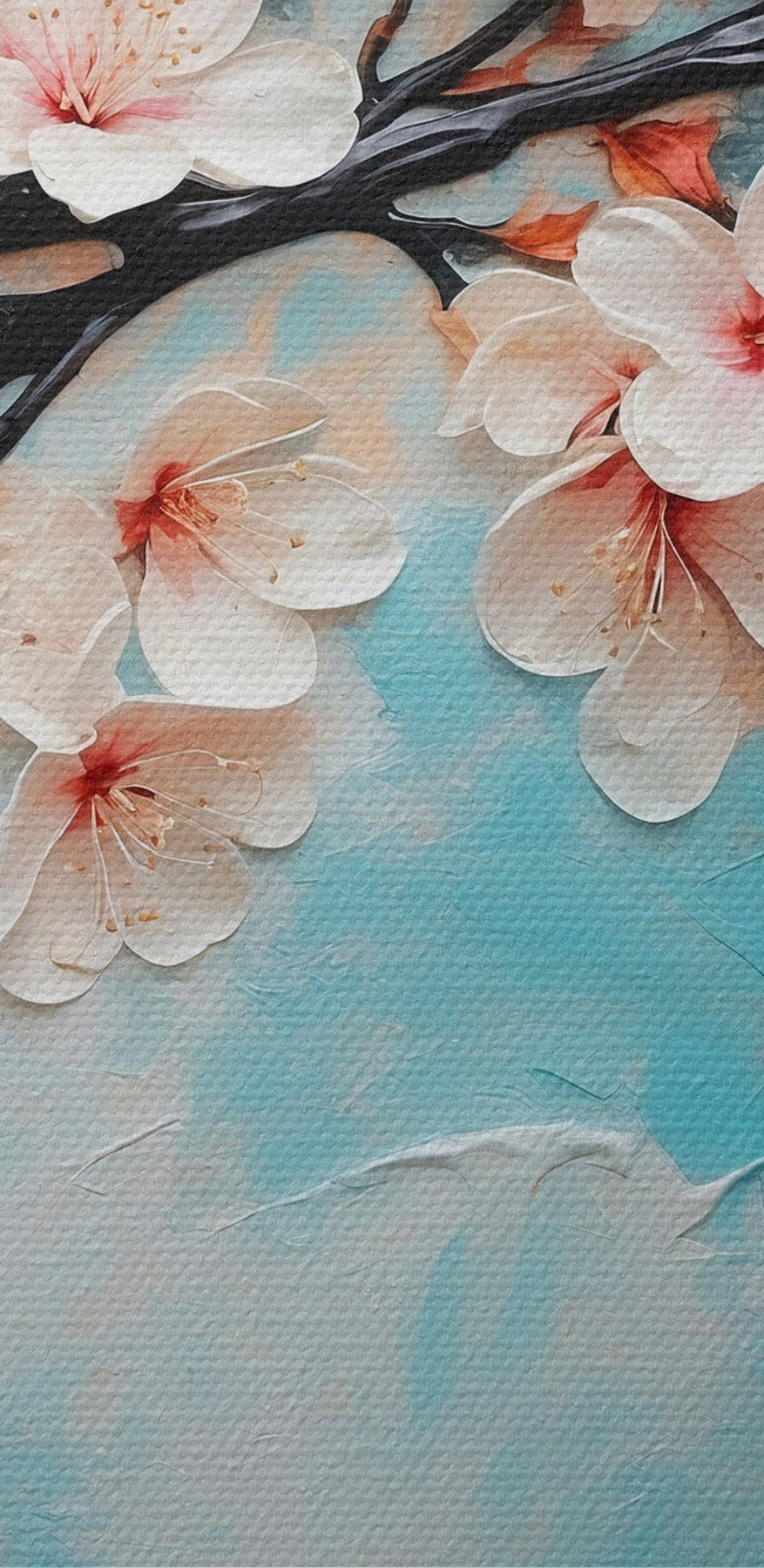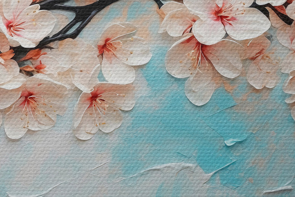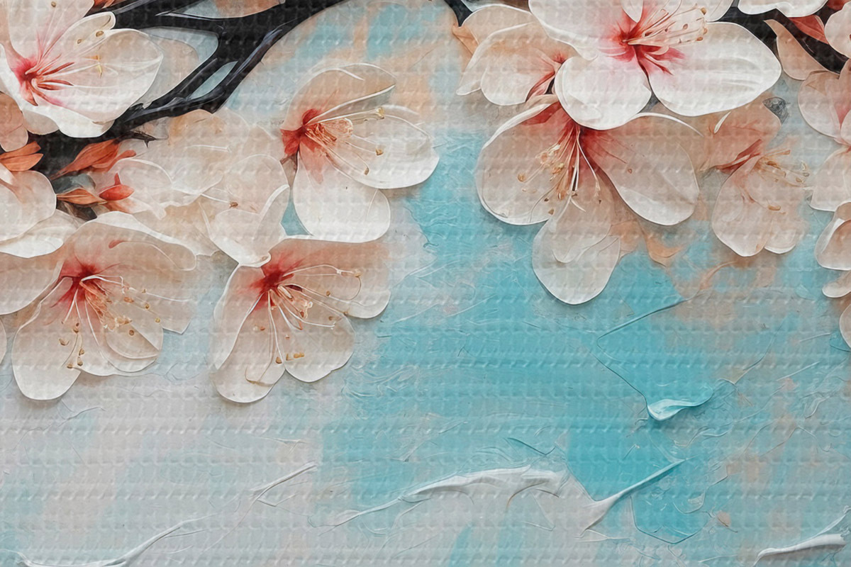 Nuotrauka Žydinti šaka abstrakčiame aliejiniame fone Nr r41031