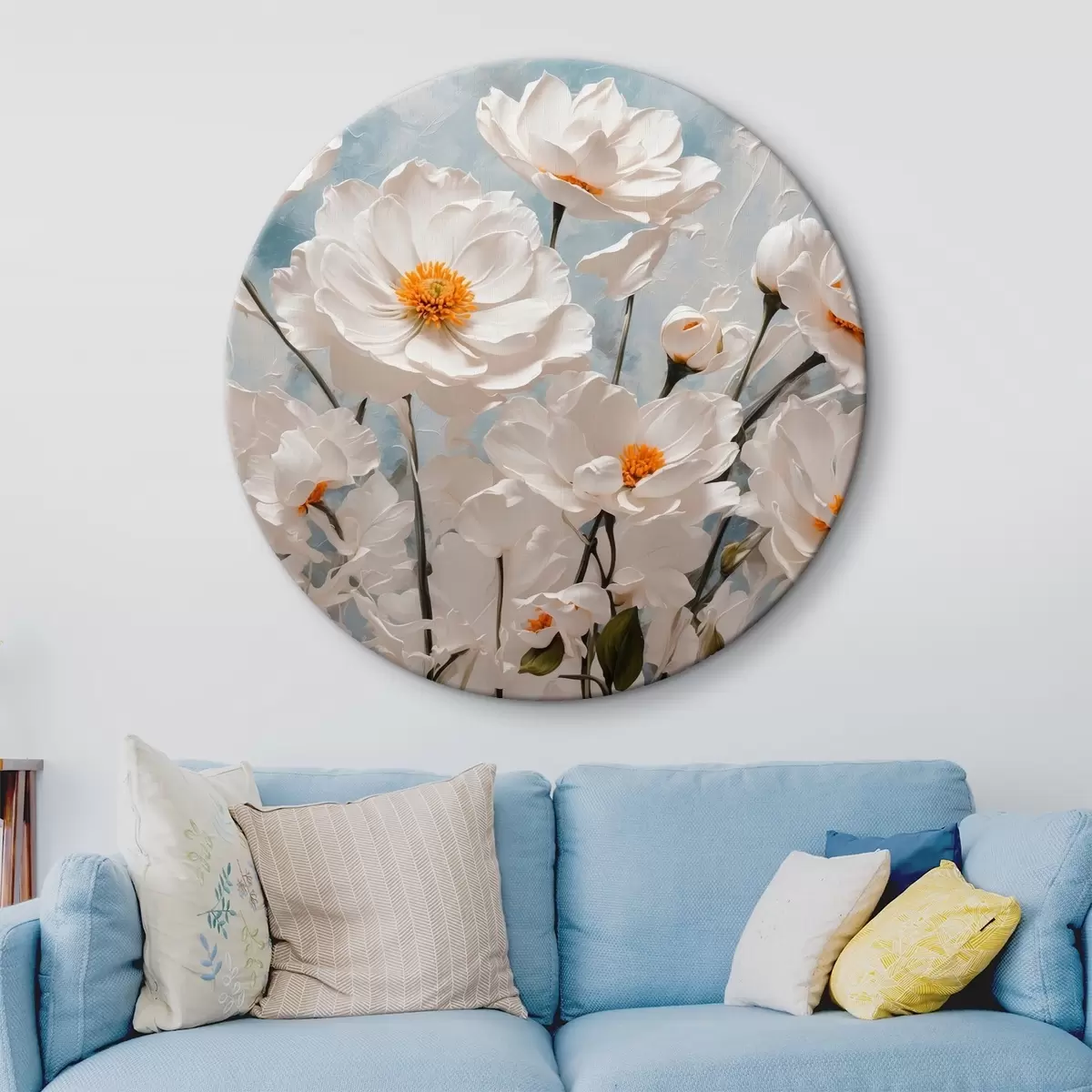 Nuotrauka Baltos gėlės mėlyname ir baltame aliejiniame fone Nr r41041