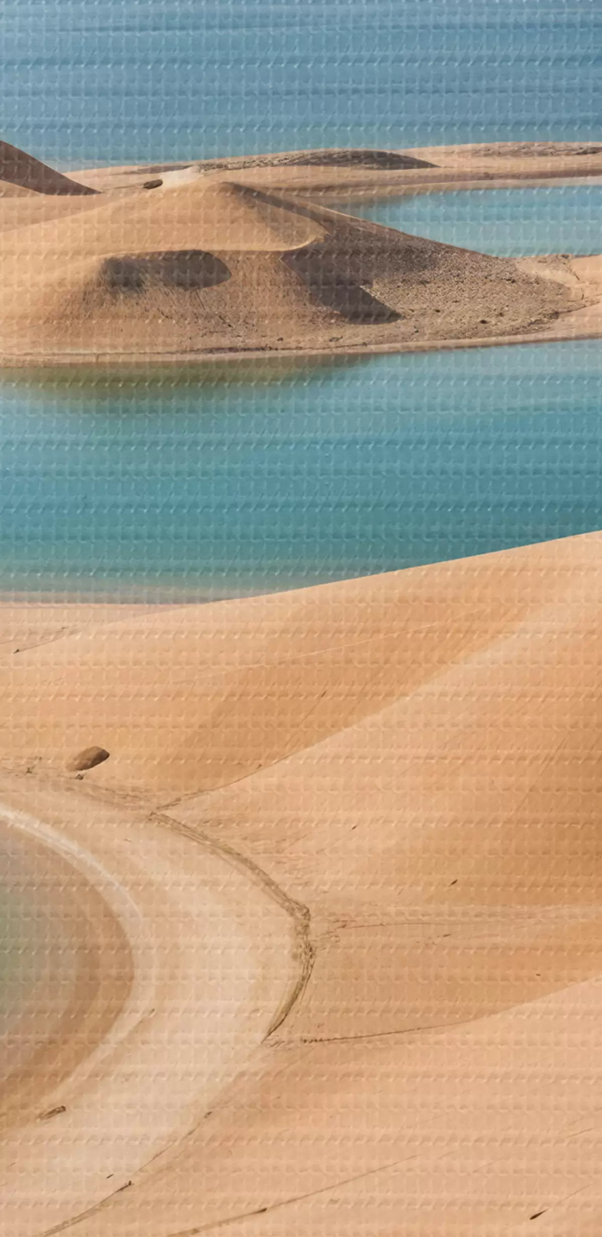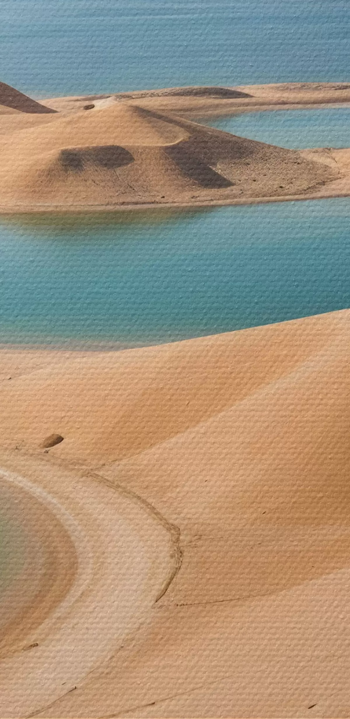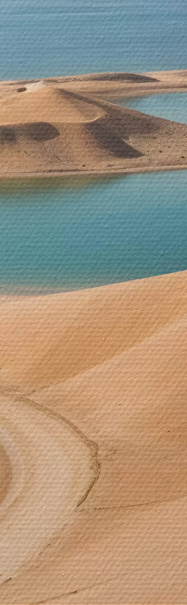 Nuotrauka Didžiulis dykumos kraštovaizdis su banguojančiomis kopomis ir turkio spalvos ežerais, apsuptas raižytų kalnų Nr r41087