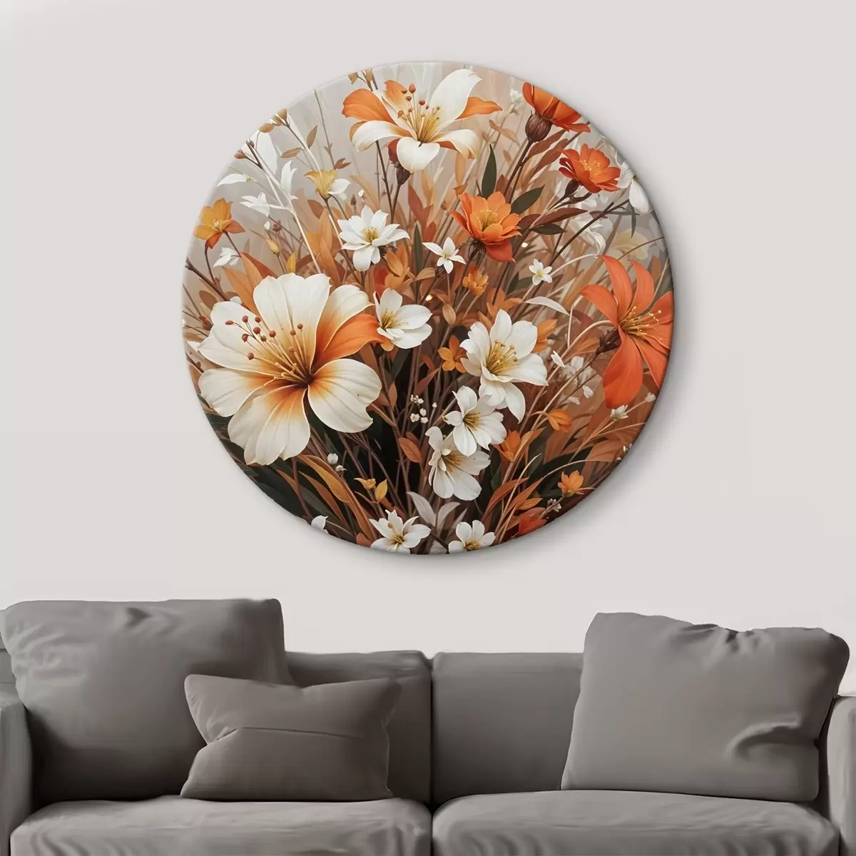 Nuotrauka Ryški oranžinių ir baltų gėlių puokštė, įskaitant lelijas ir kitas švelnias gėles Nr r41099