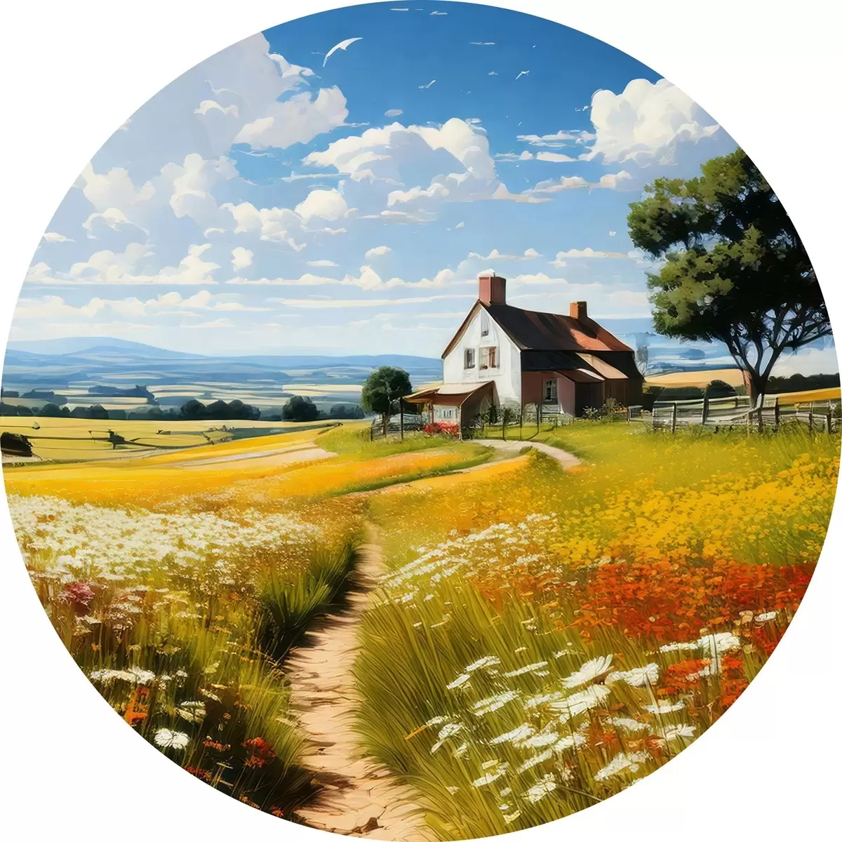 Nuotrauka takas žydinčiame lauke ir namas Nr r41109