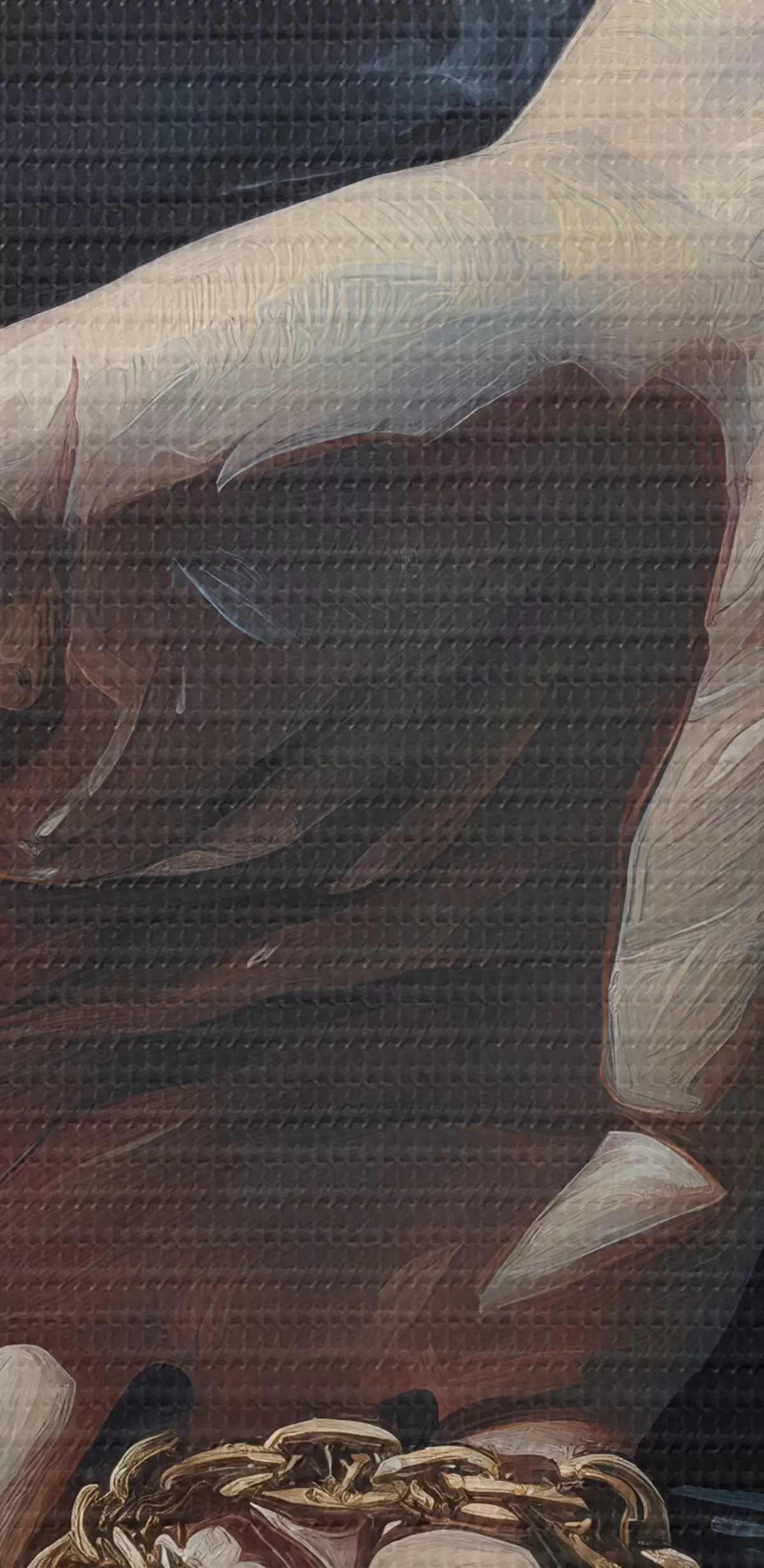 Paveikslą galima pakabinti iš karto jį gavus. Paveikslas bus ištemptas ant 2 cm pločio medinių neštuvų.