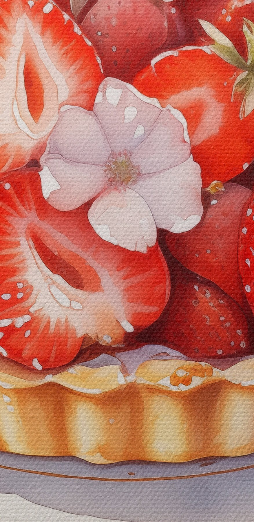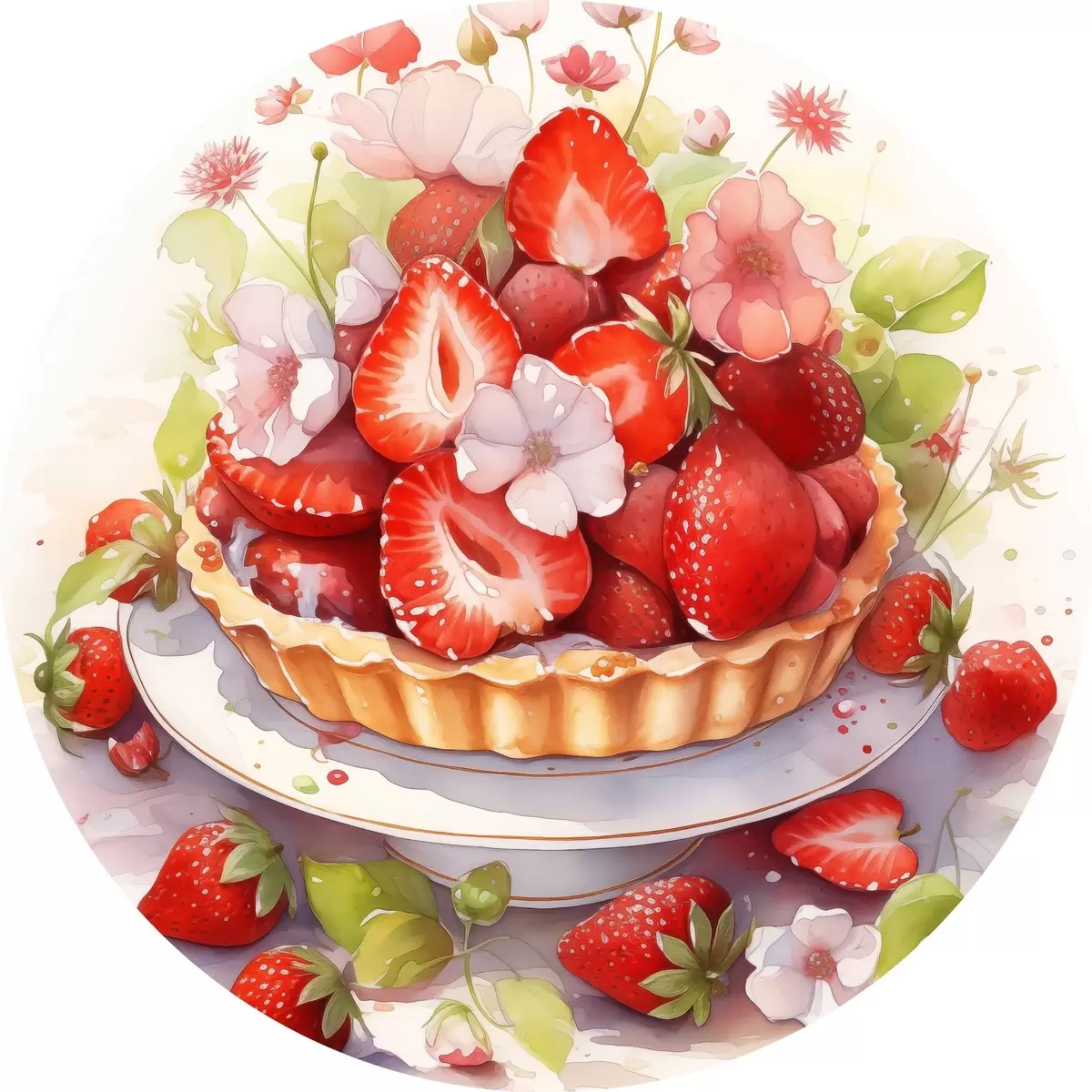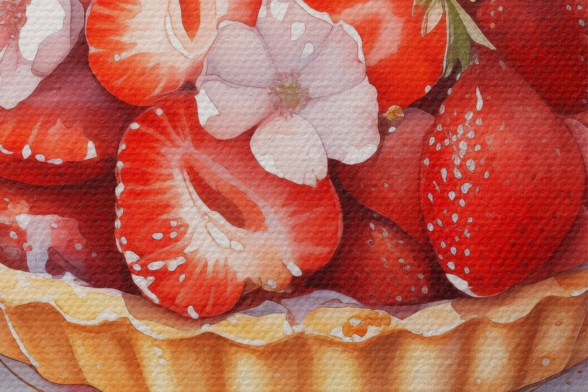 Nuotrauka Braškių pyragas, akvarelė, gėlės Nr r41177