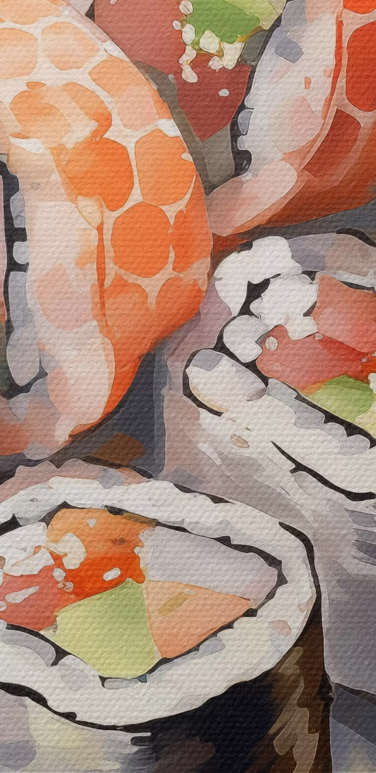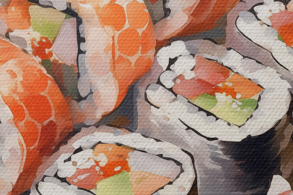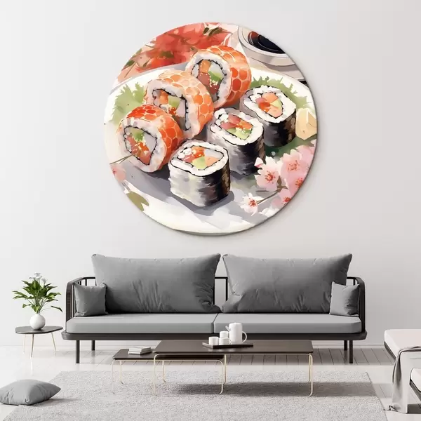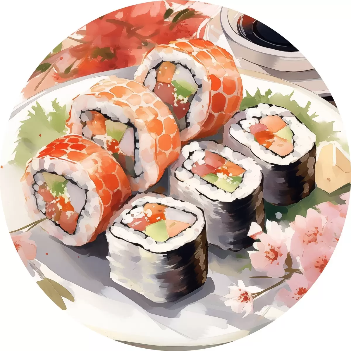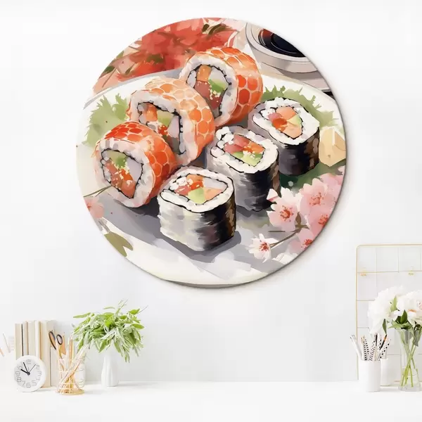 Nuotrauka Suši lėkštėje, akvarelė, gėlių, japonų Nr r41179