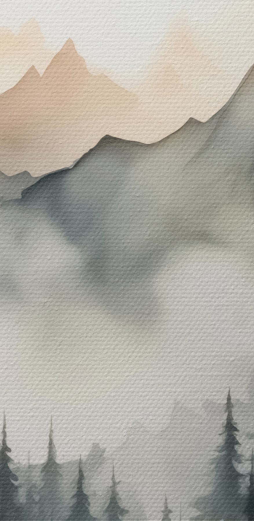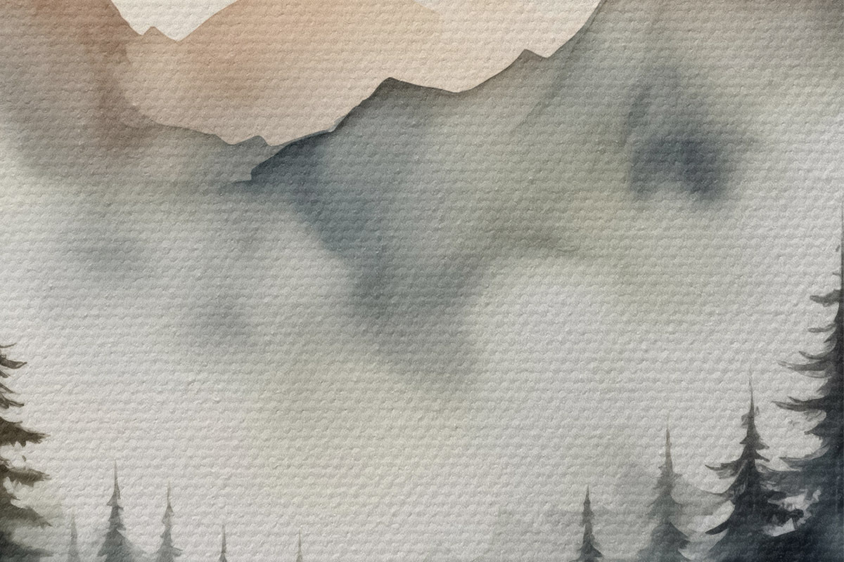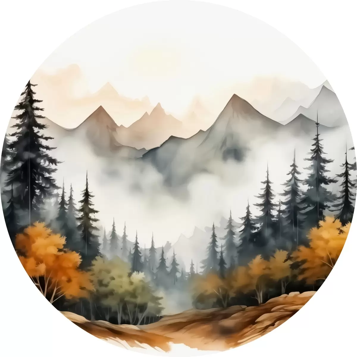 Nuotrauka Miškas akvarelinių kalnų fone Nr r41240