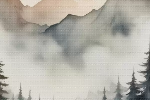 Nuotrauka Miškas akvarelinių kalnų fone Nr r41240
