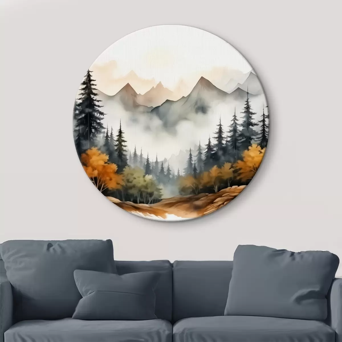 Nuotrauka Miškas akvarelinių kalnų fone Nr r41240