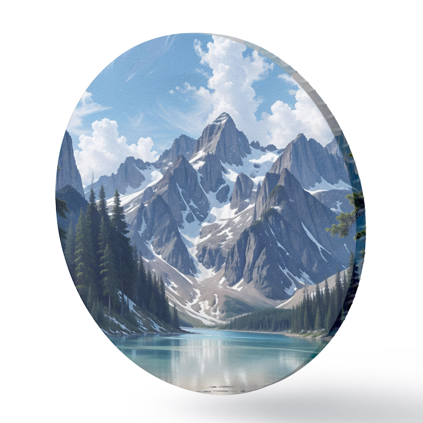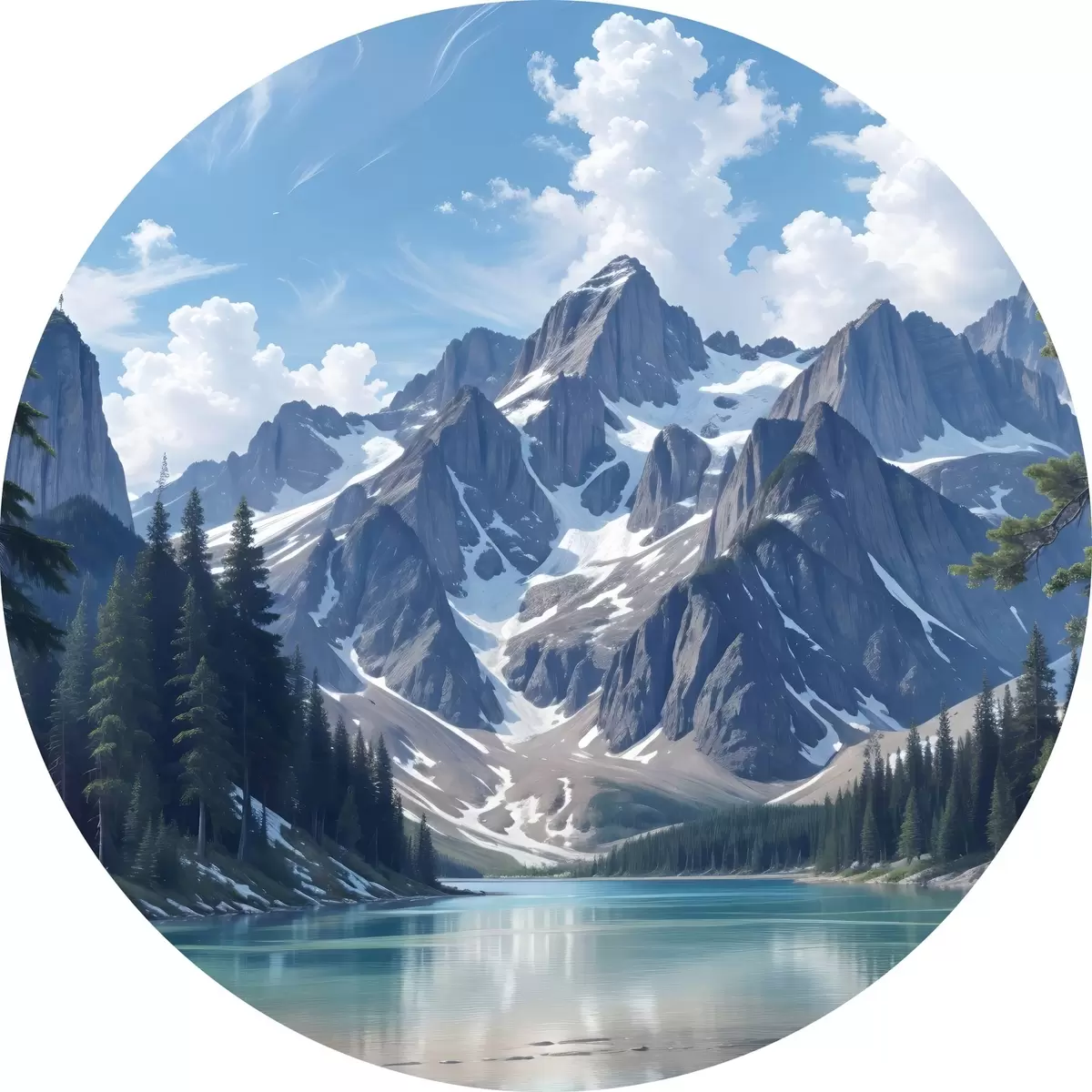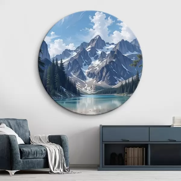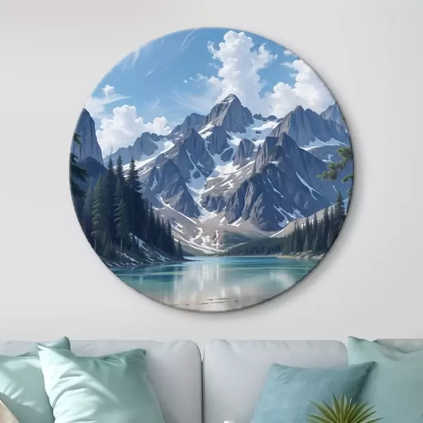 Nuotrauka Ramus Alpių ežeras, apsuptas didingų snieguotų kalnų, su tankiu mišku ir debesuotu dangumi Nr r41264