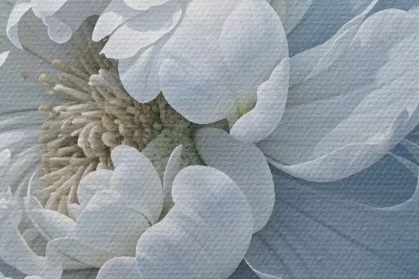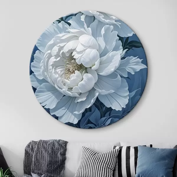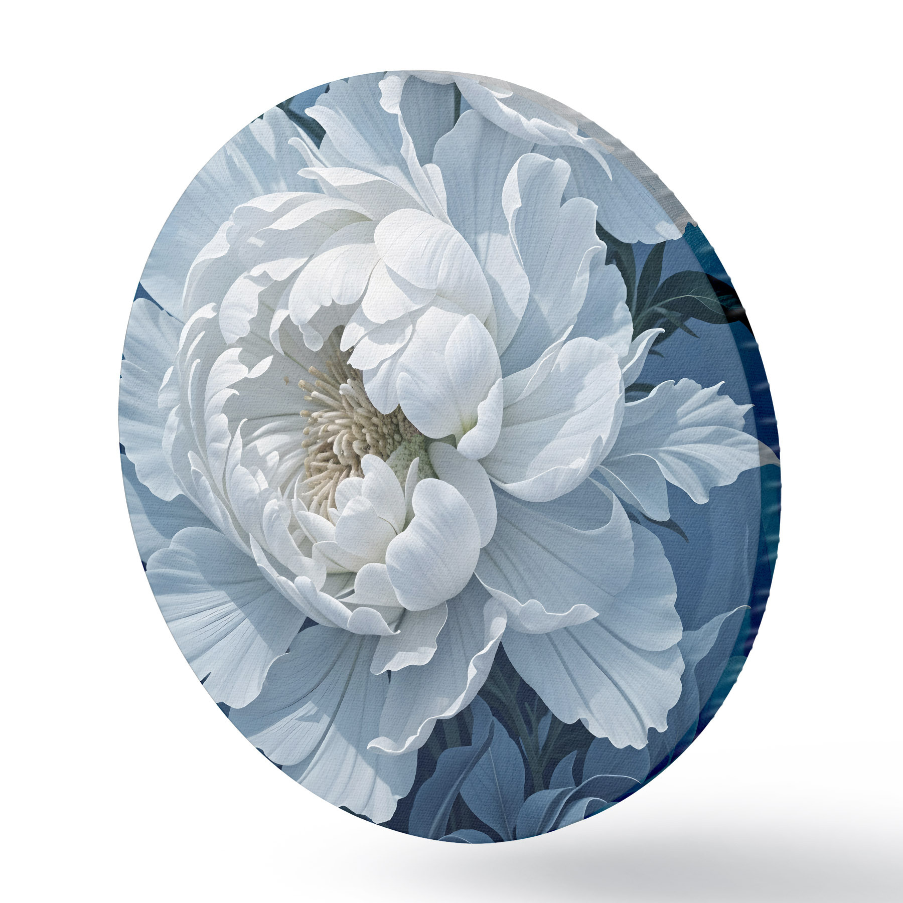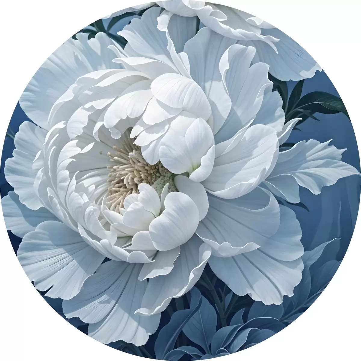 Nuotrauka Balti bijūnai su žaliais lapais tamsiai mėlyname fone Nr r41270