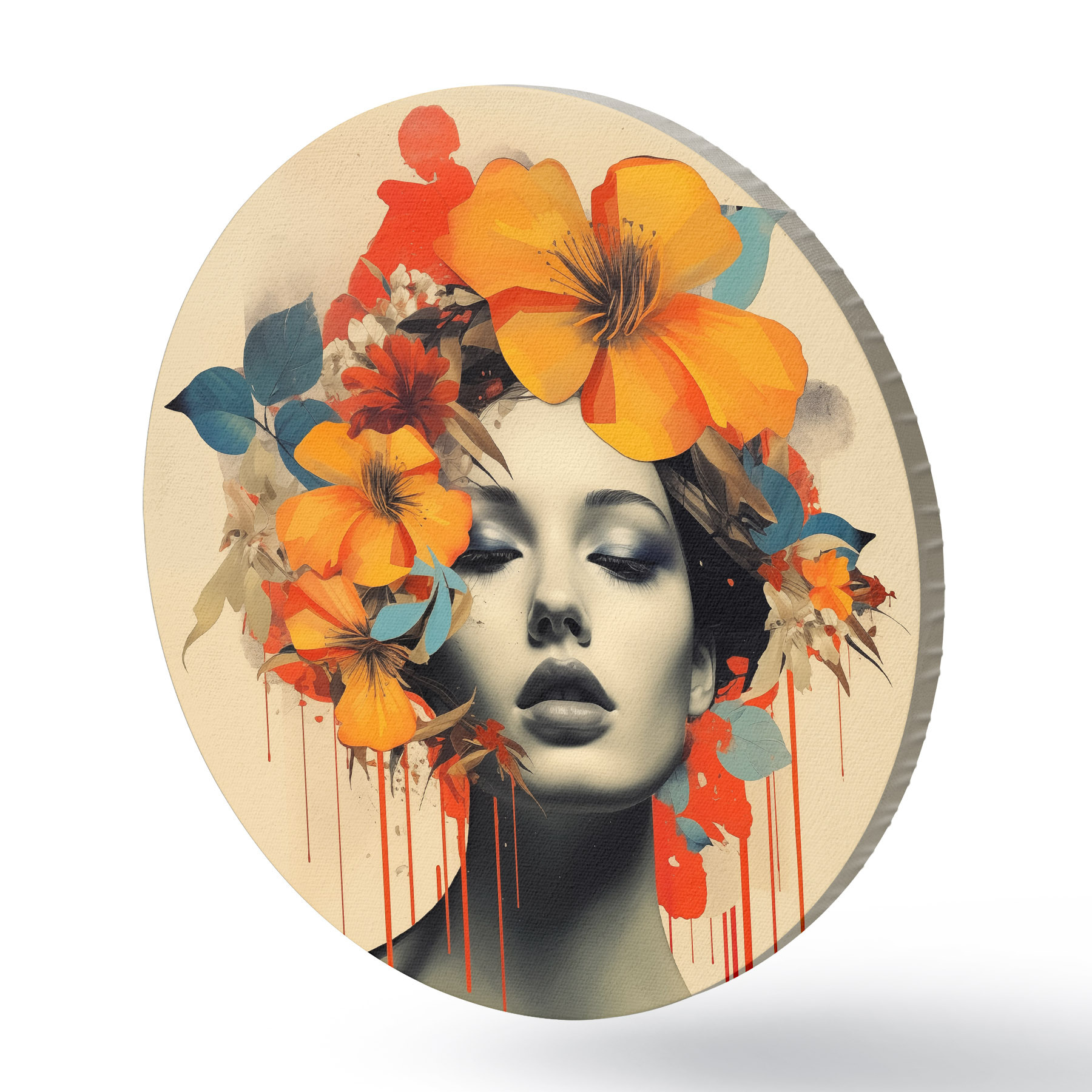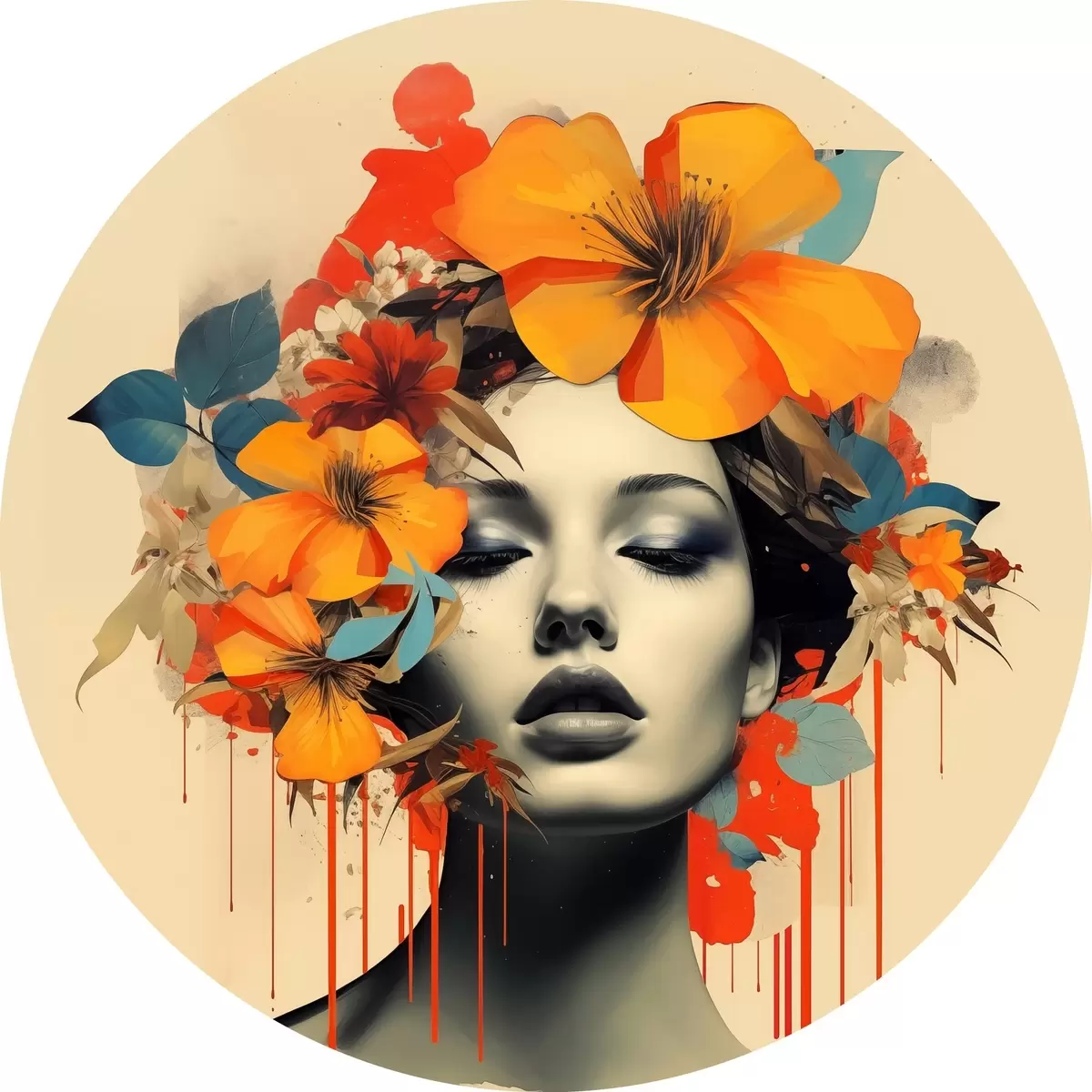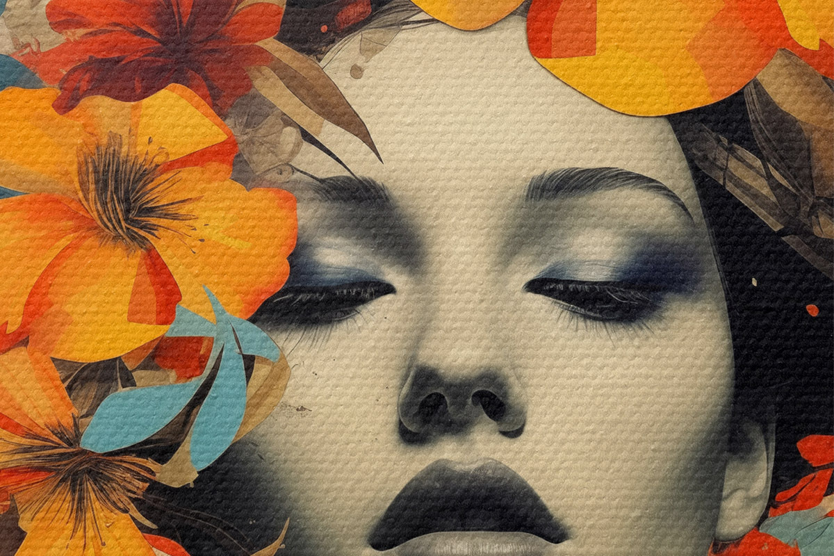 Nuotrauka Koliažo stiliaus mergaitės portretas su gėlėmis Nr r41271
