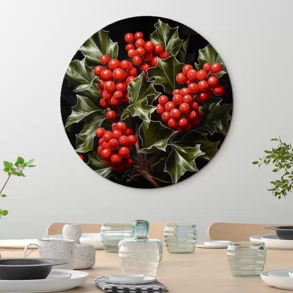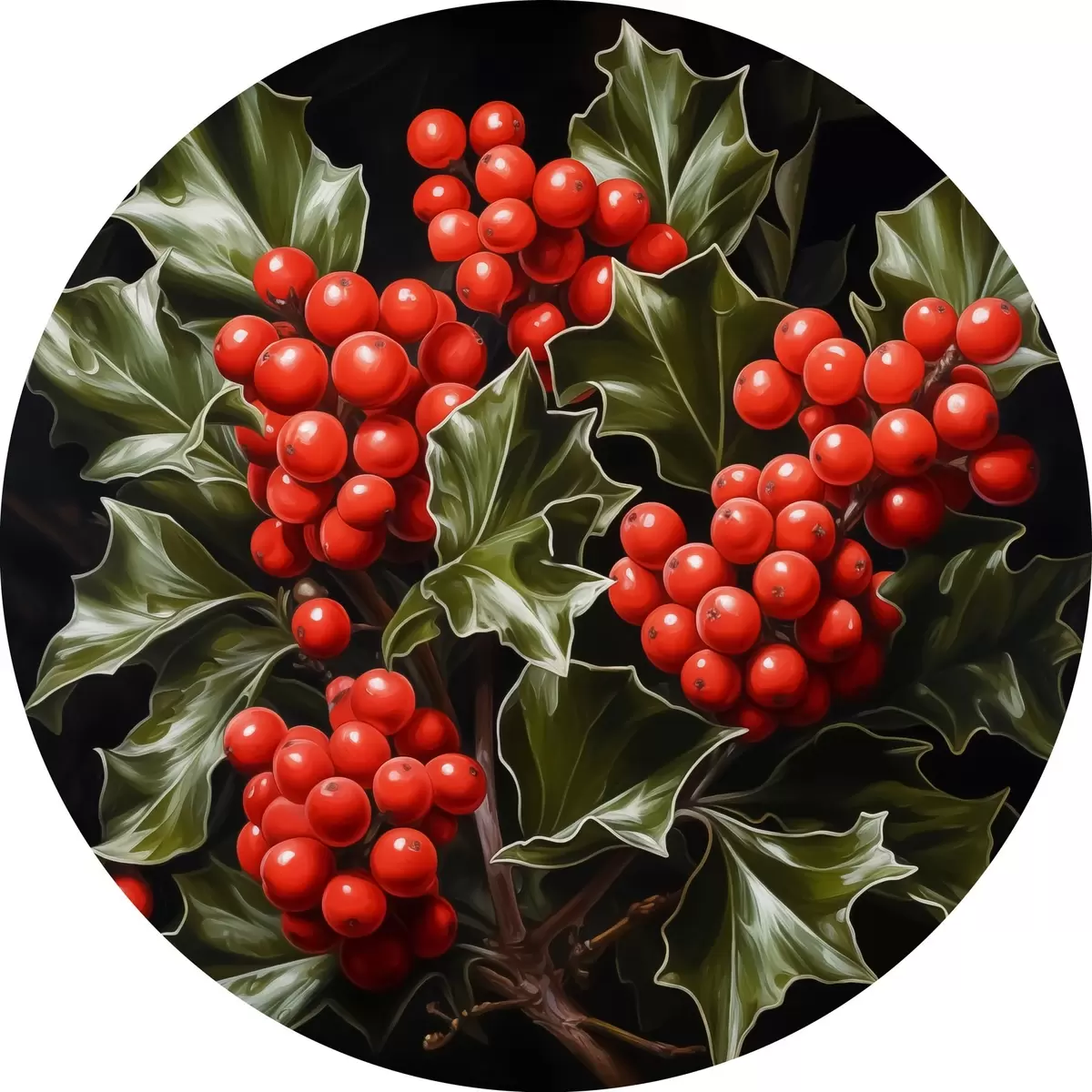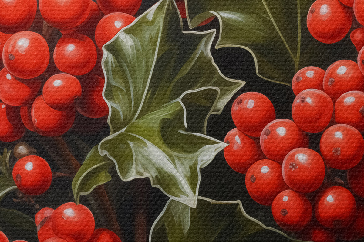 Nuotrauka Holly uogos ir lapai tamsiame fone Nr r41273