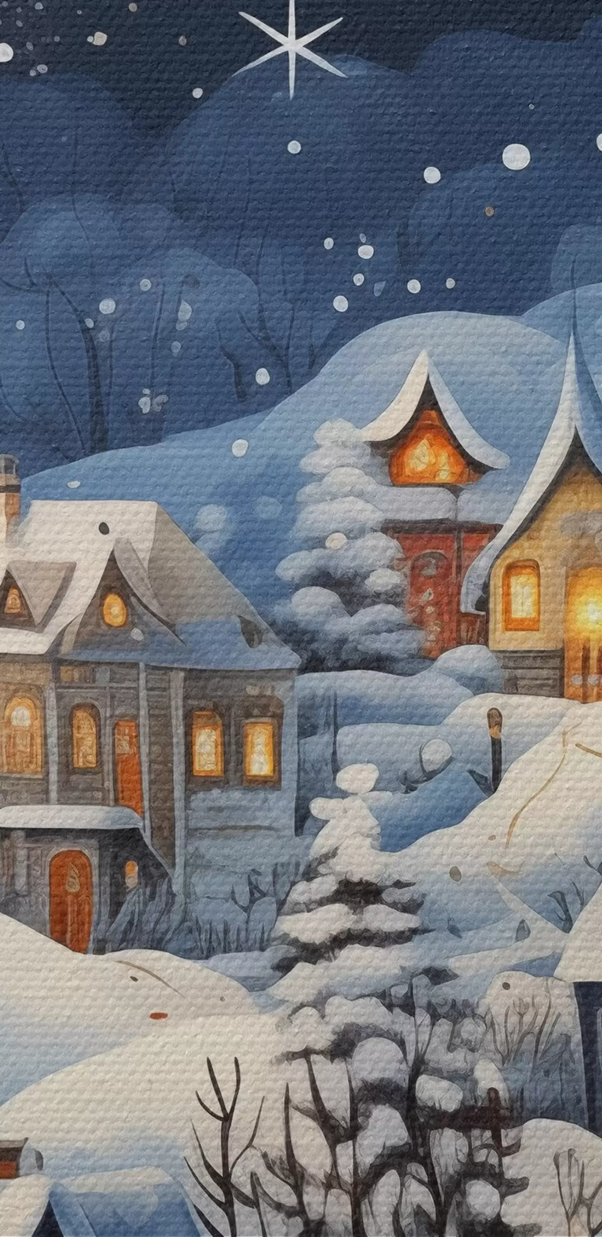 Nuotrauka Žiemos kraštovaizdis su apsnigtais kaimo namais žvaigždėto nakties dangaus fone Nr r41275