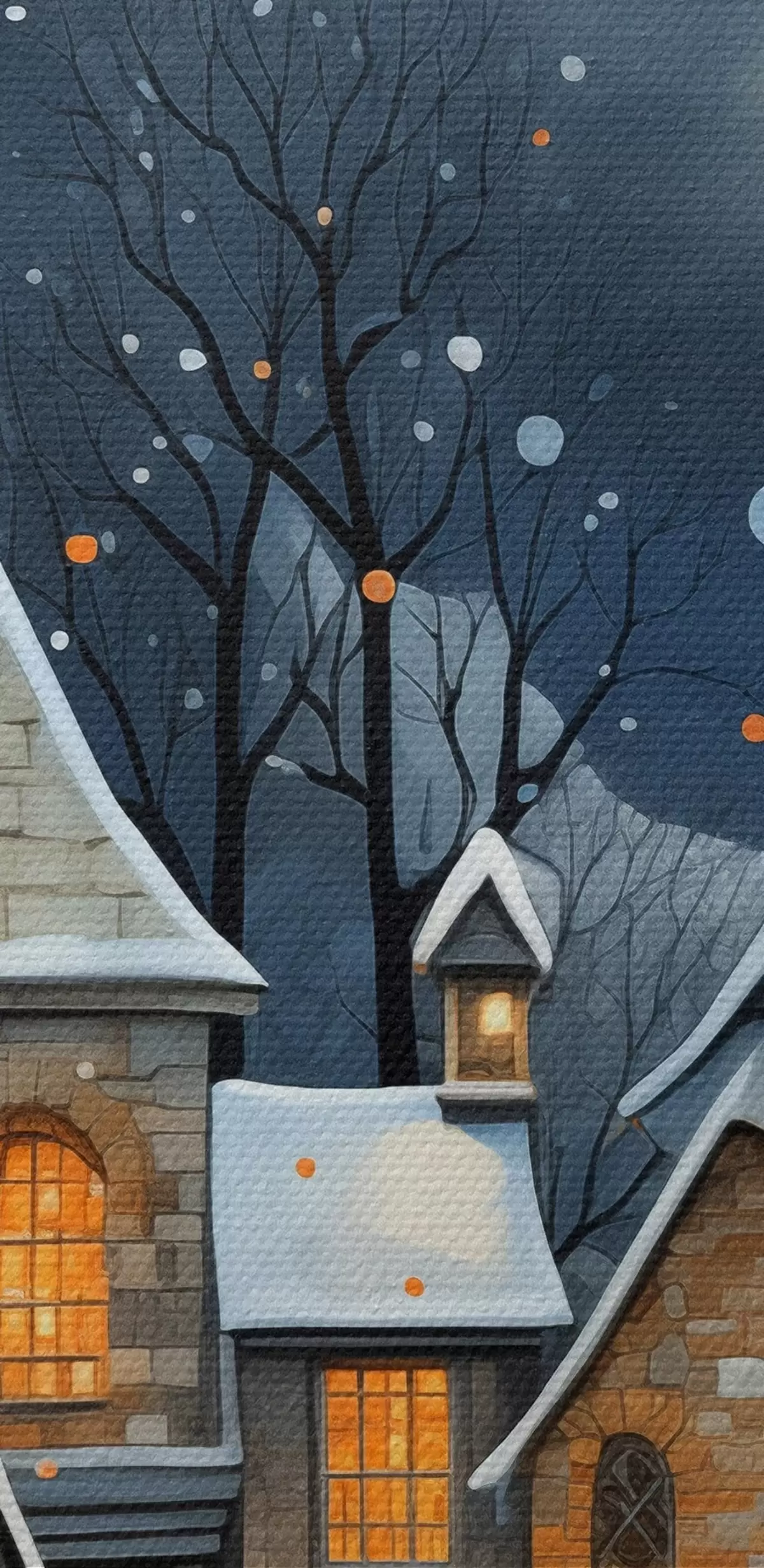 Nuotrauka Namai sniege priešais žvaigždėtą nakties dangų Nr r41276