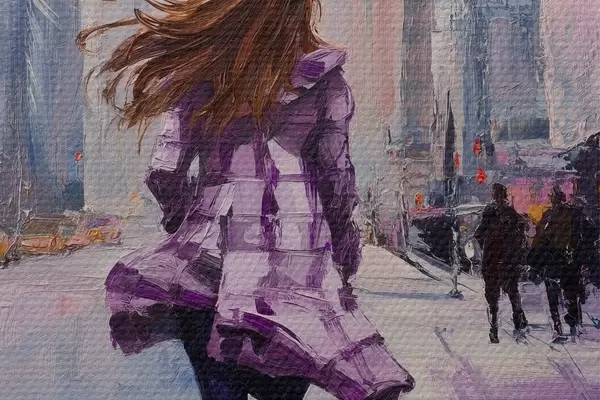 Nuotrauka Mergina violetiniu paltu Nr r41345