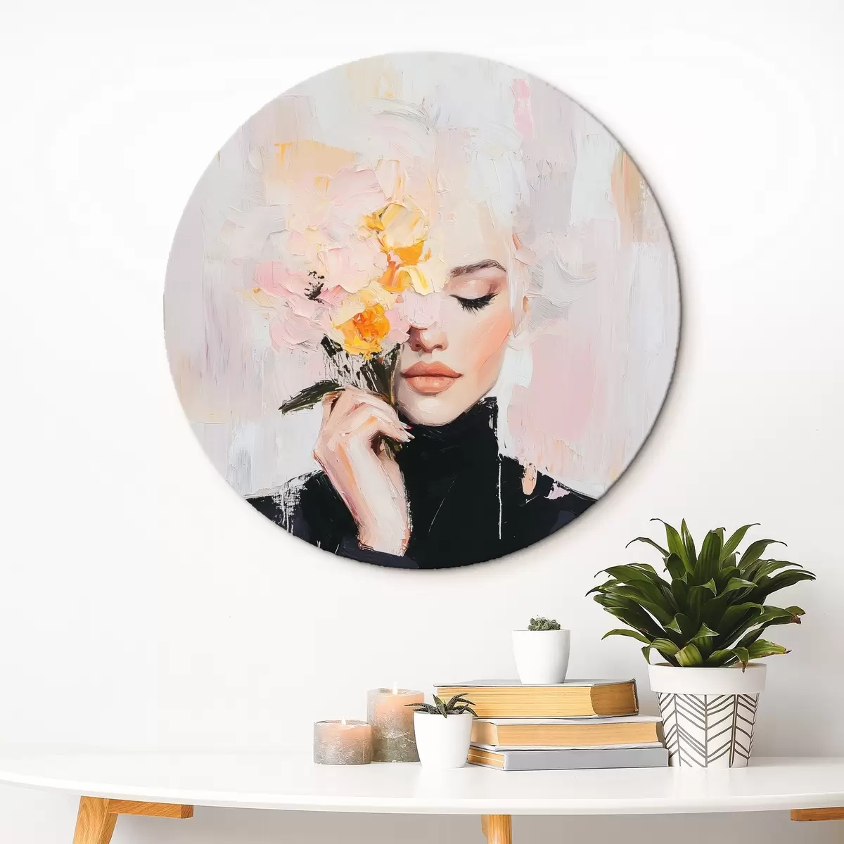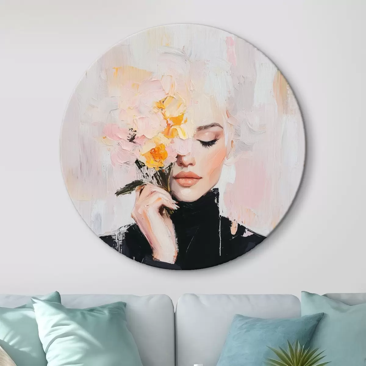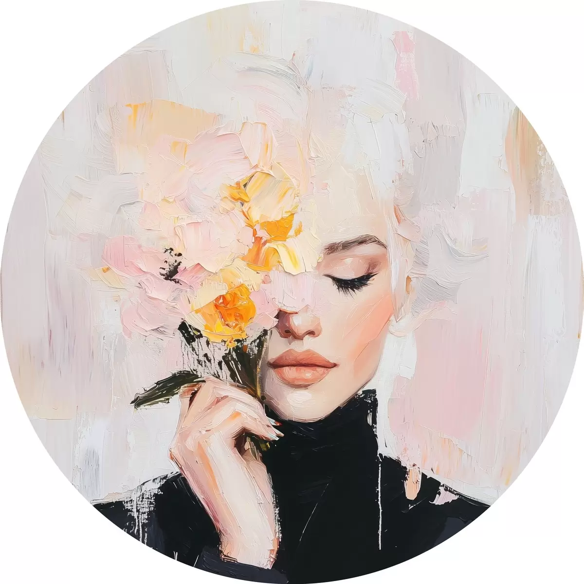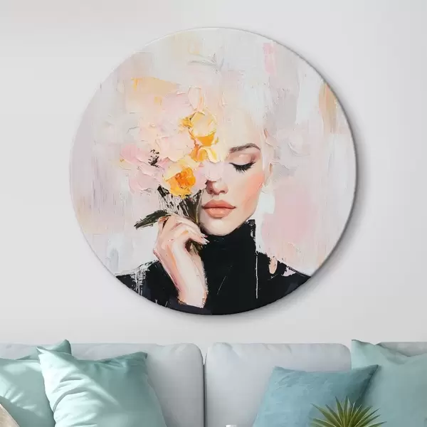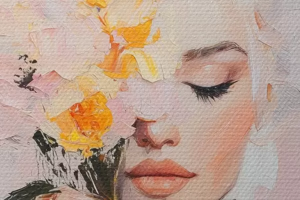 Nuotrauka Abstrakti moteris su gėlių puokšte rankose su teptuko potėpiais Nr r41355