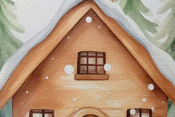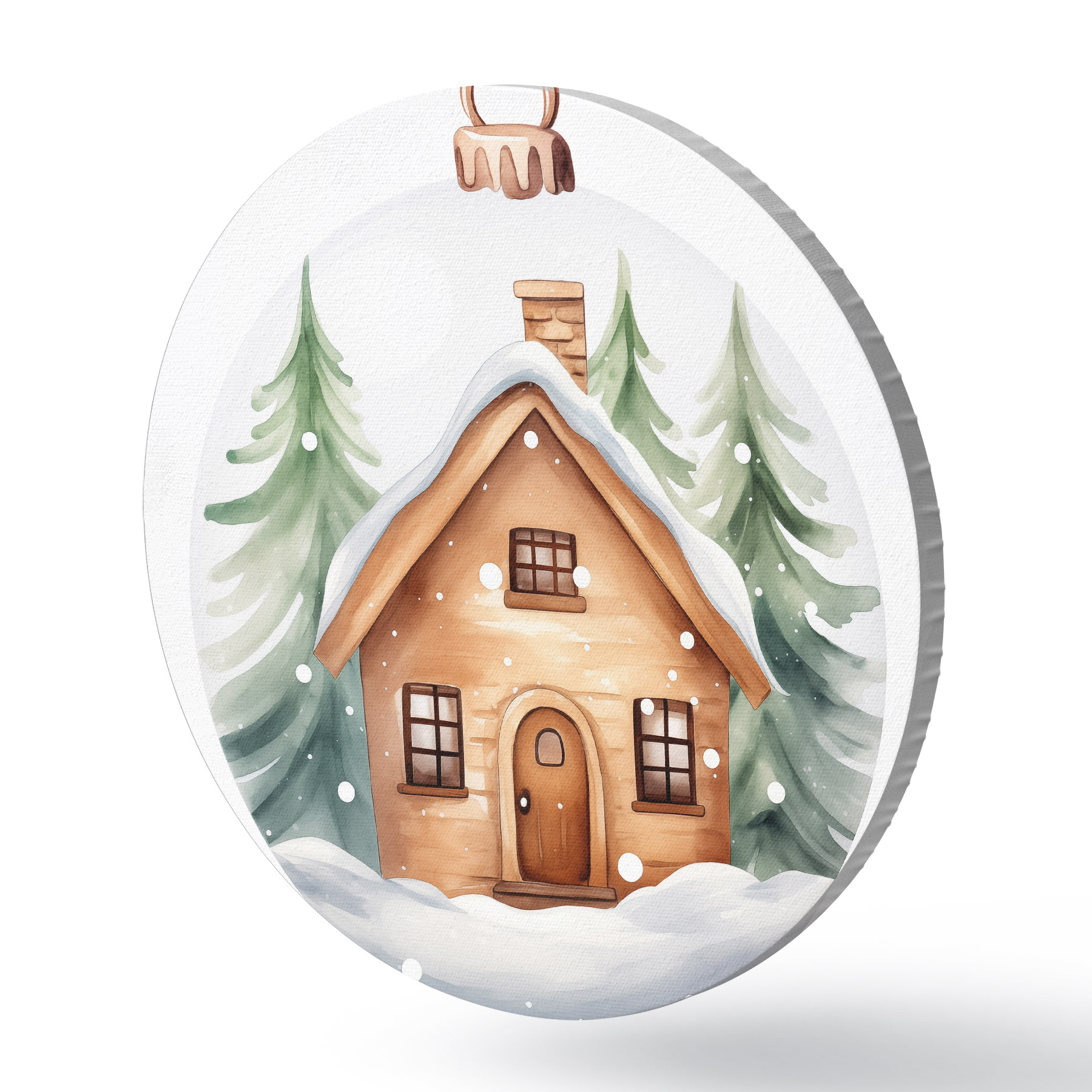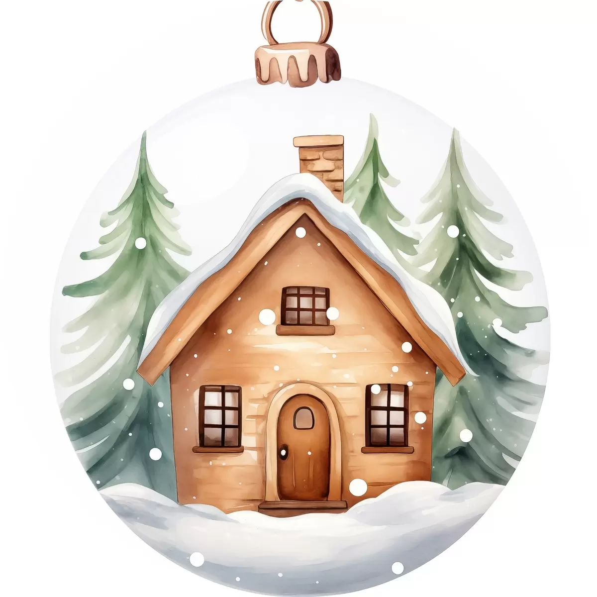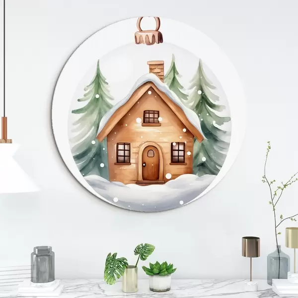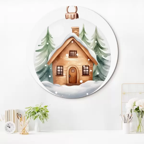 Nuotrauka Krištolinis rutulys su akvareliniu namu sniege, pušys Nr r41362