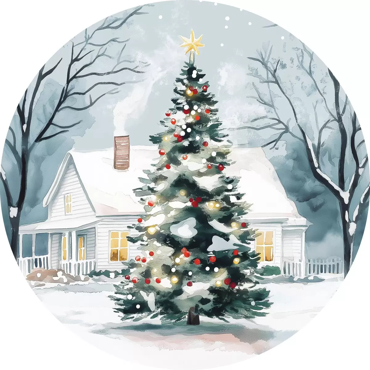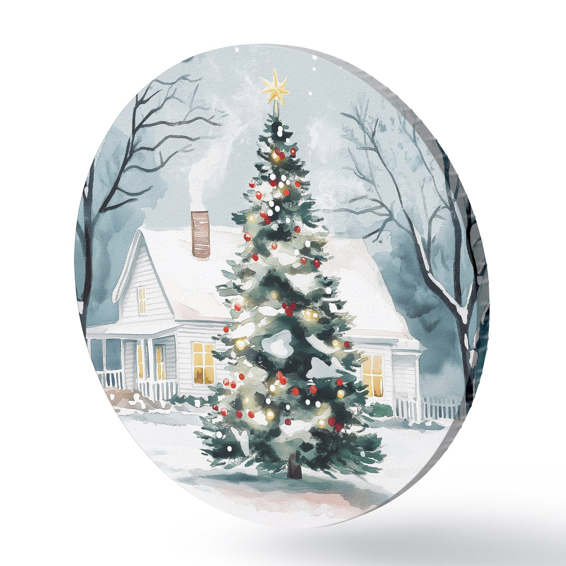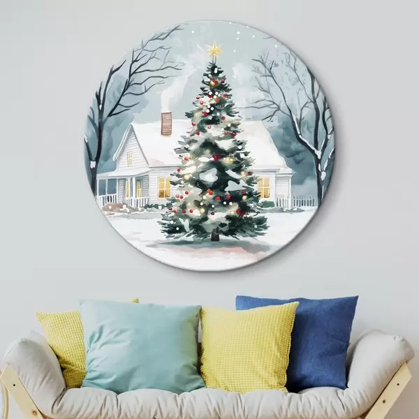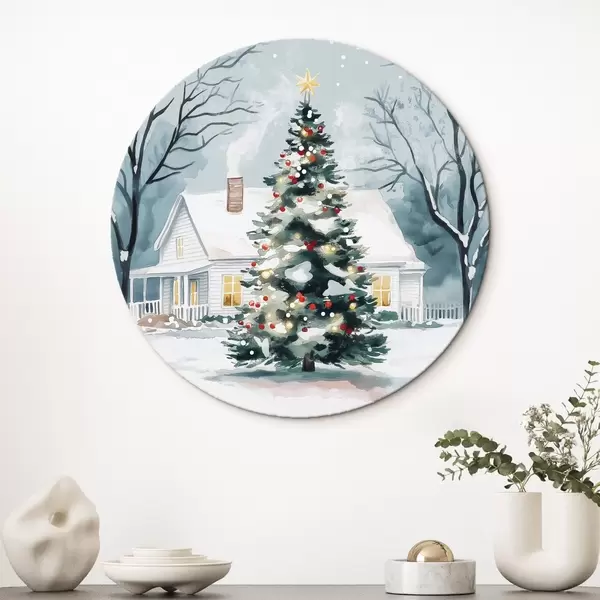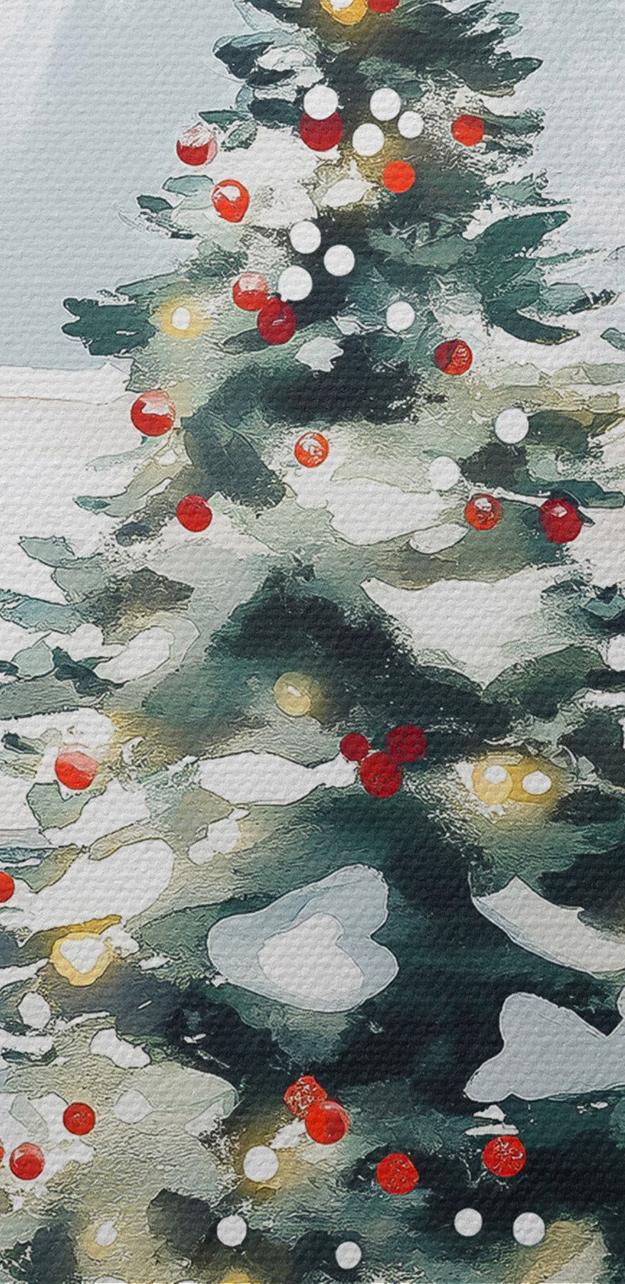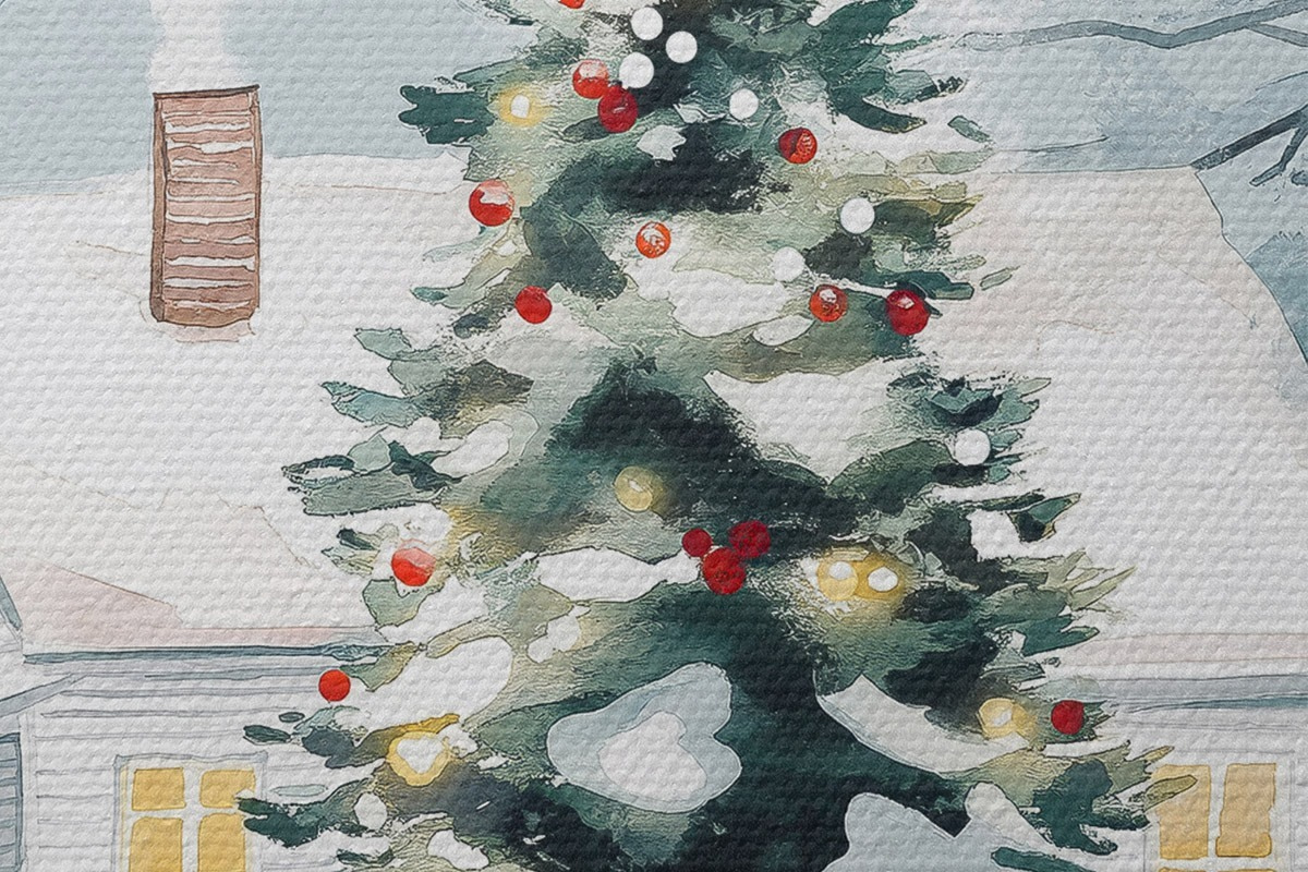 Nuotrauka Žiemos miestelis, papuošta pušis, Kalėdos, akvarelė Nr r41364
