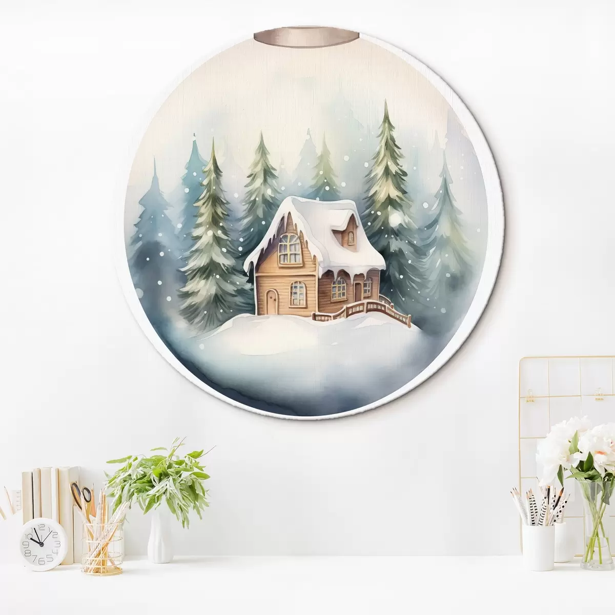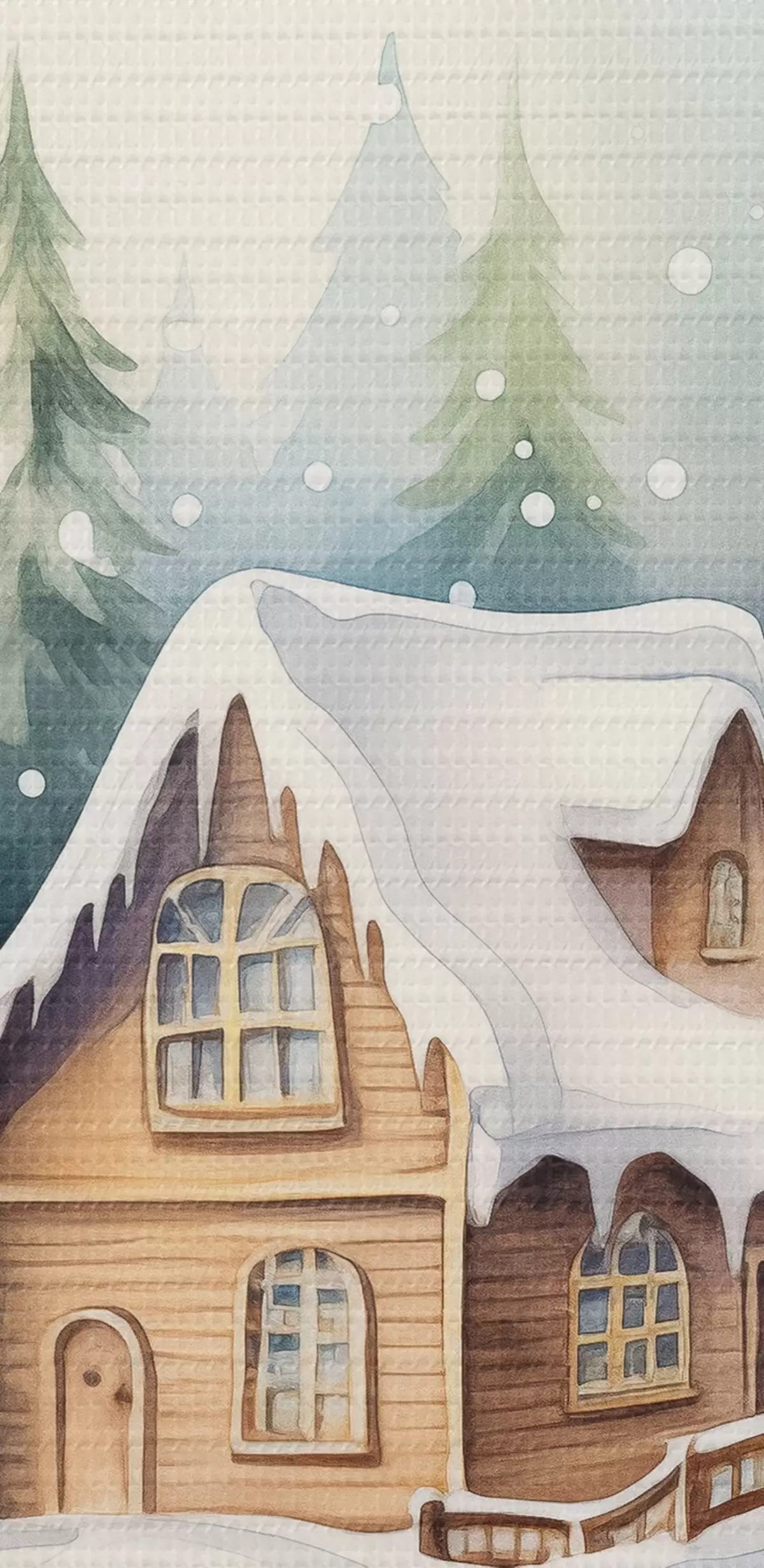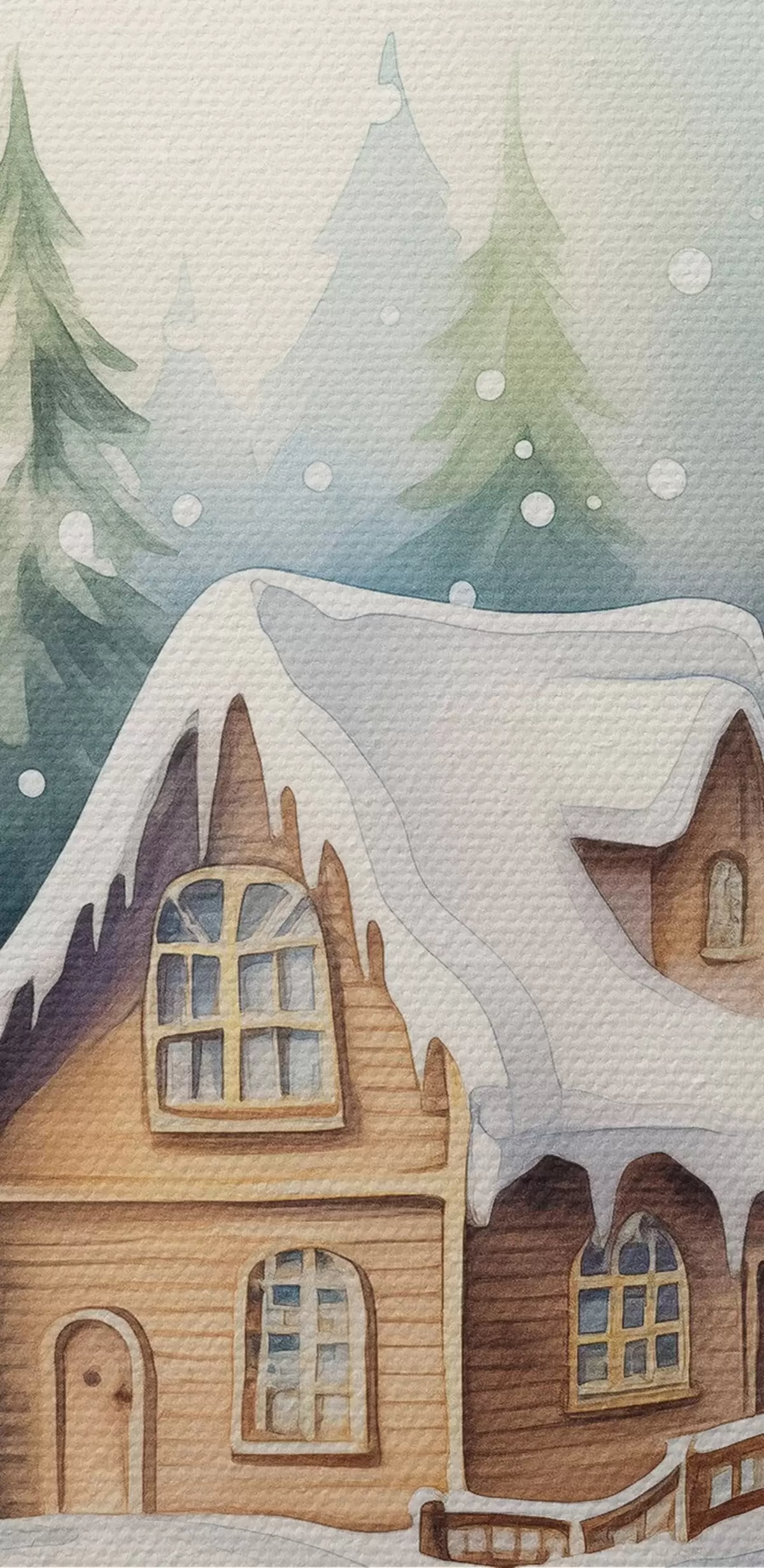 Nuotrauka Akvarelinis krištolo rutulys su žiemos peizažu, namas miške, sniegas Nr r41366