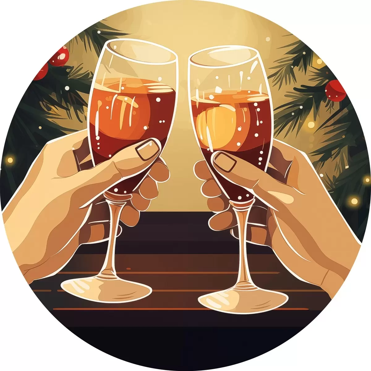 Nuotrauka Šampano taurės, šventė, Naujieji metai, kalėdinės lemputės Nr r41372