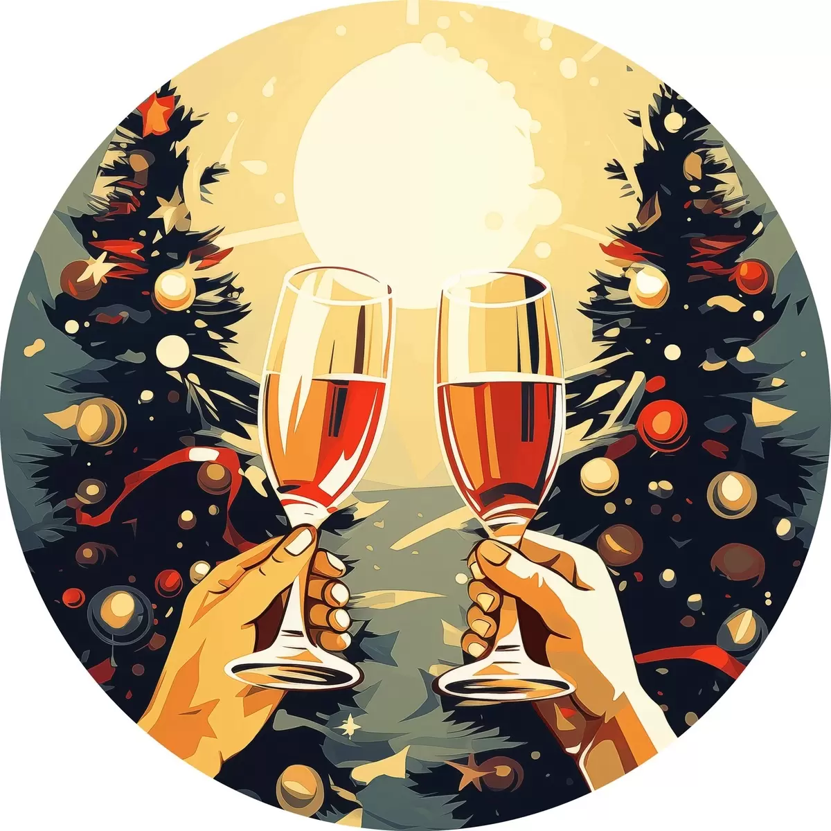 Nuotrauka Taurės su šampanu, Kalėdos, Naujieji metai, abstrakcija, pop menas, pušys Nr r41374