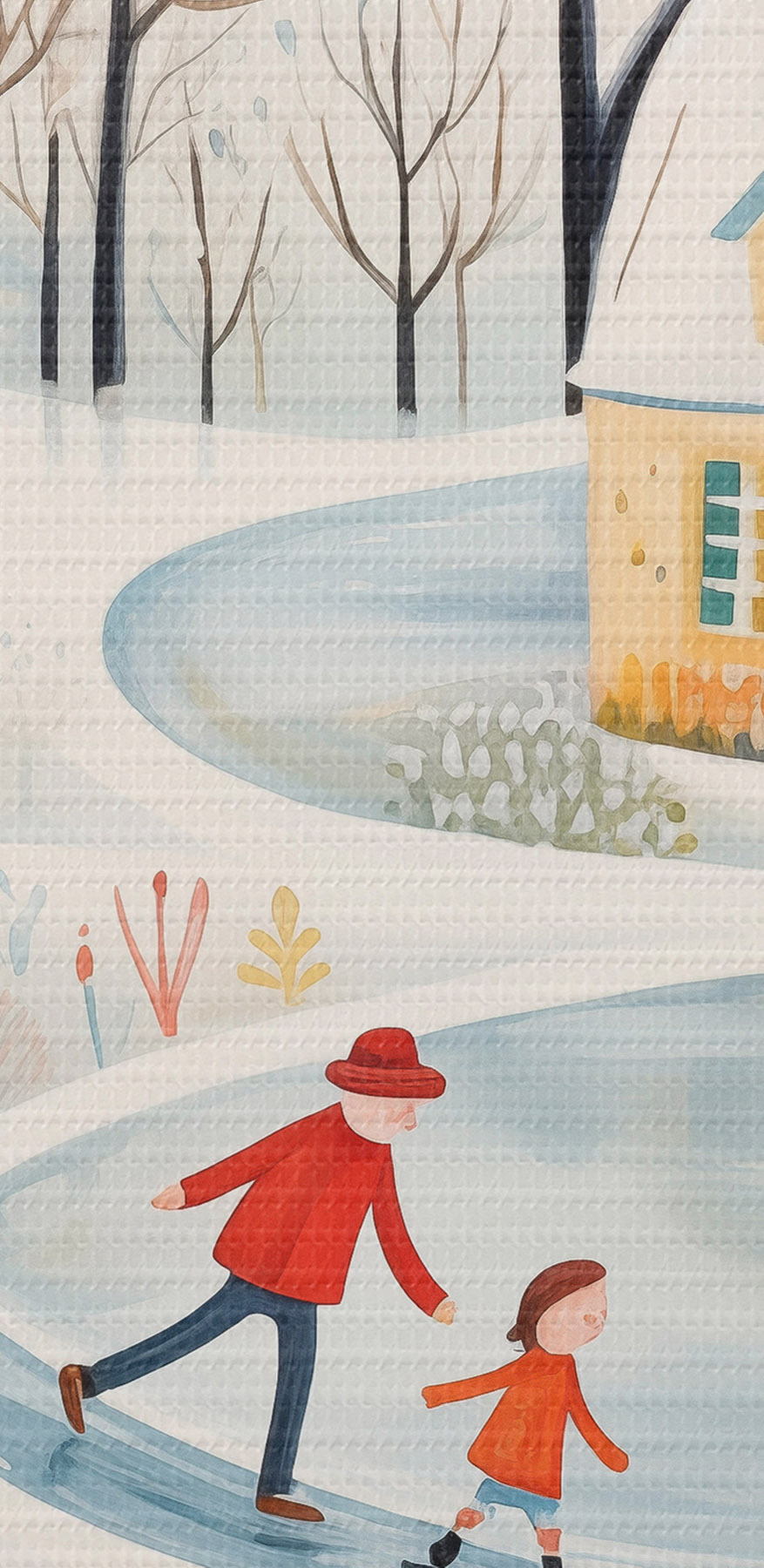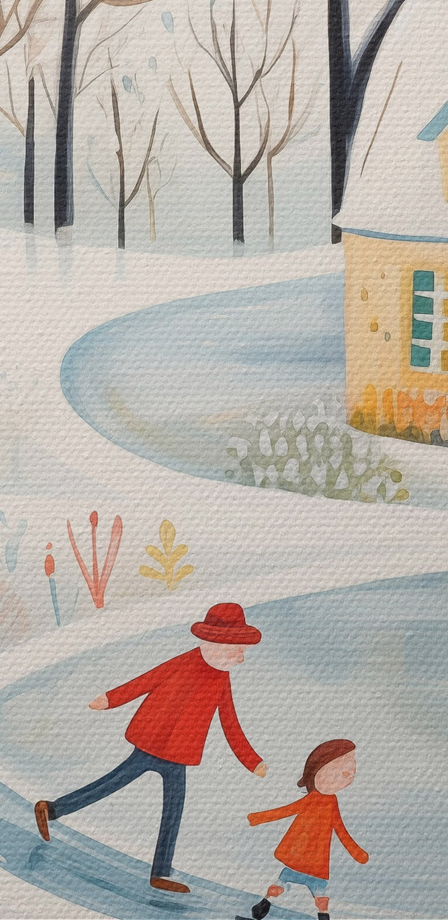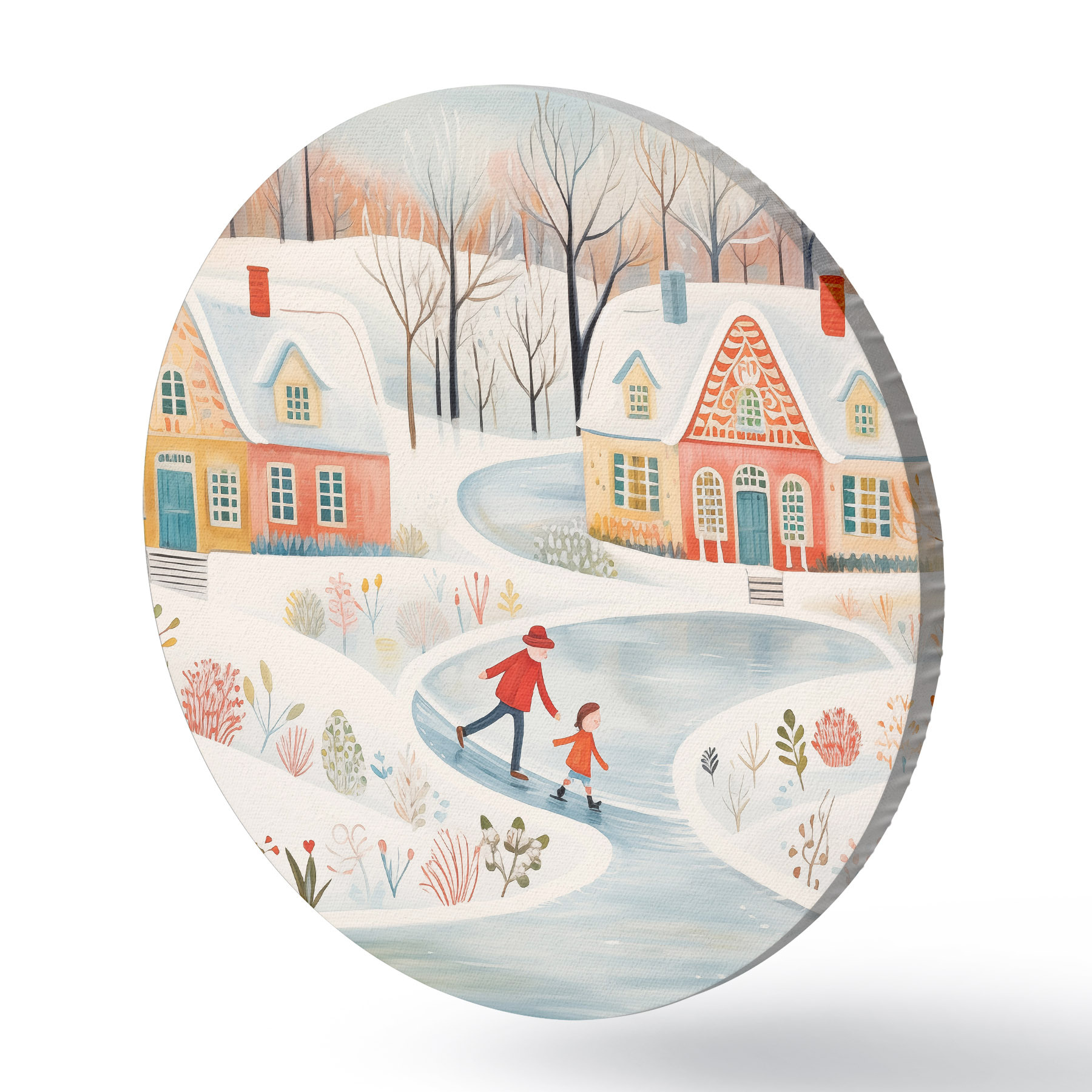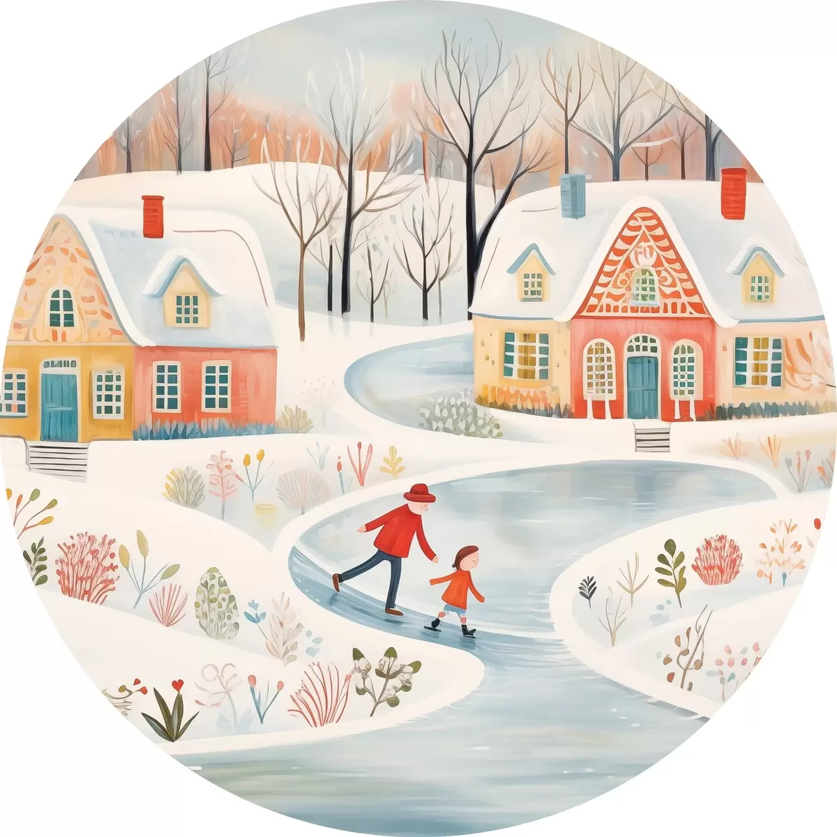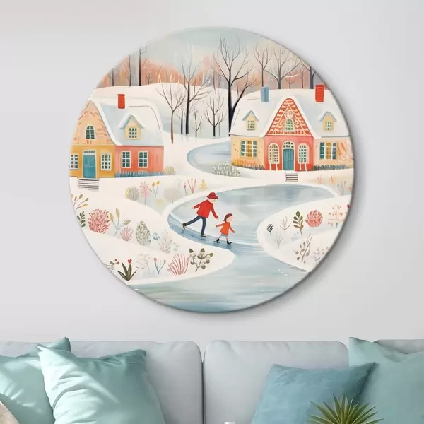 Nuotrauka Žiemos kaimas, miškas, gėlės, čiuožyklos, spalvingi namai Nr r41378