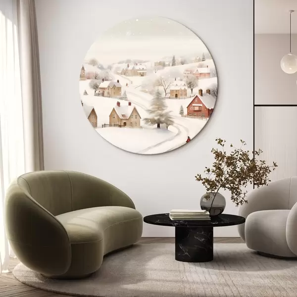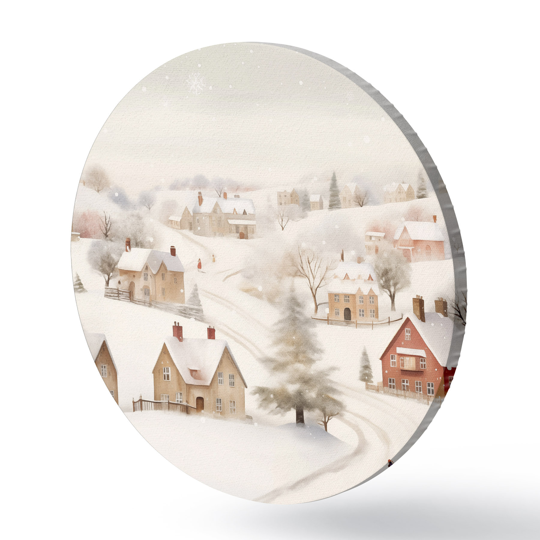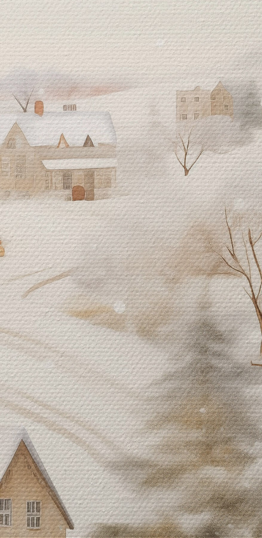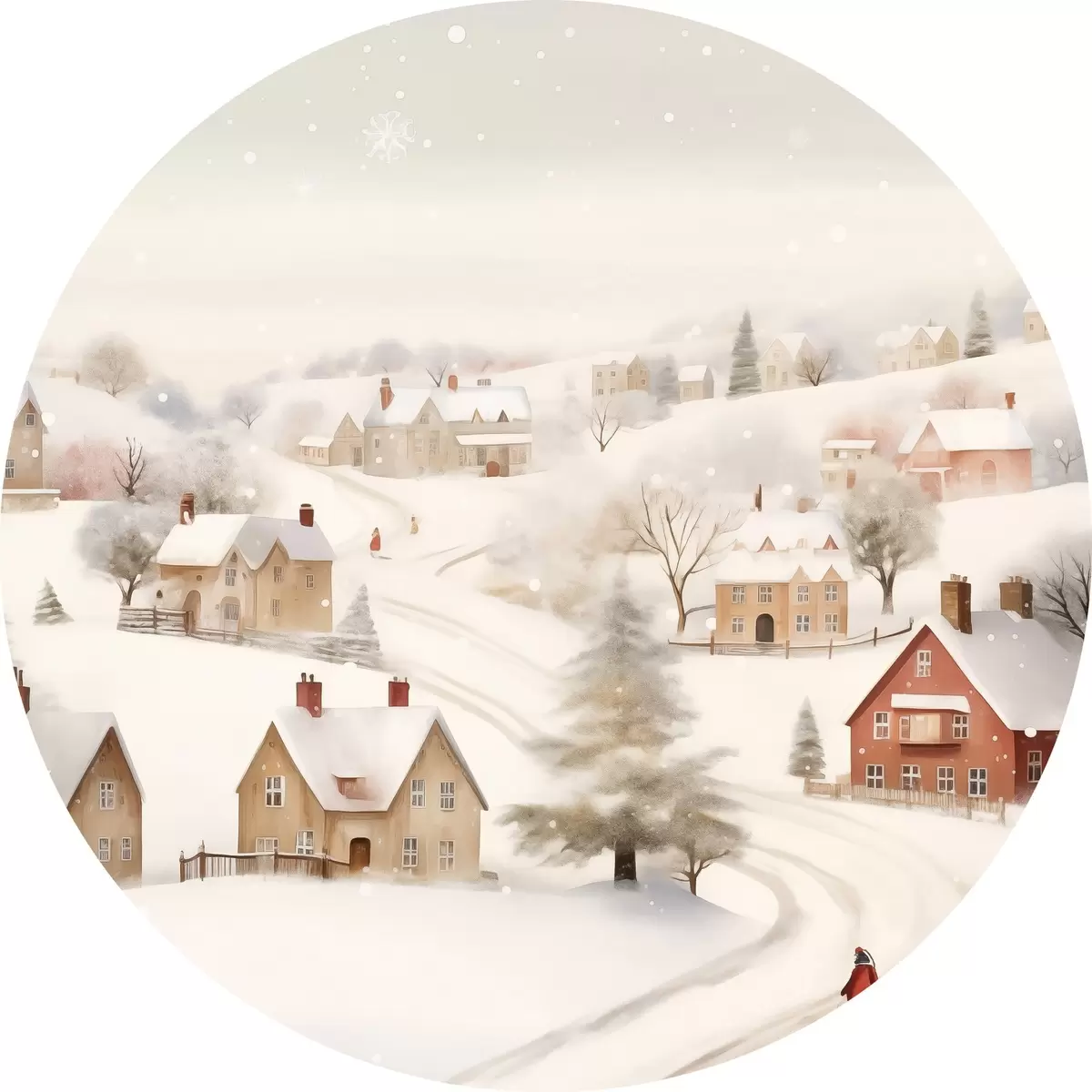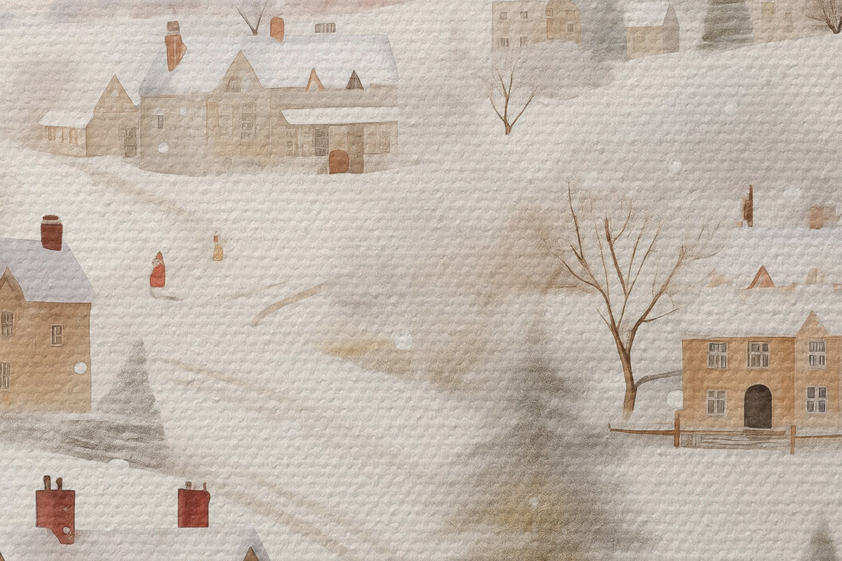 Nuotrauka Žiemos kaimas, akvarelė, snaigės, švelnios spalvos, medžiai, peizažas Nr r41381