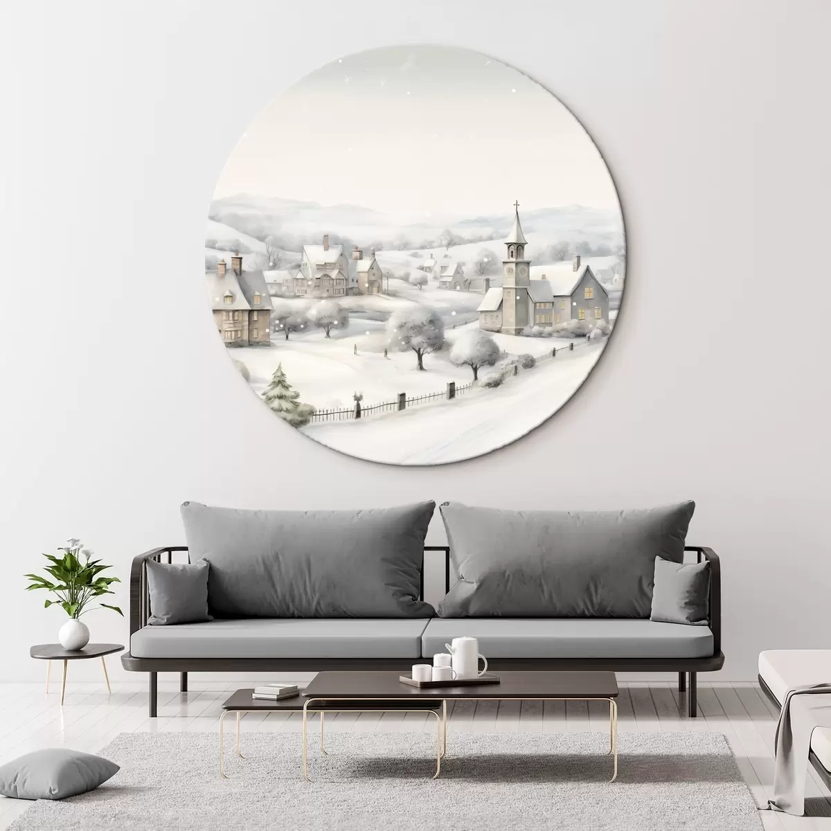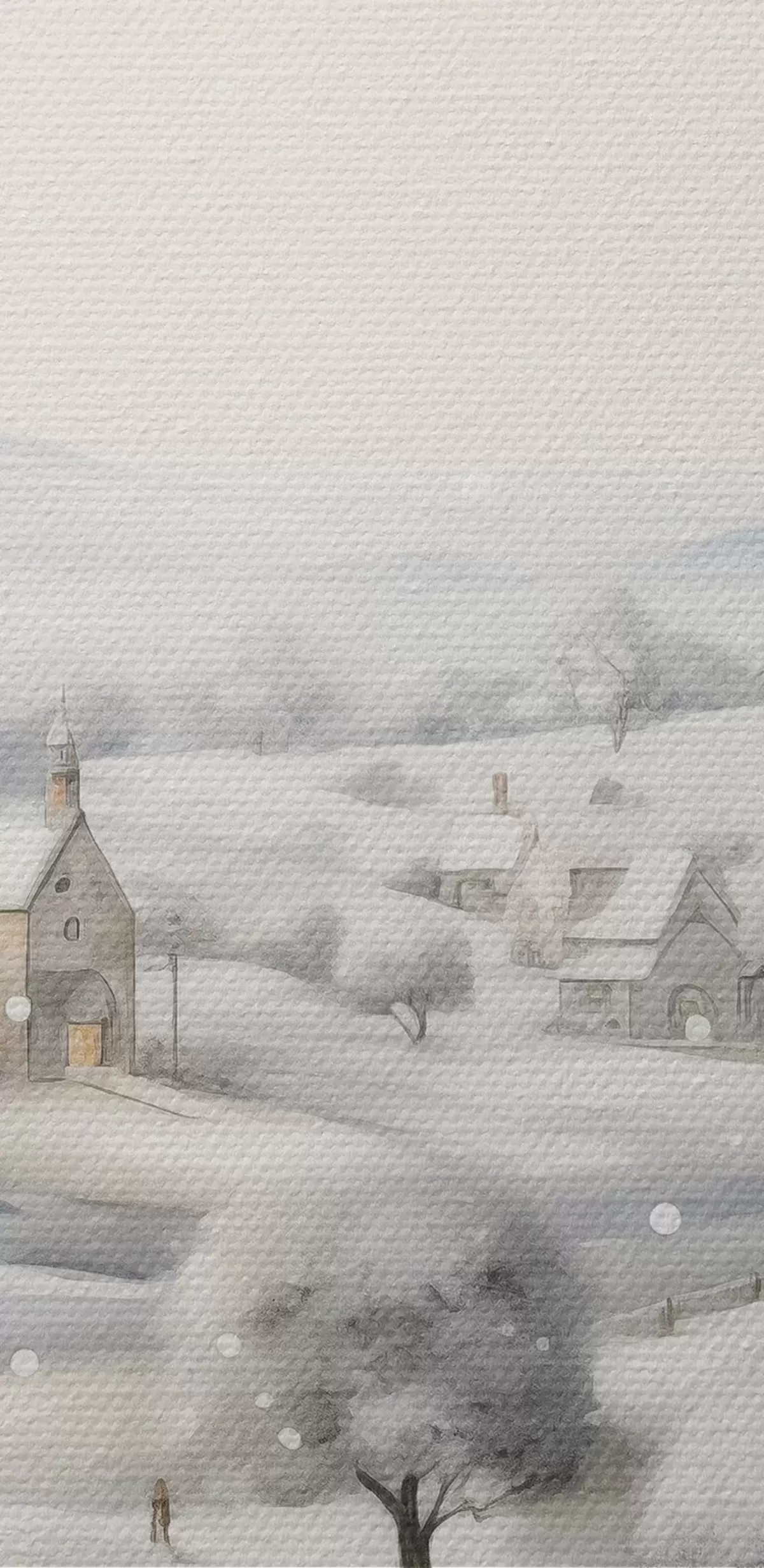 Nuotrauka Gražus žiemos kaimas, medžiai, namai, akvarelė, kalnai Nr r41382