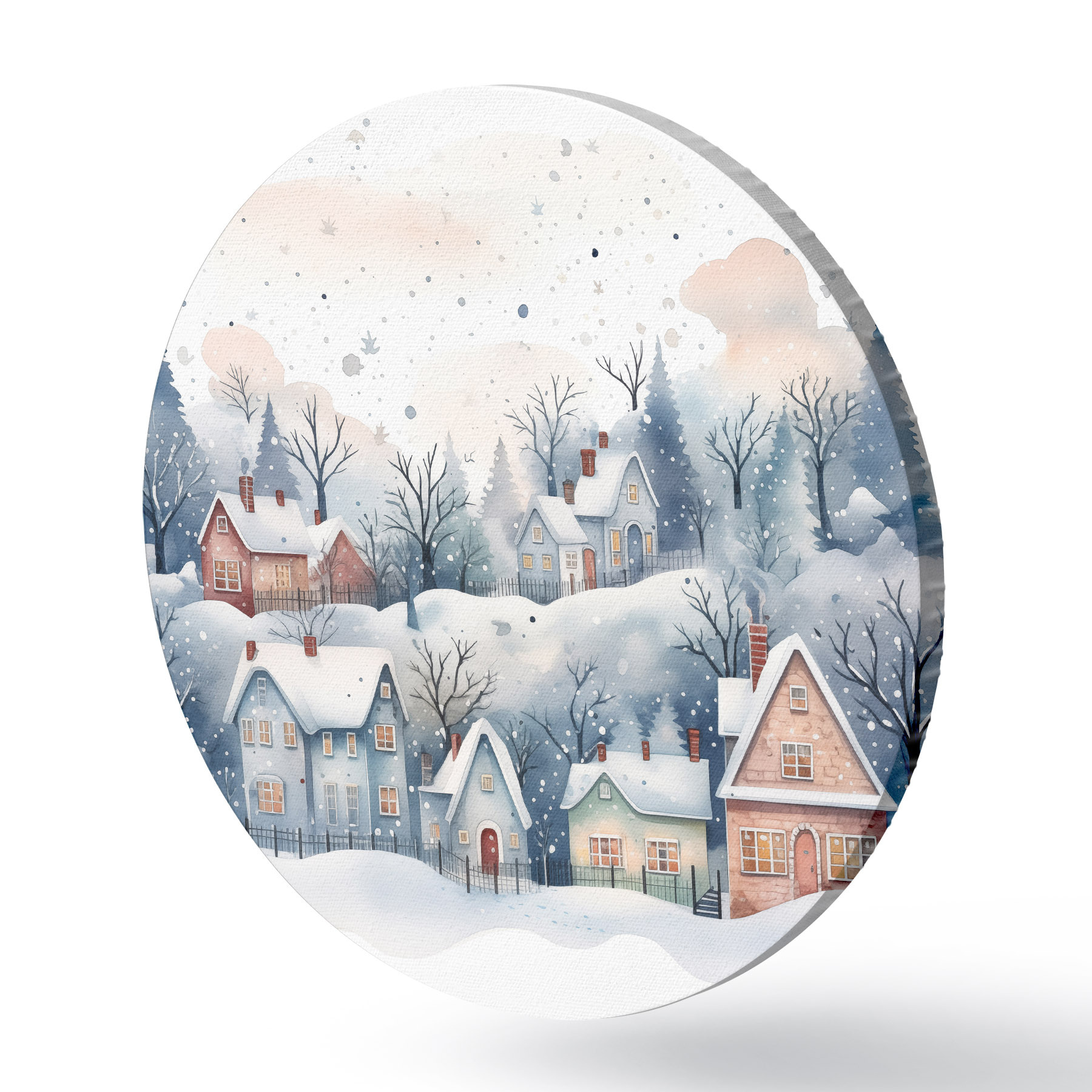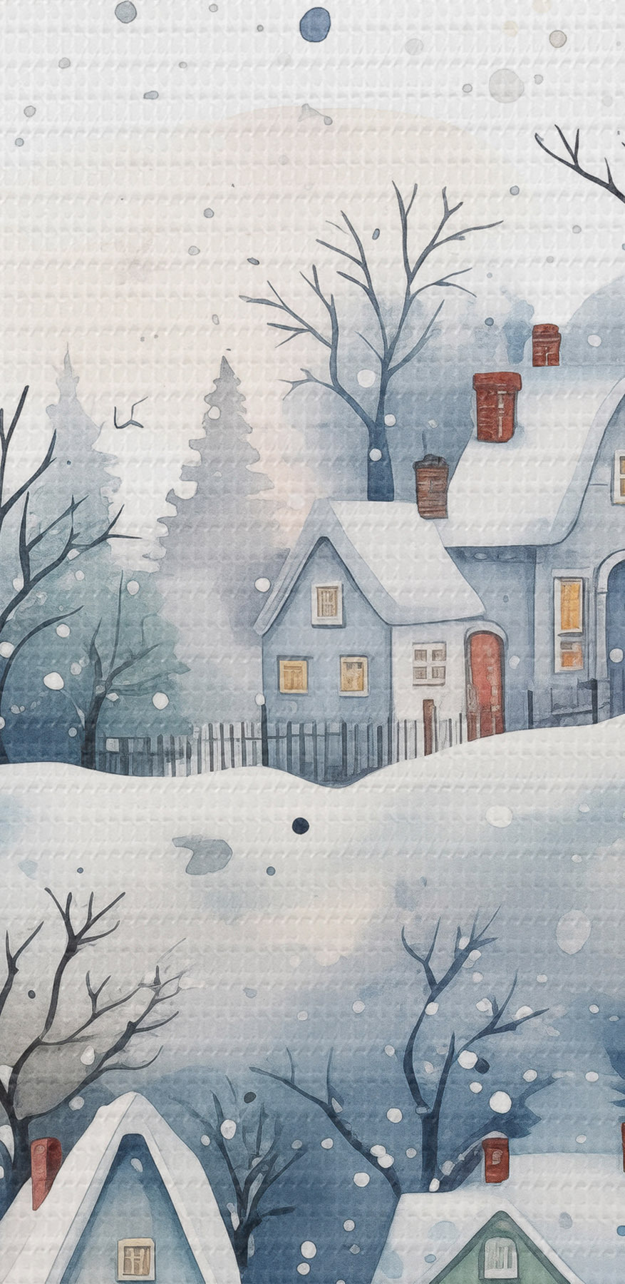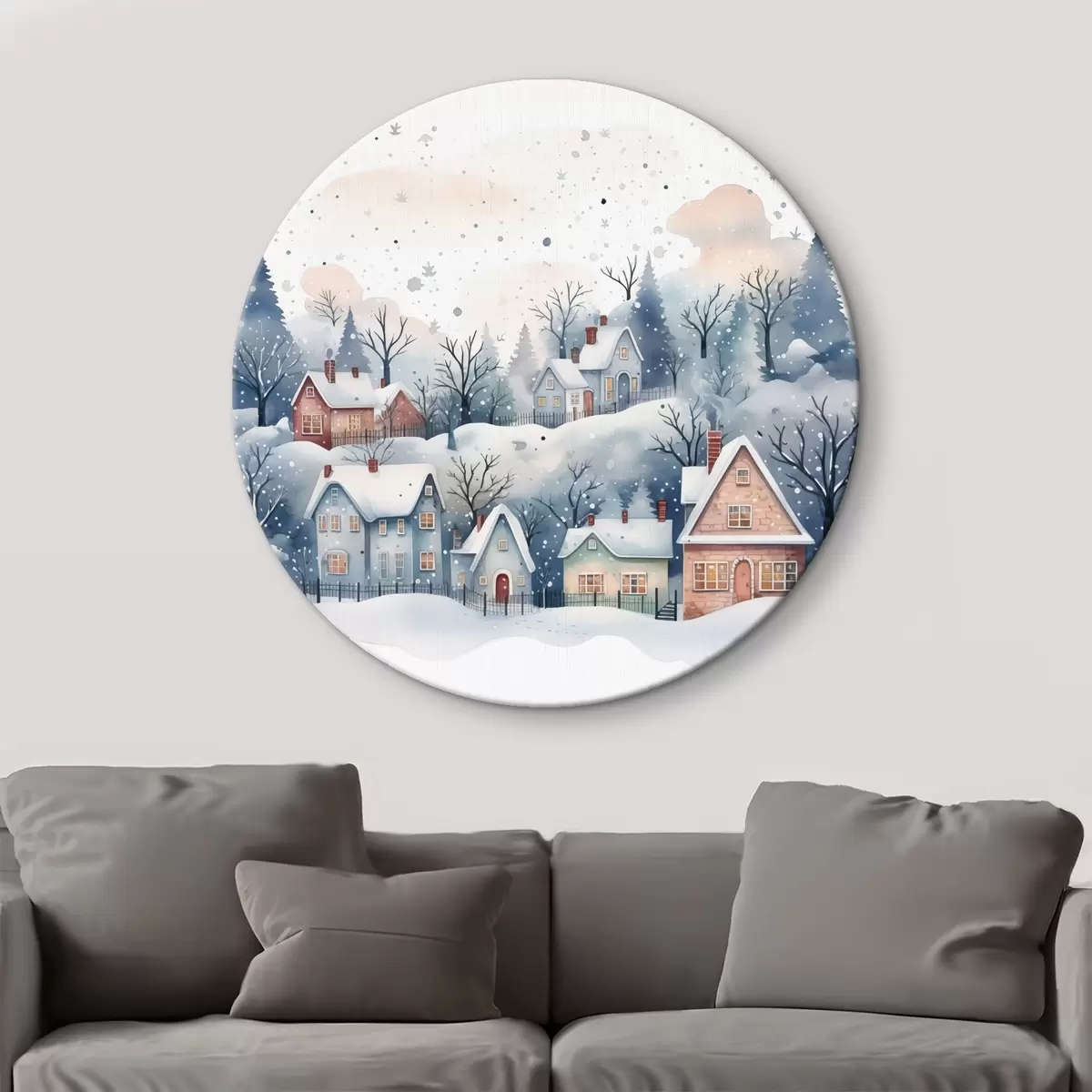 Nuotrauka Akvarelinis žiemos peizažas su namais ir pušynu Nr r41389