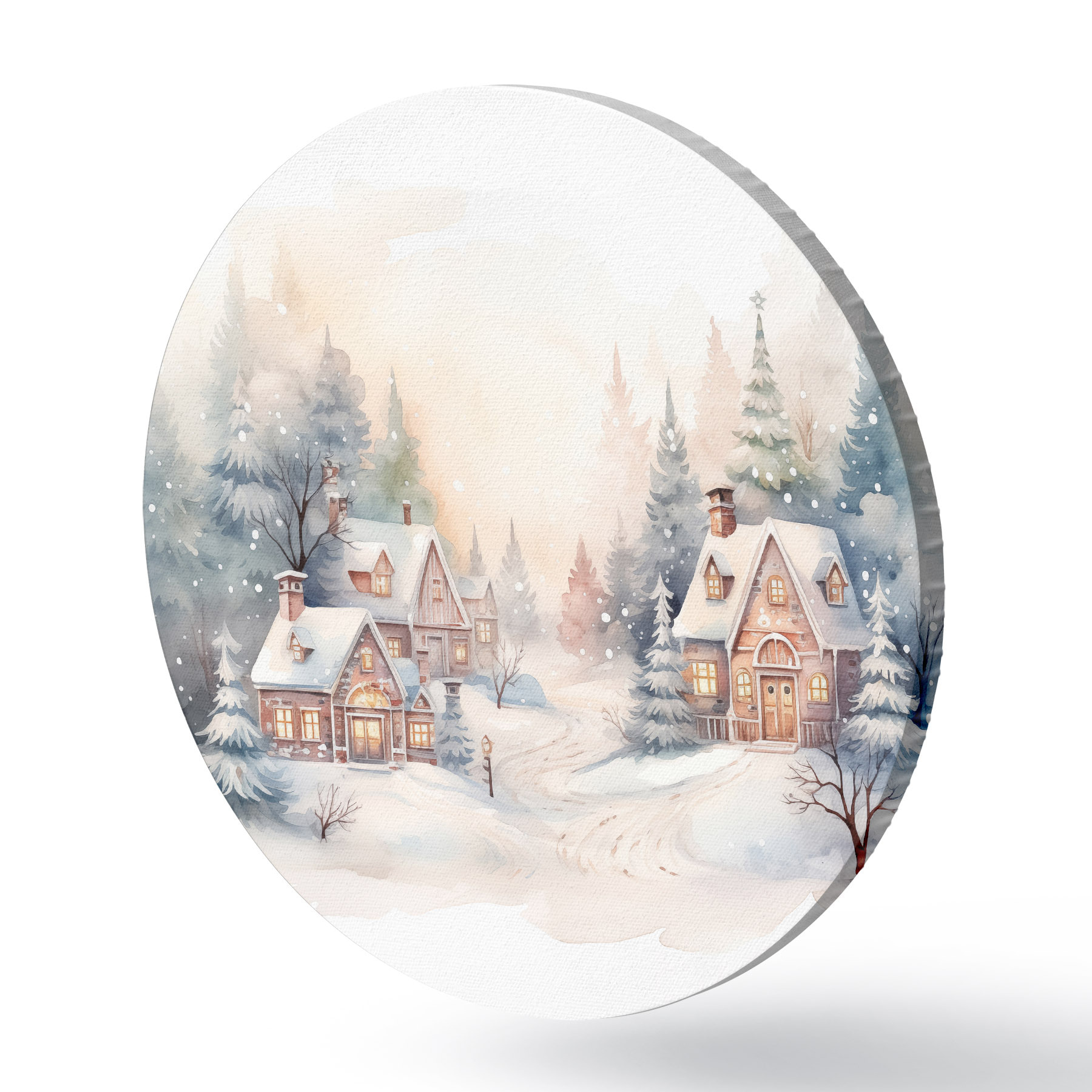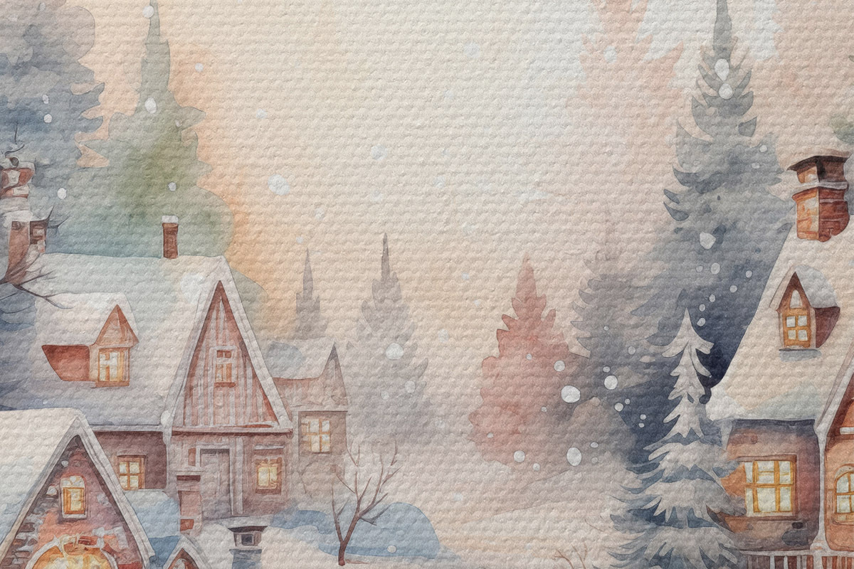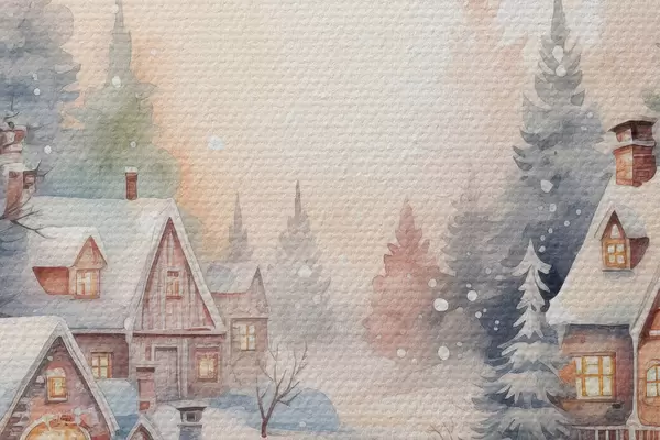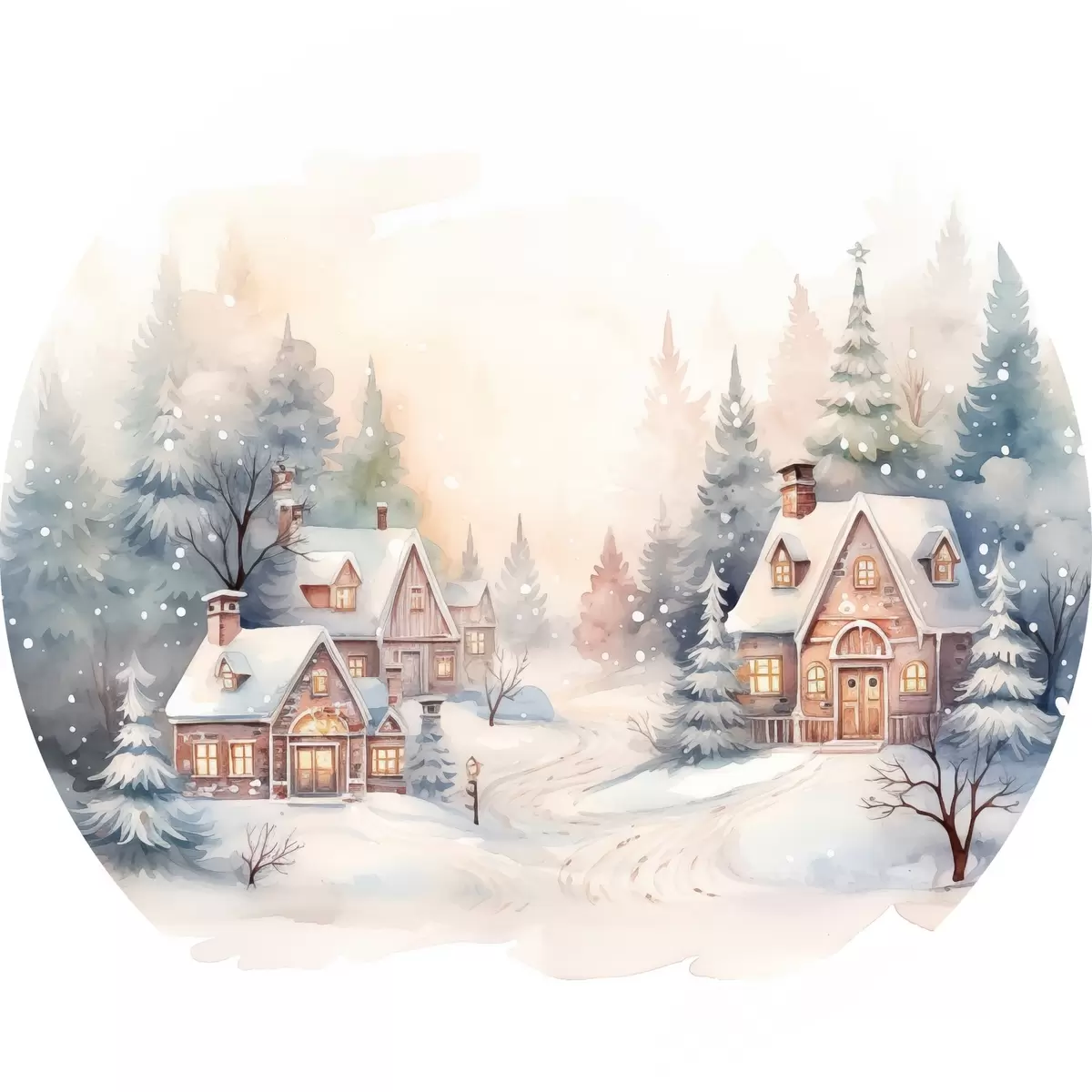 Nuotrauka Žiemos kraštovaizdis, pušynas, gražūs namai, akvarelė, susnet Nr r41390