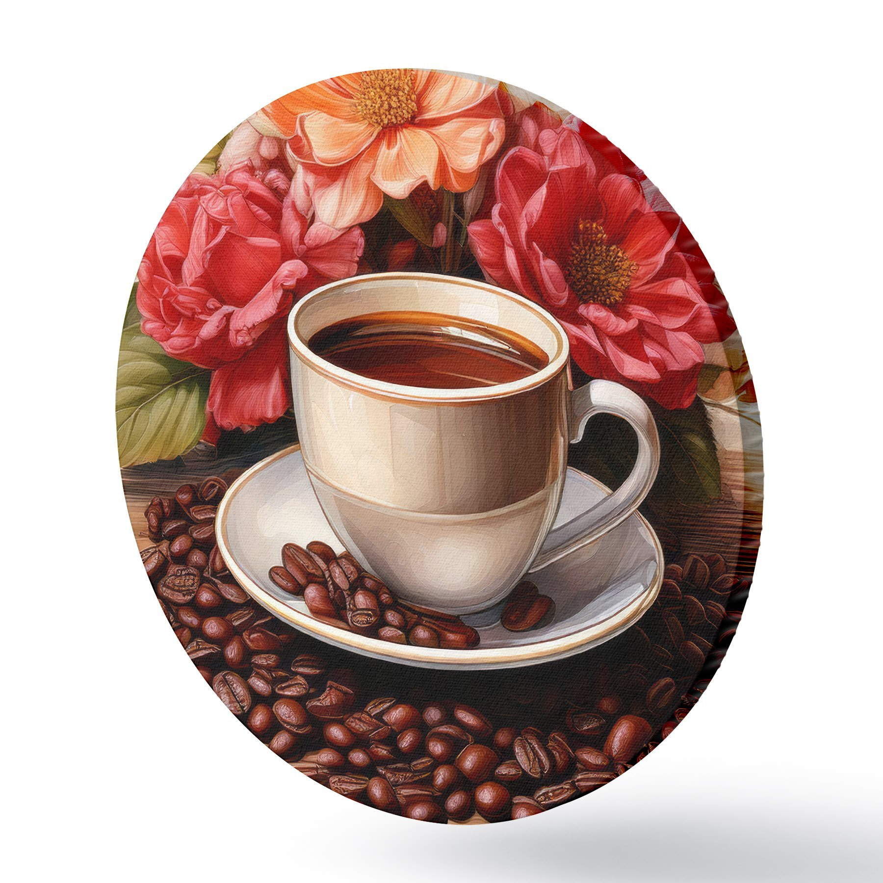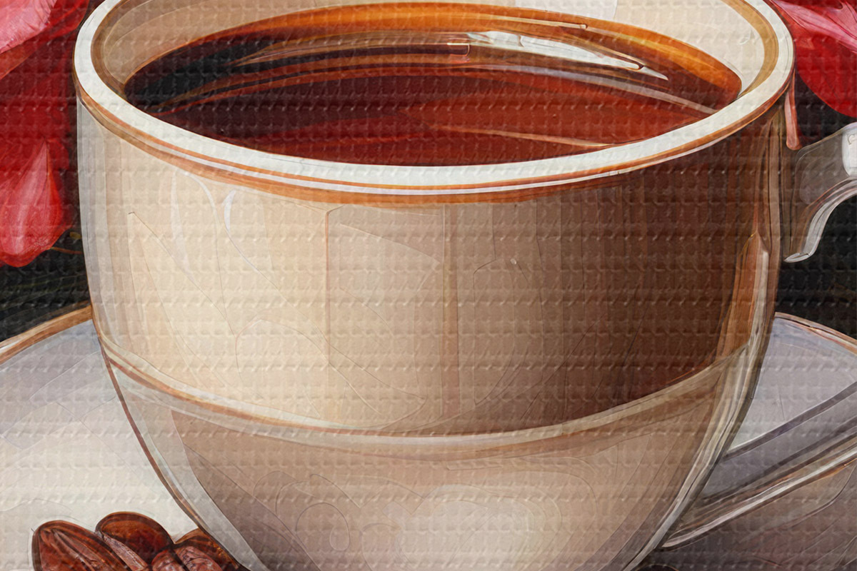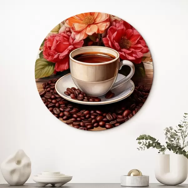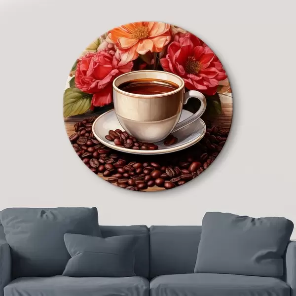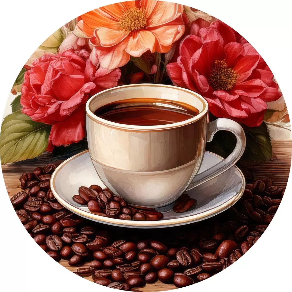 Nuotrauka puodelis kavos ir gėlių puokštė Nr r41411