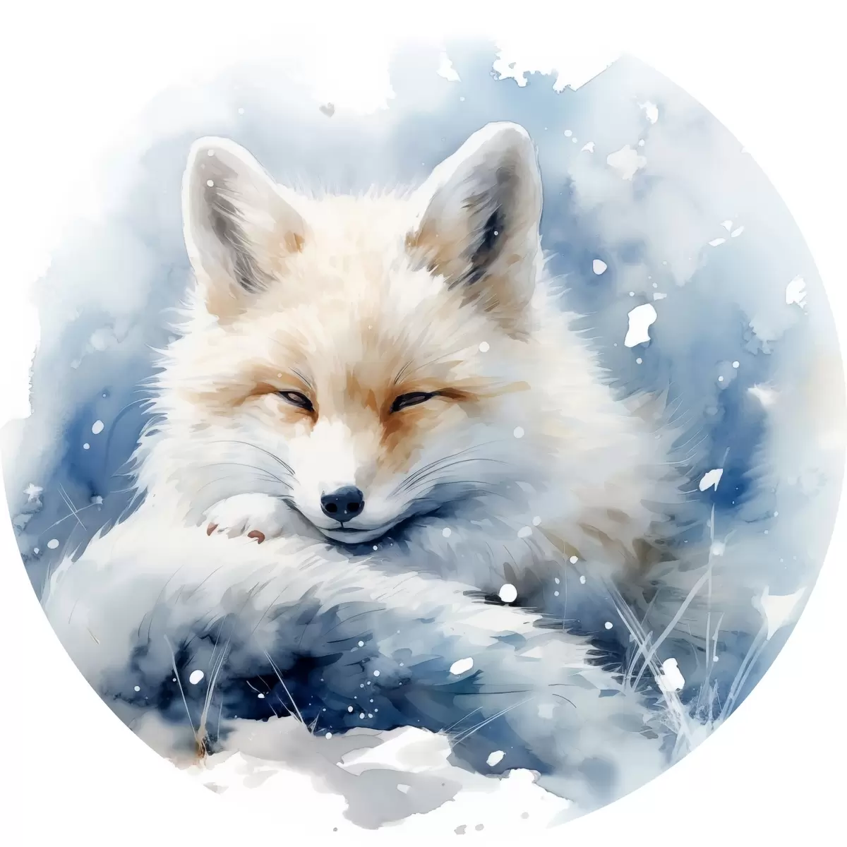 Nuotrauka Lapės sniege imitacija, akvarelės iliustracija Nr r41436