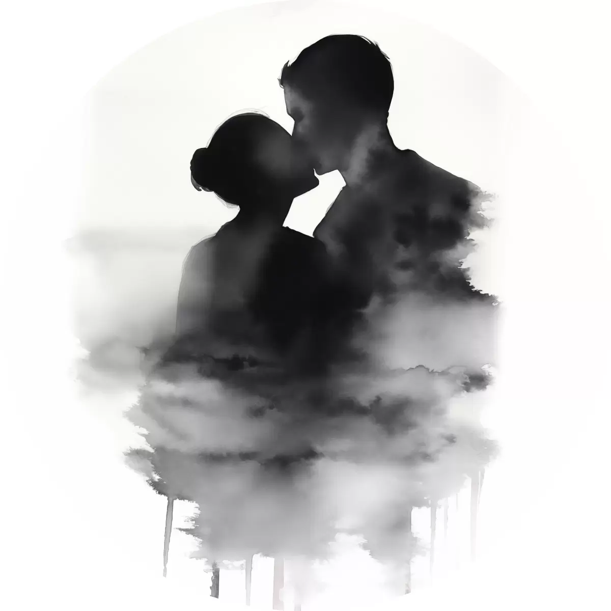 Nuotrauka Poros siluetas juodai balta akvarelės technika Nr r41496