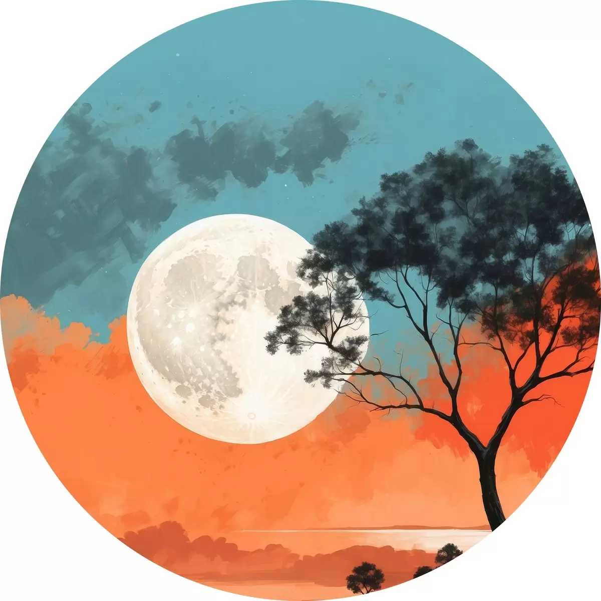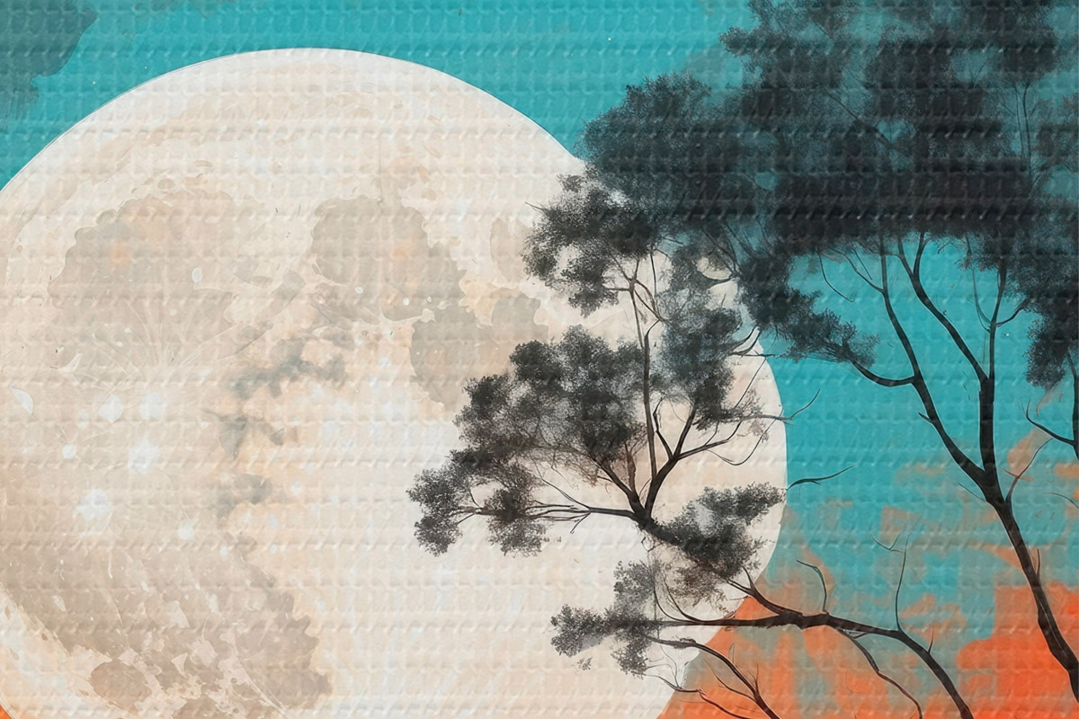 Nuotrauka Medis ežero viduryje mėnulio fone Nr r41775