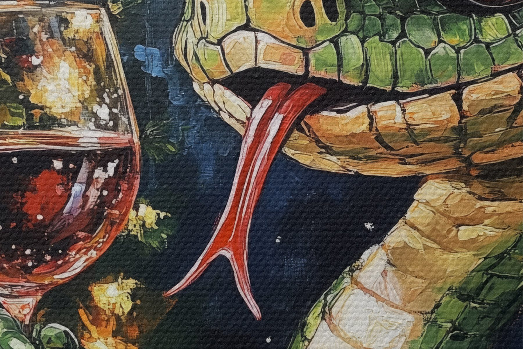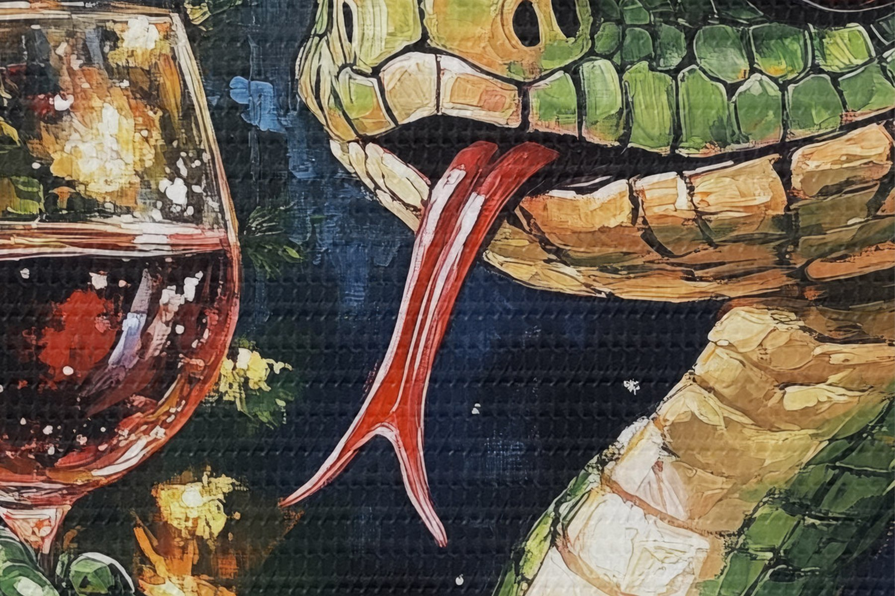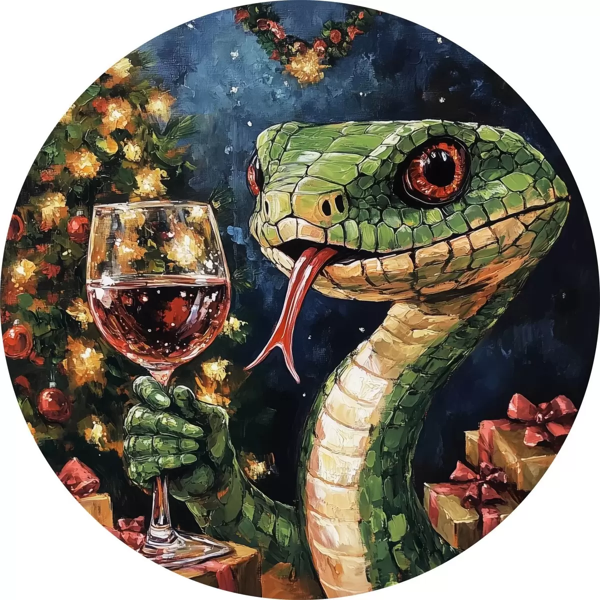 Nuotrauka Gyvatė su vyno taure švenčia Naujuosius metus Nr r42106