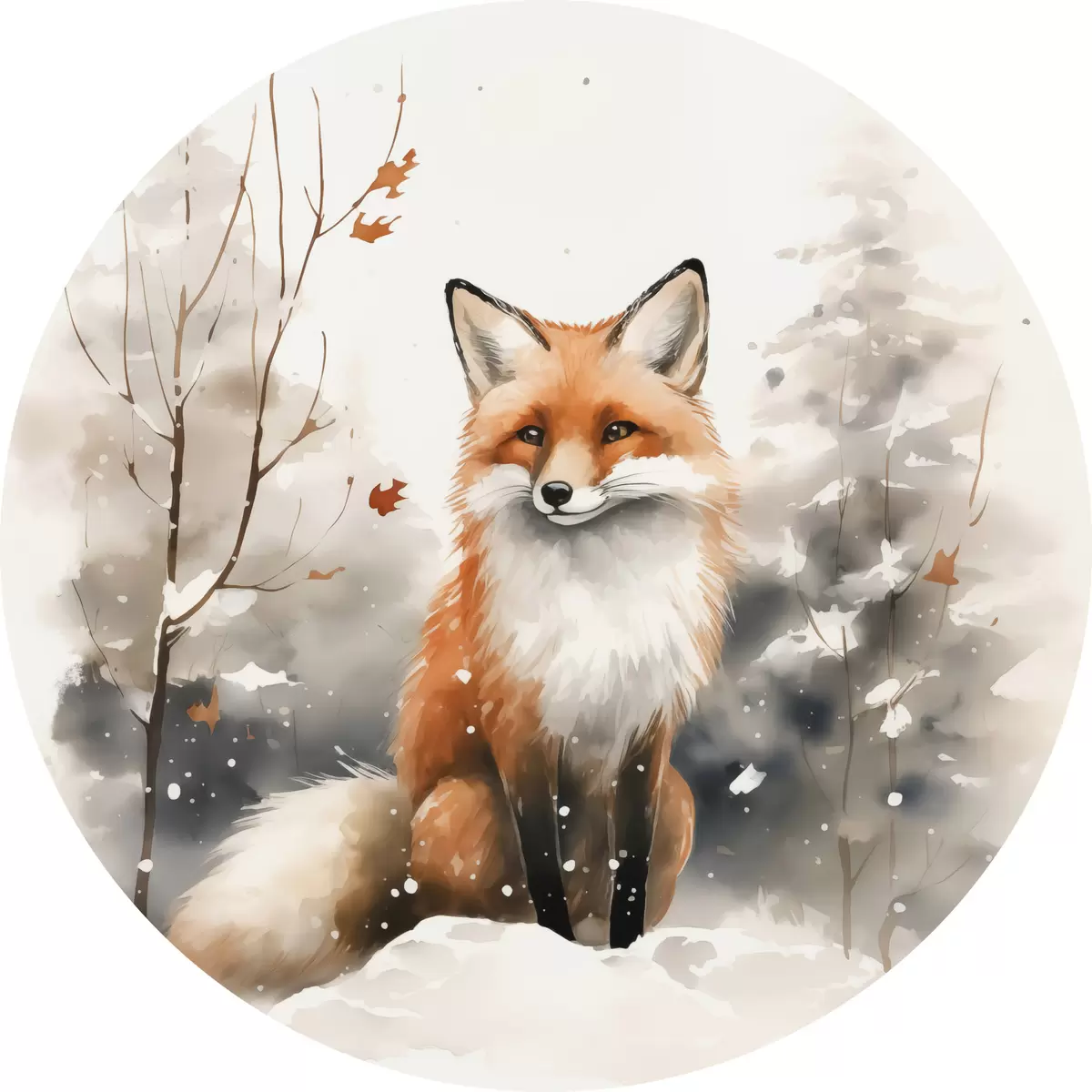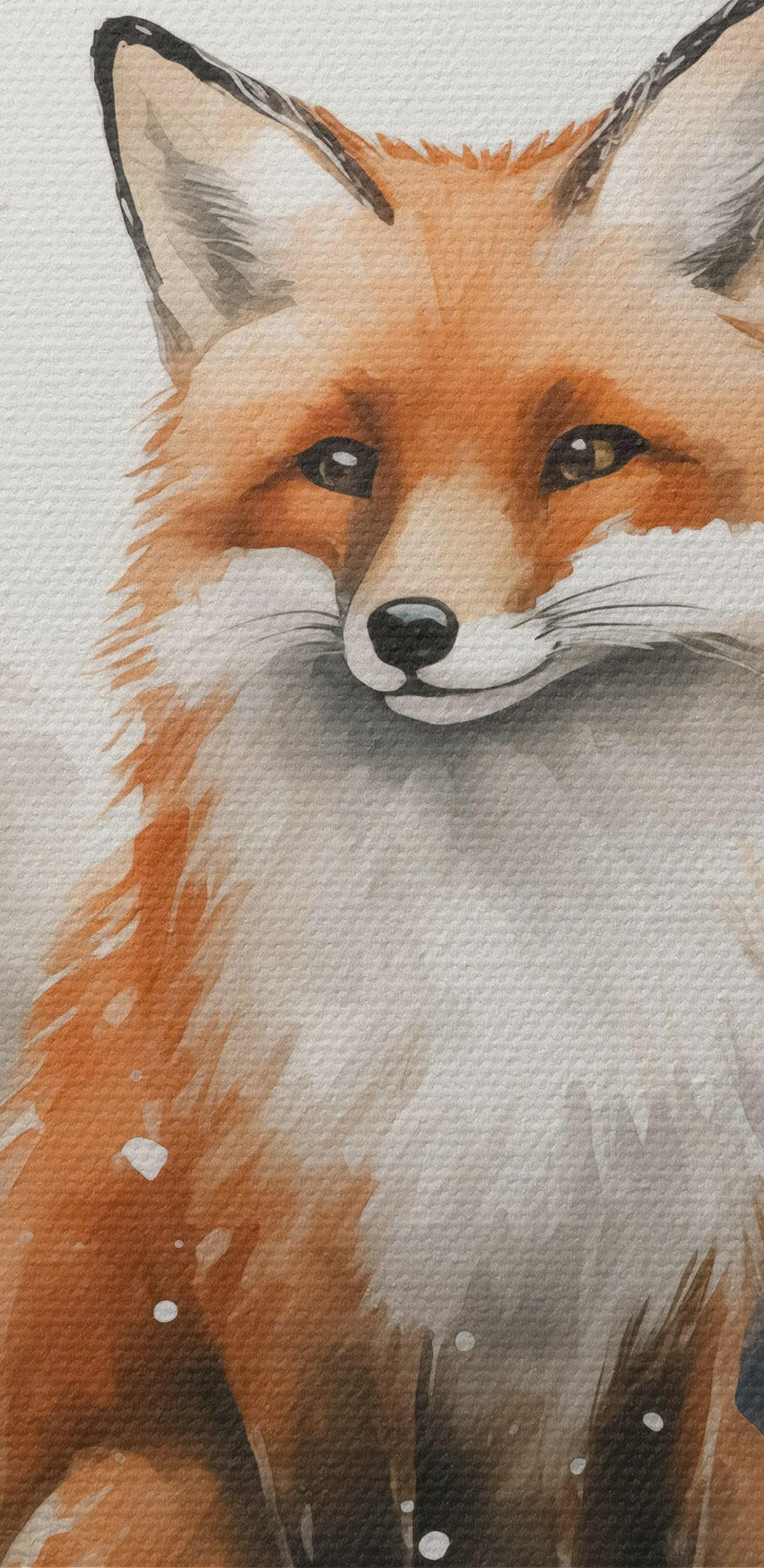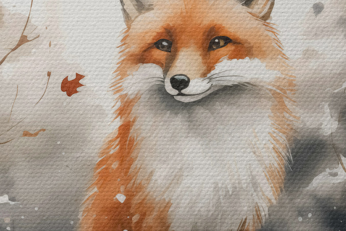 Nuotrauka Lapės jauniklis snieguotame miške, akvarelės imitacija Nr r42146