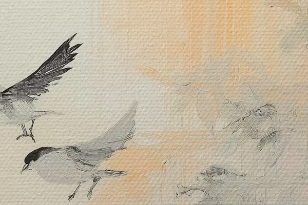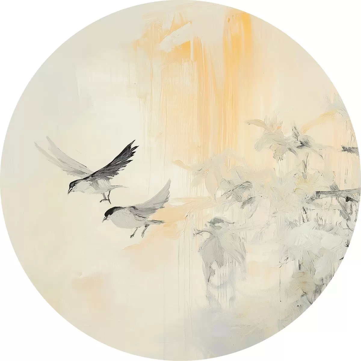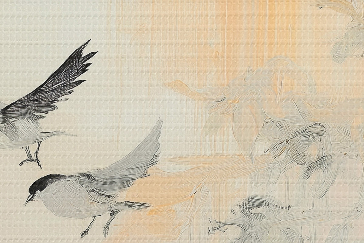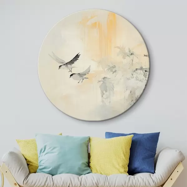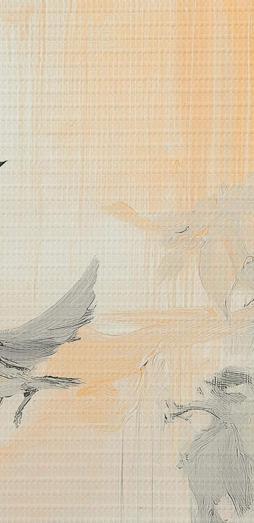 Nuotrauka Abstrakcija su paukščiais, akrilo stilius, pilka ir smėlio spalvos Nr r42206