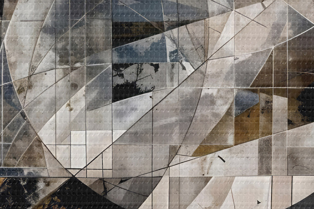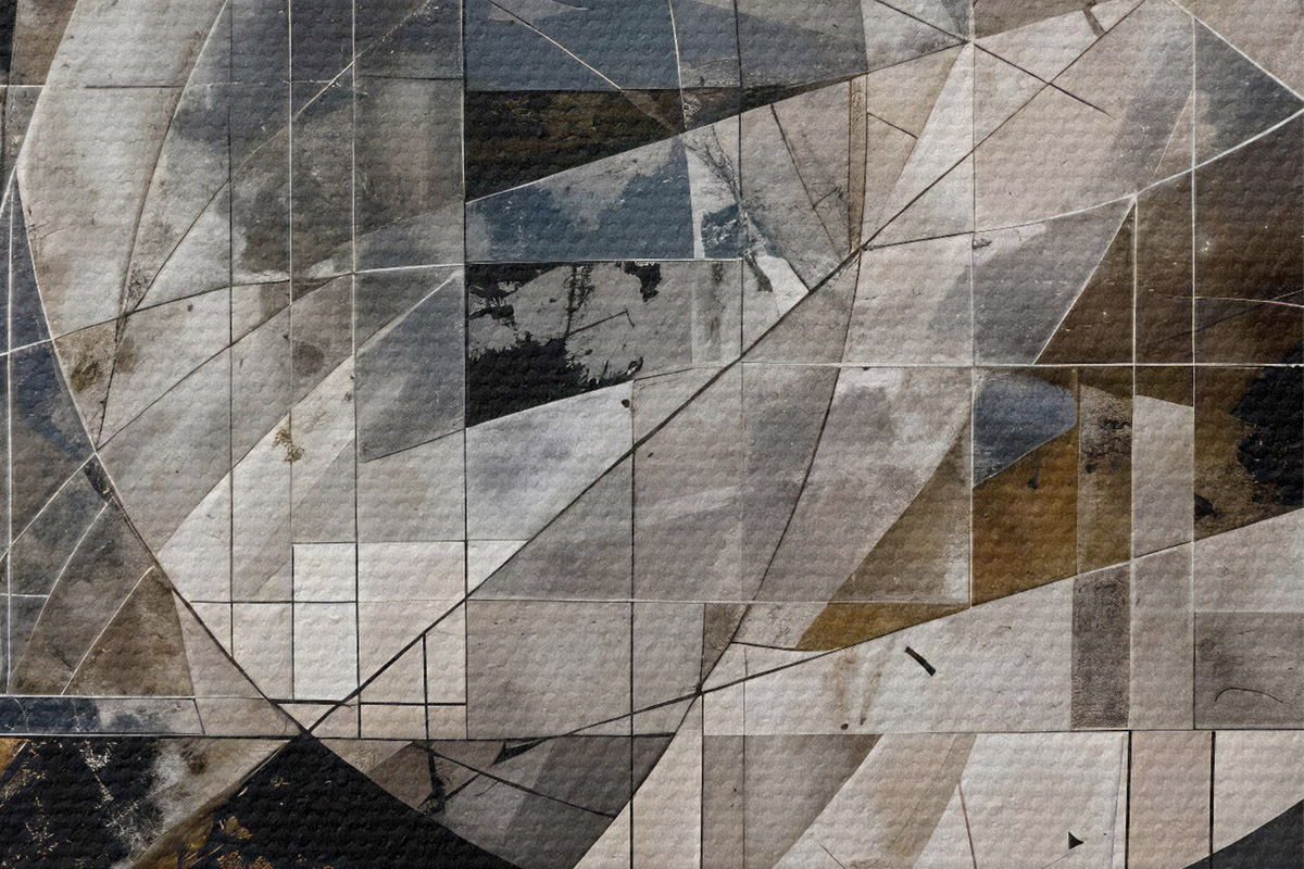 Nuotrauka Abstrakti šiuolaikinė geometrinė kompozicija su persidengiančiomis formomis ir pilkų, juodų ir smėlio atspalvių spauda Nr r42212