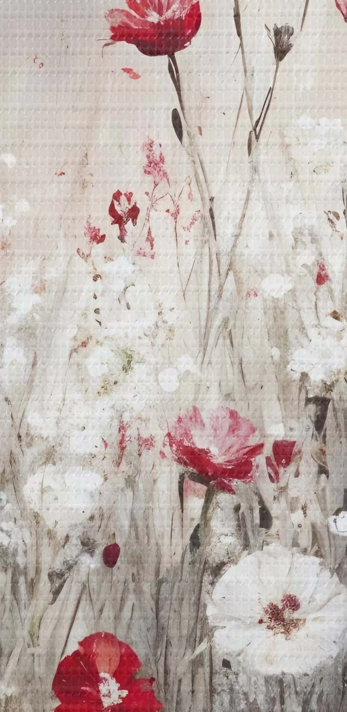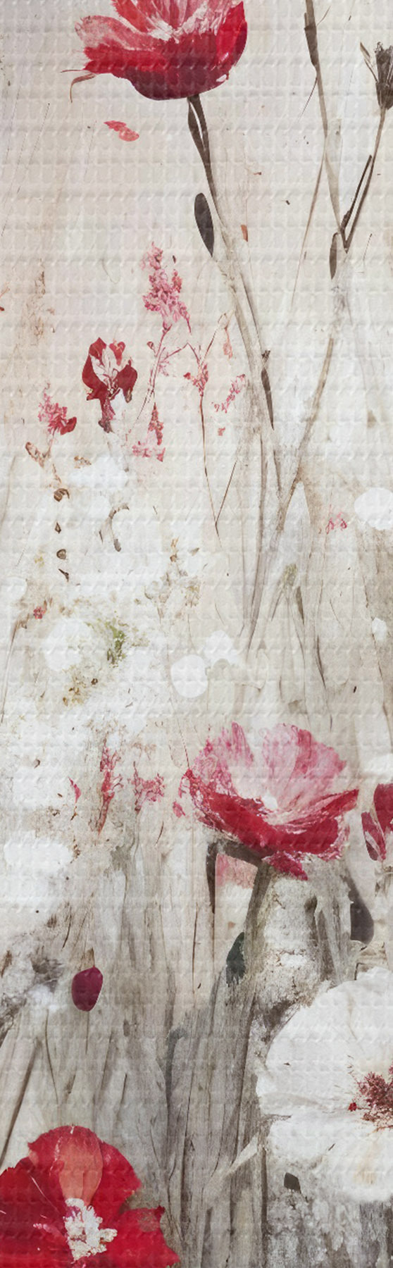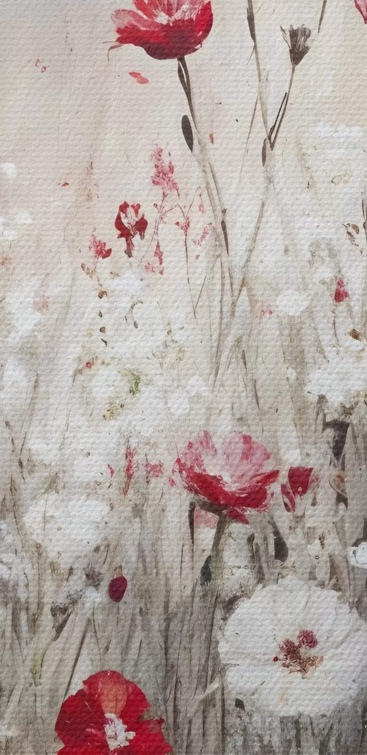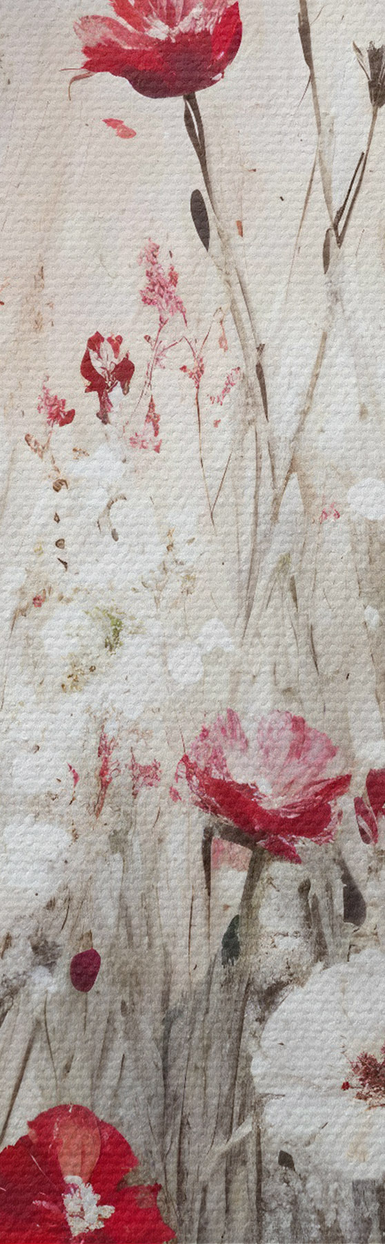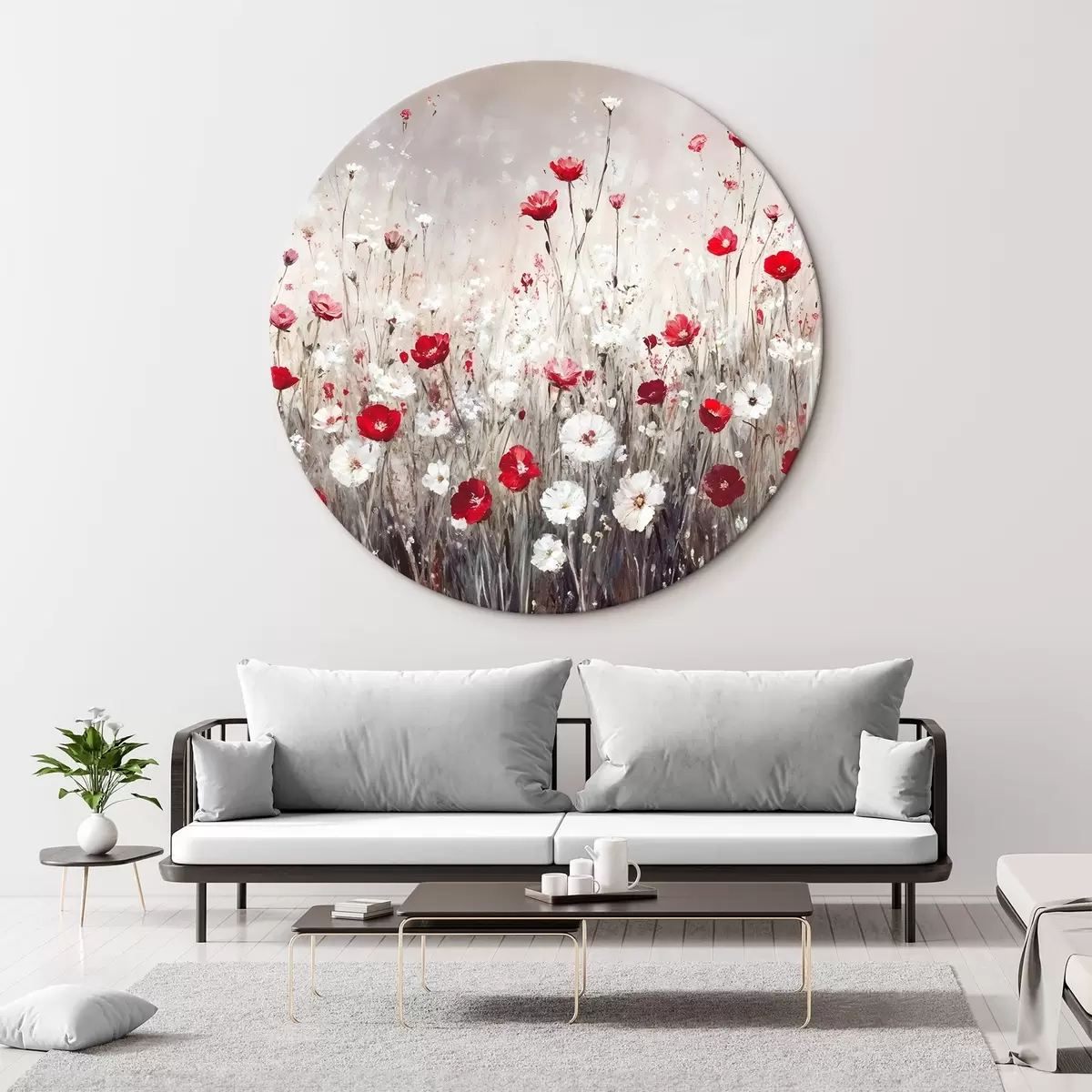 Nuotrauka Abstrakti aliejinės tapybos imitacija - raudonų ir baltų aguonų ir margučių gėlių laukas pilkame tekstūriniame fone Nr r42213