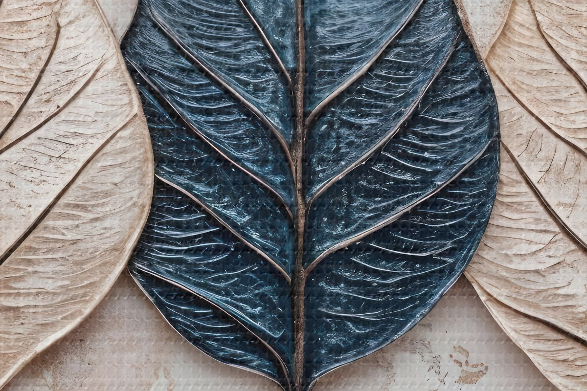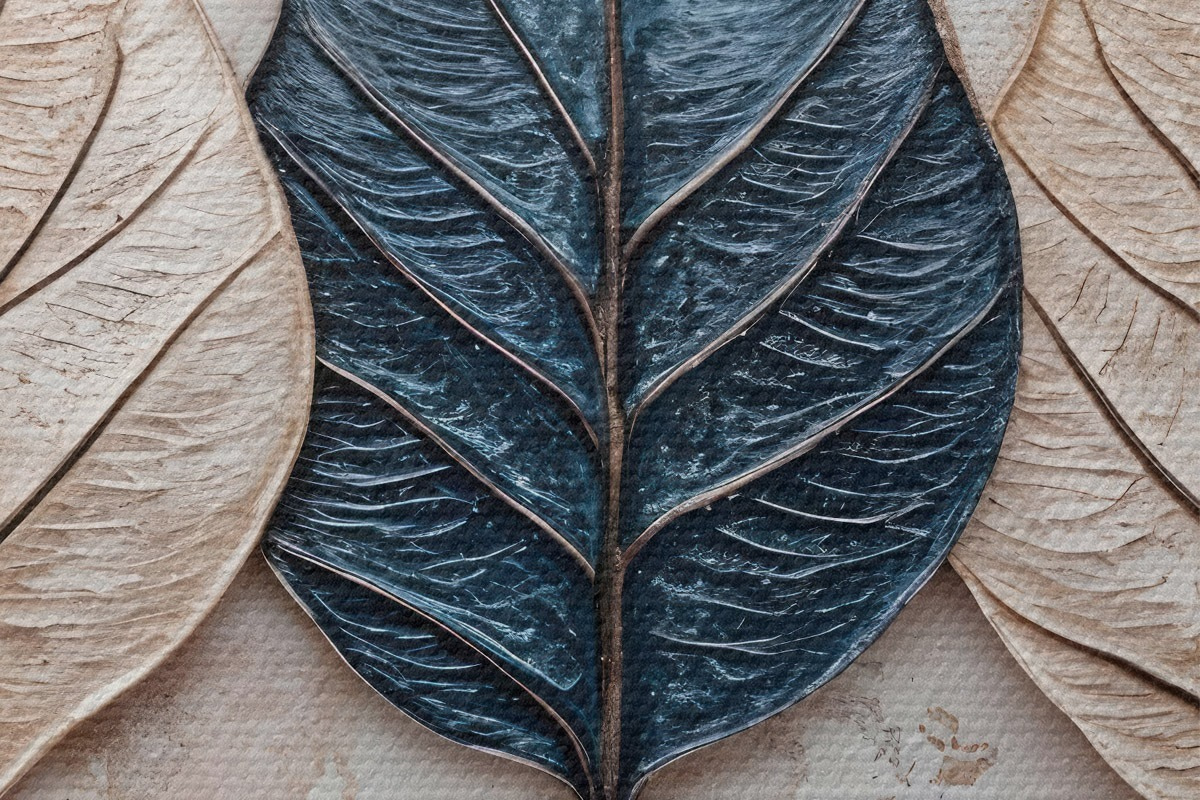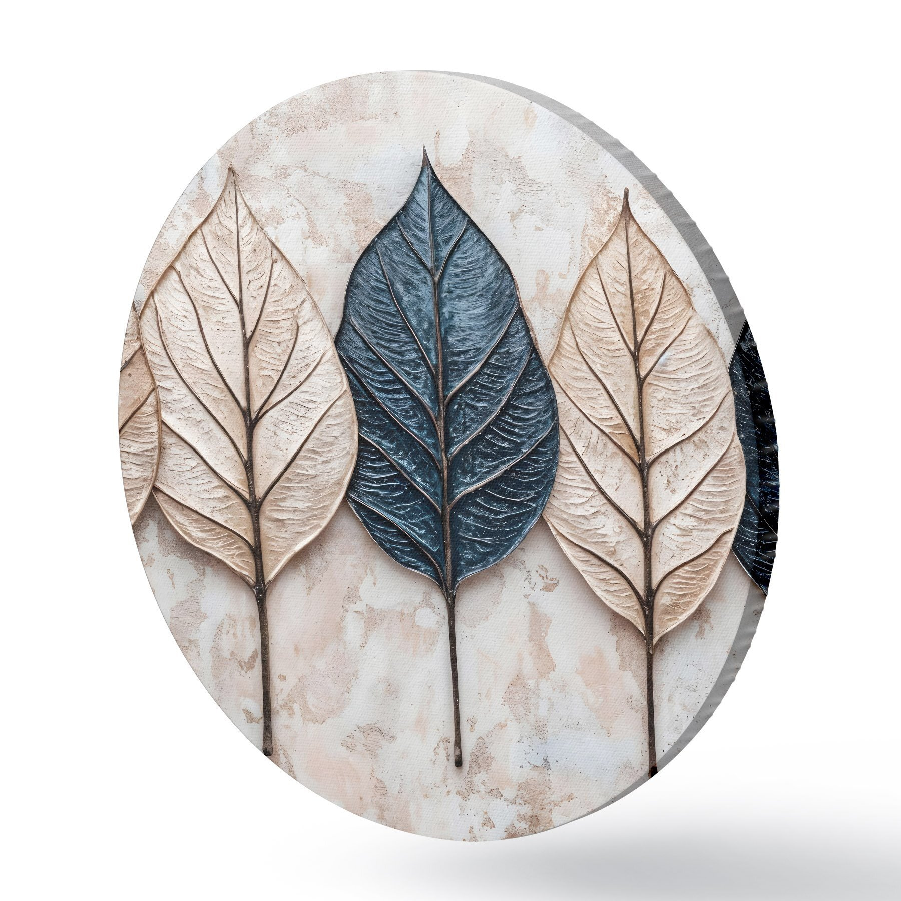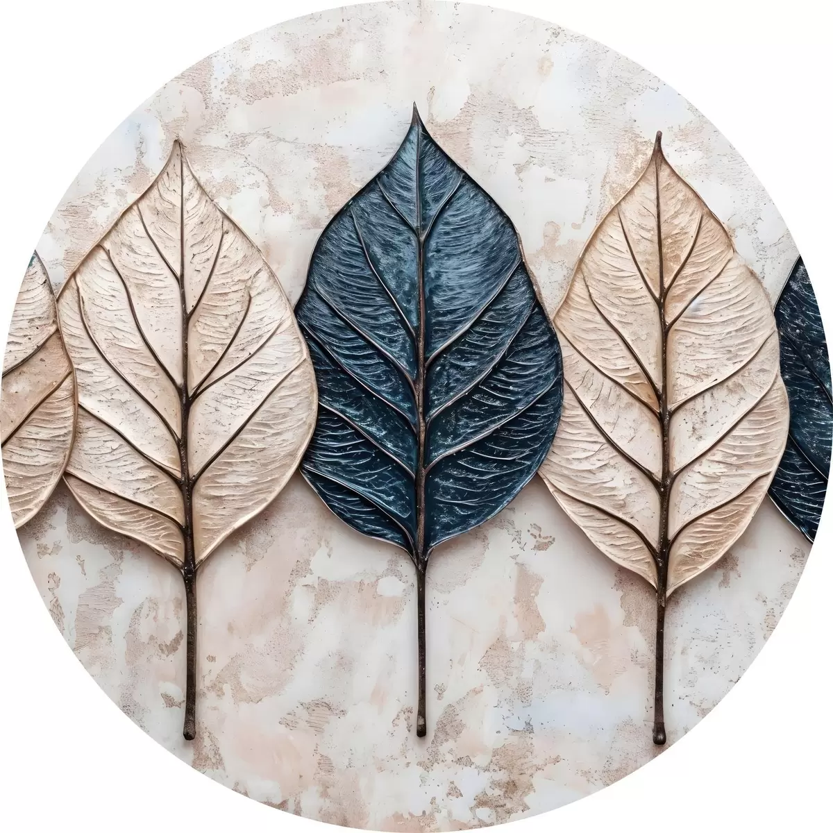Nuotrauka Įvairių rudų, smėlio ir mėlynų atspalvių rudeniniai abstraktūs lapai, surikiuoti į eilę šviesiame fone Nr r42217